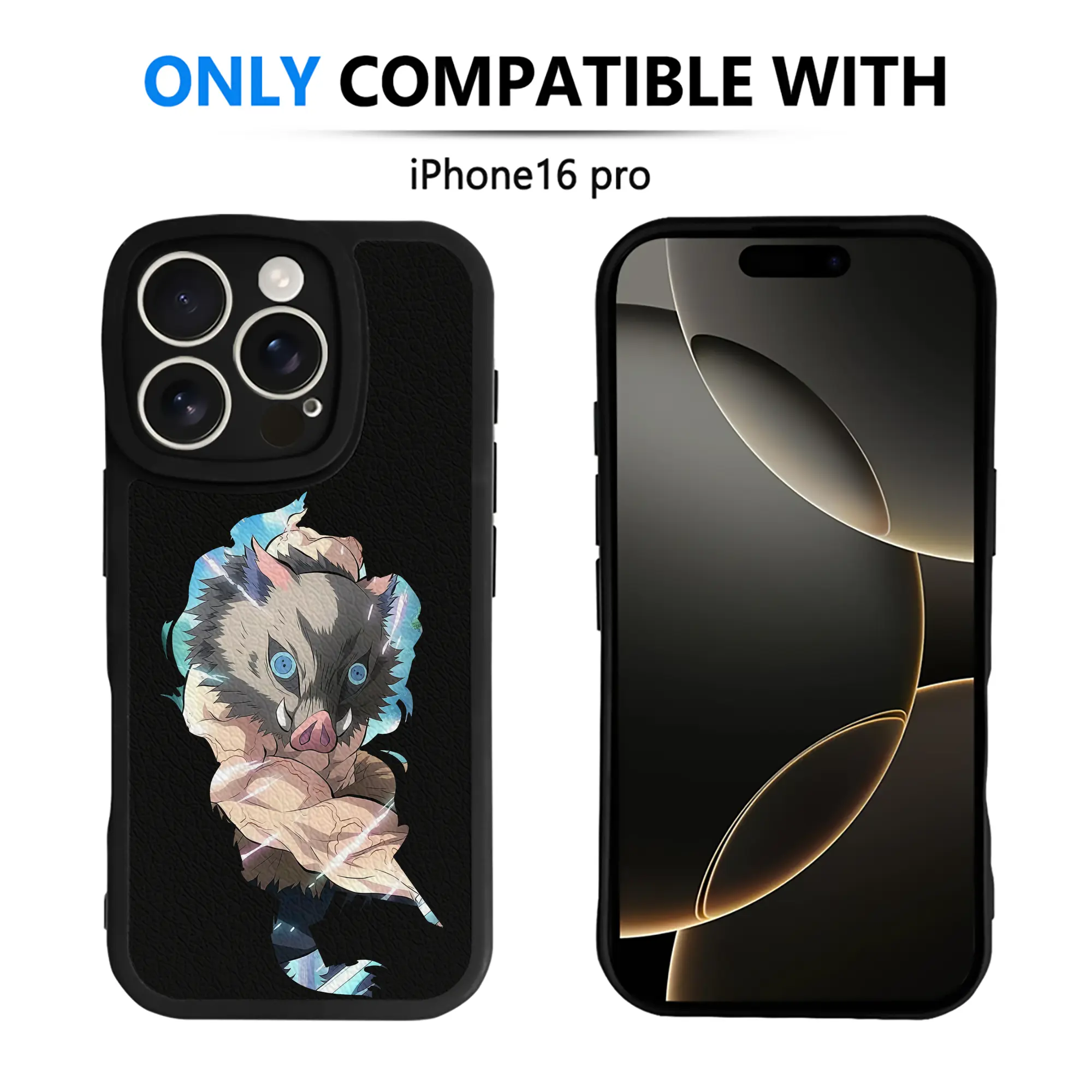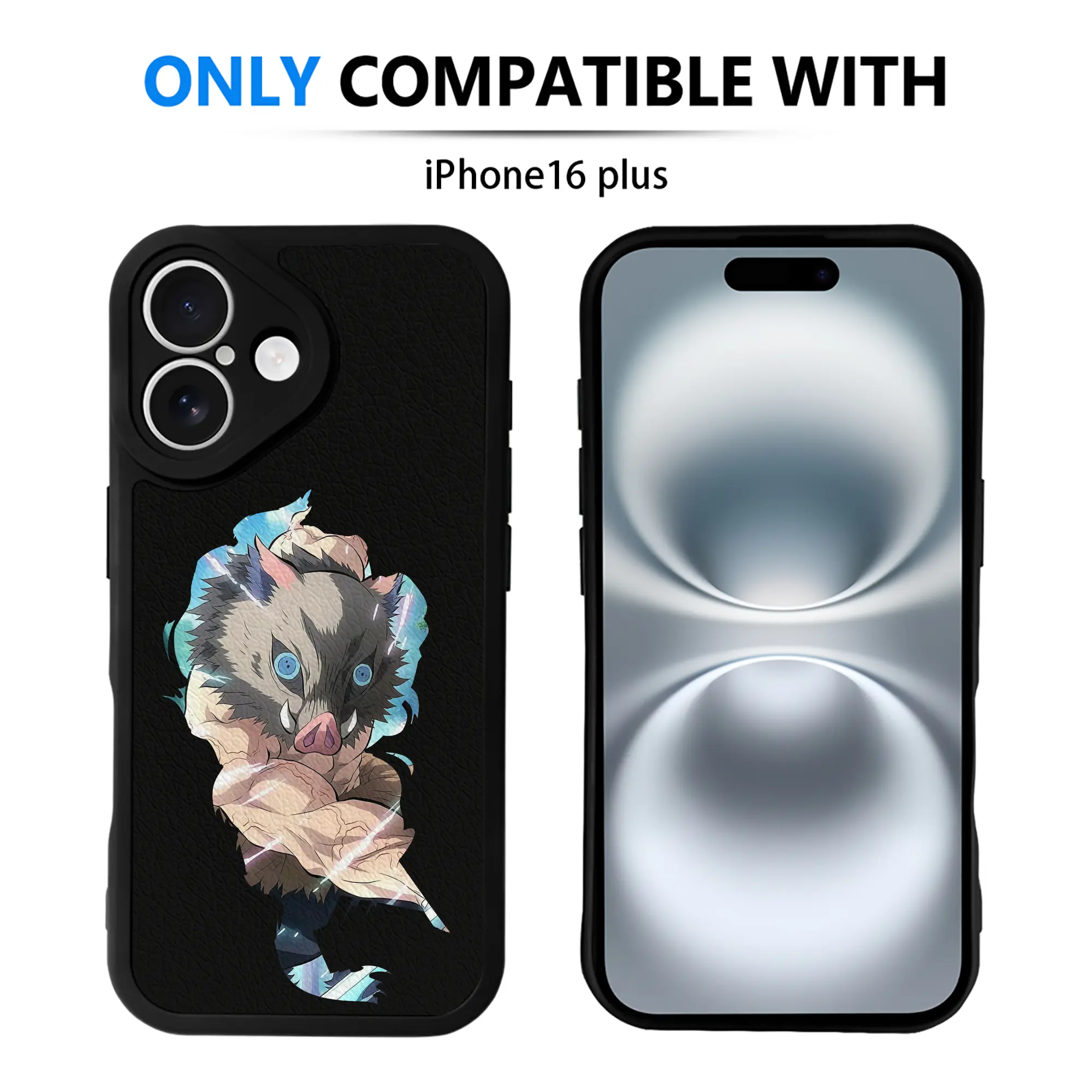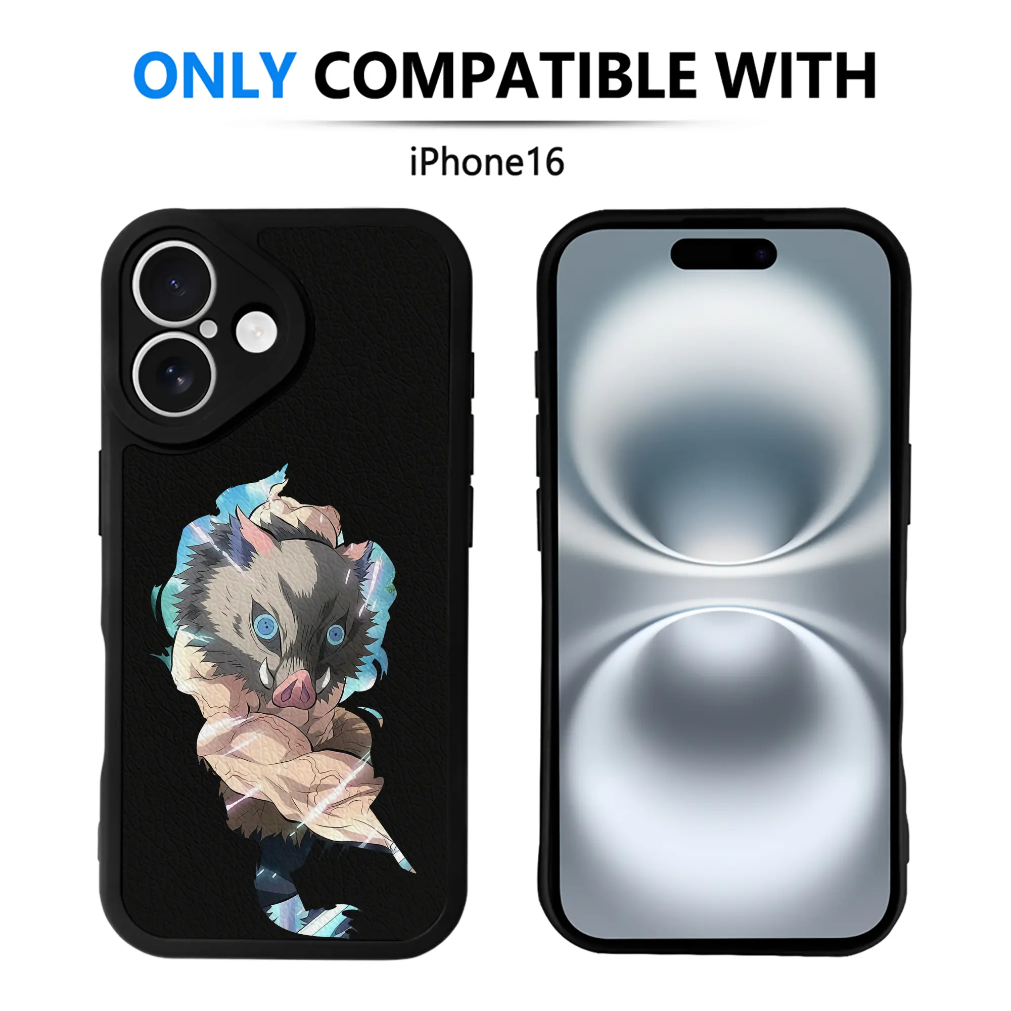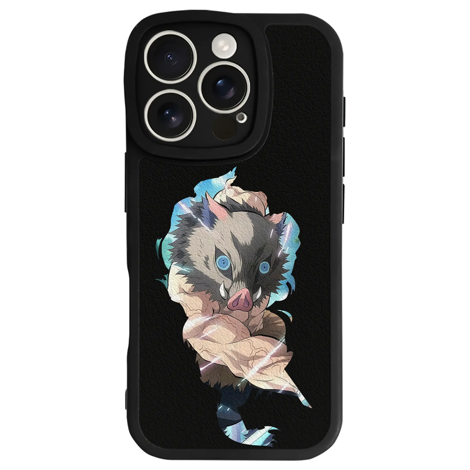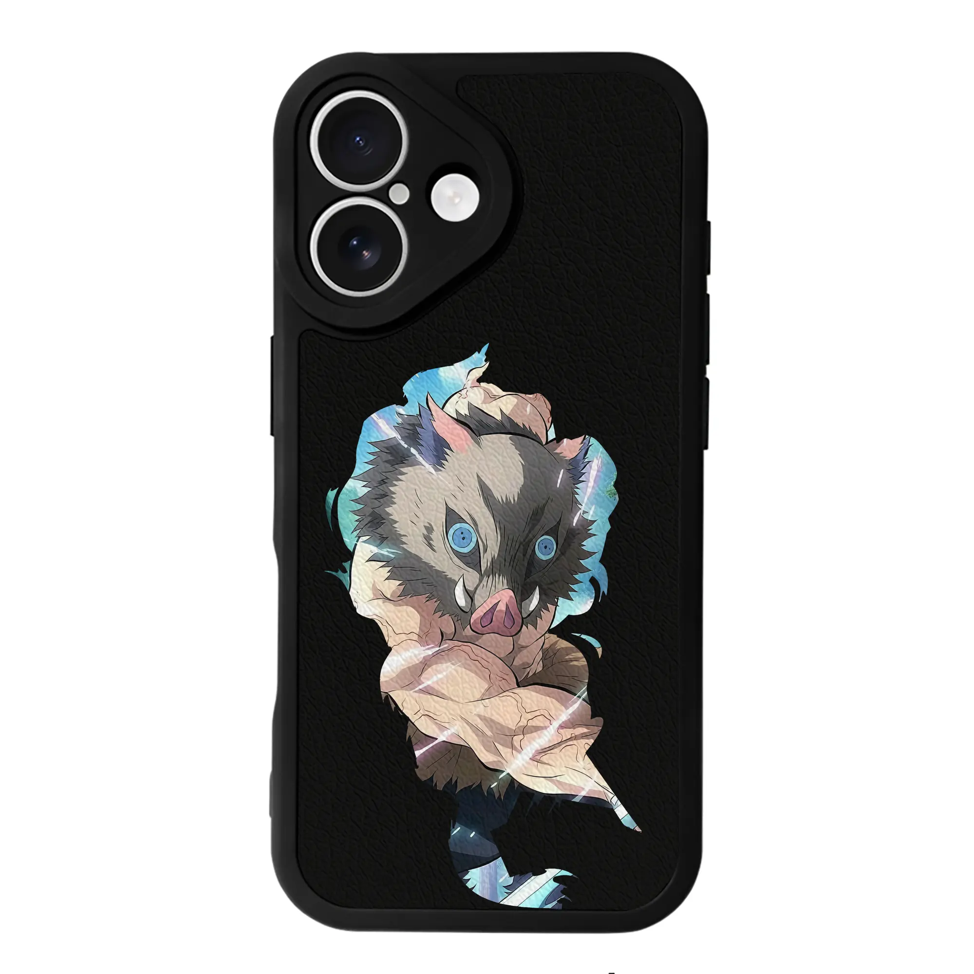 鬼滅の刃 グッズ,嘴平 伊之助 - IPhone 16シリーズ対応 ・ シリコンスマホケース ・ レザー調 ・ 高精度フィット ・ 耐衝撃 ・ ワイヤレス充電対応 ・ 精密カット