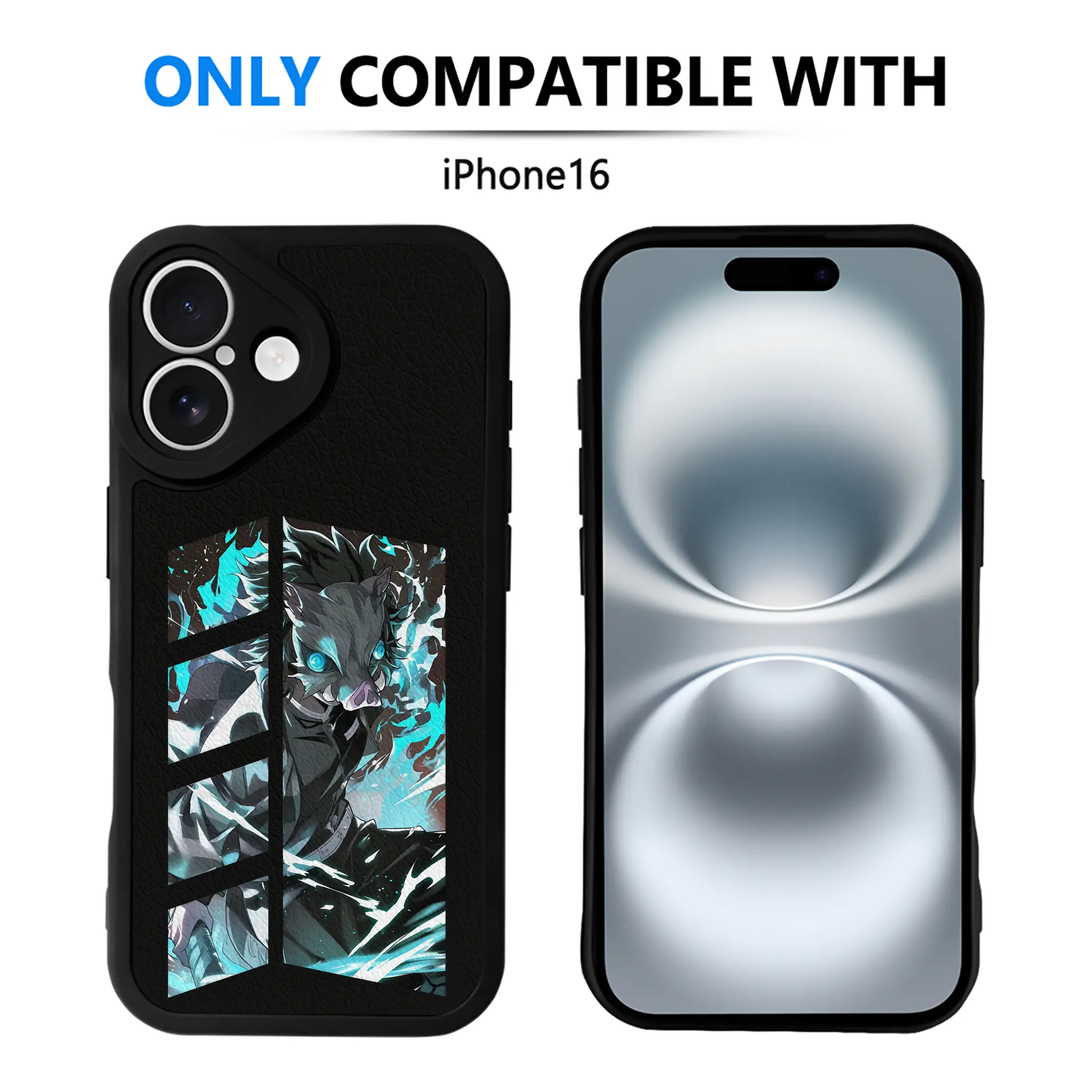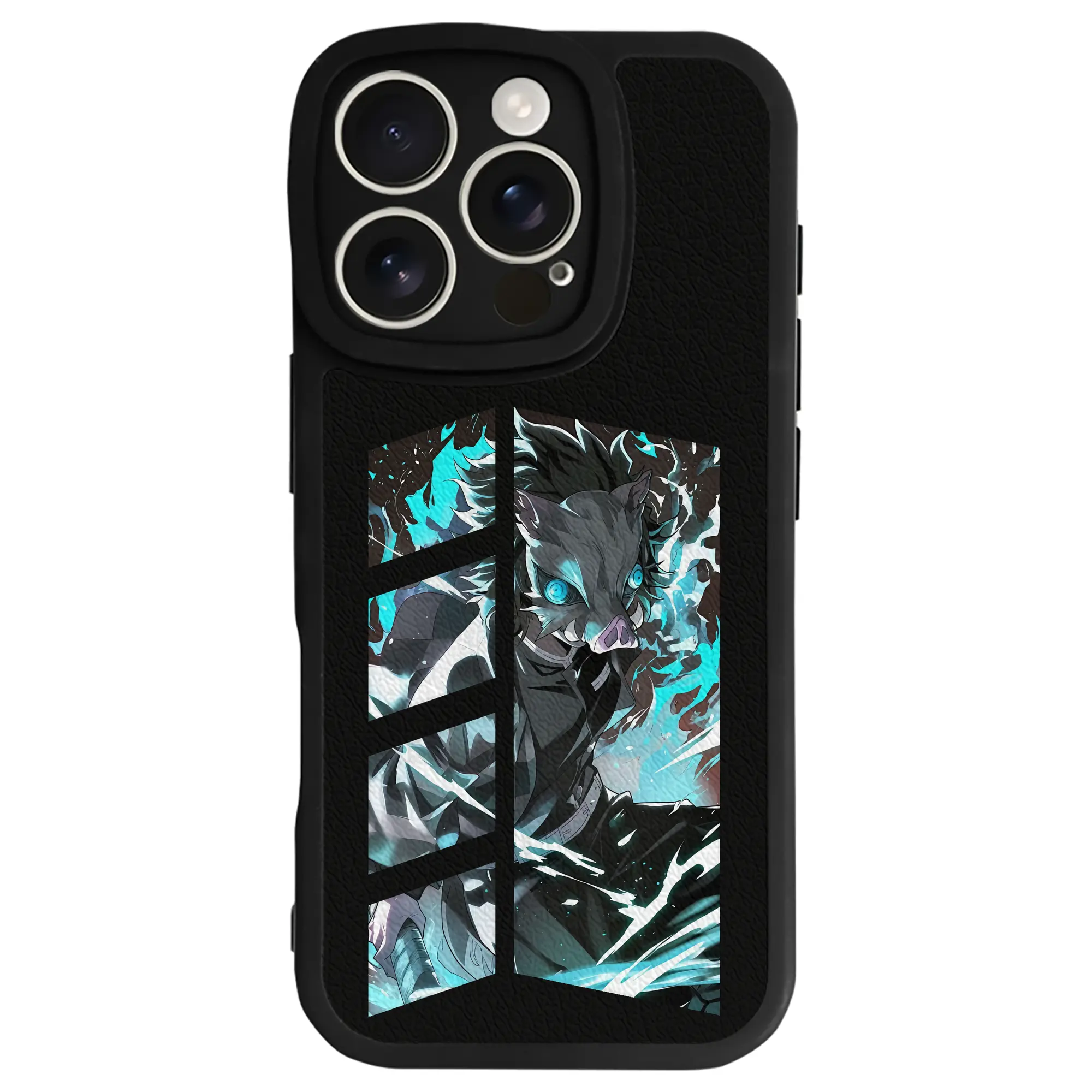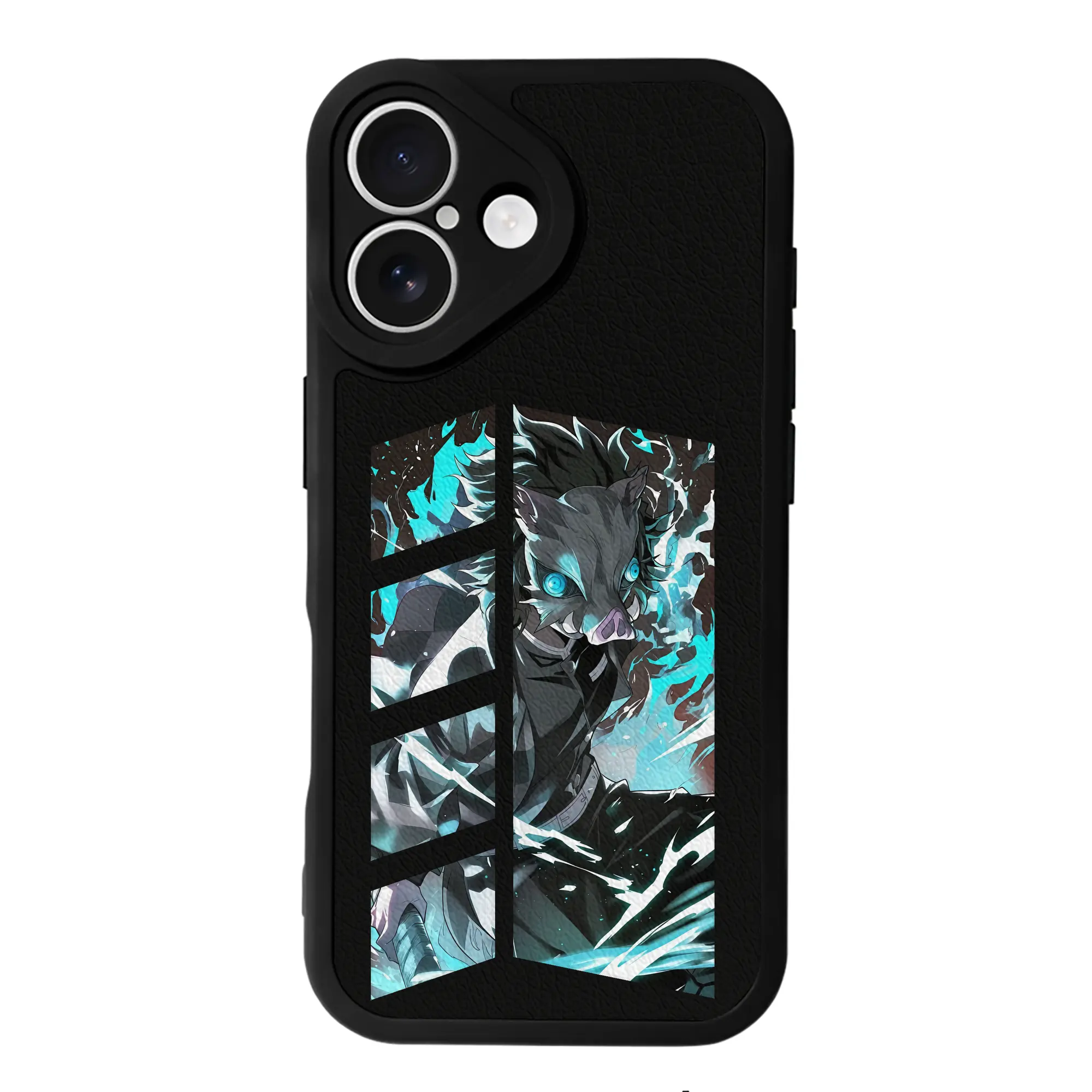鬼滅の刃 グッズ,嘴平 伊之助 - IPhone 16シリーズ対応 ・ シリコンスマホケース ・ レザー調 ・ 高精度フィット ・ 耐衝撃 ・ ワイヤレス充電対応 ・ 精密カット