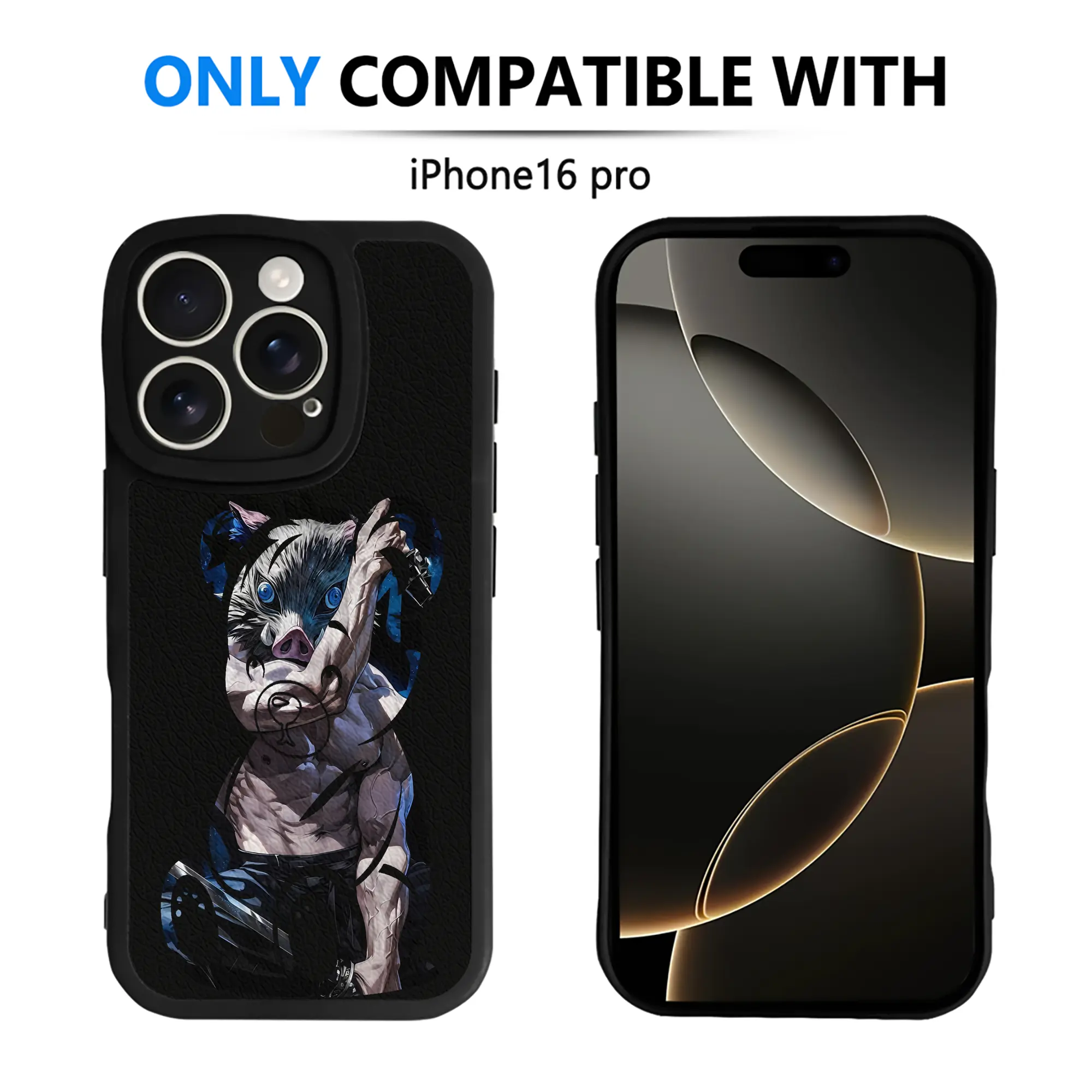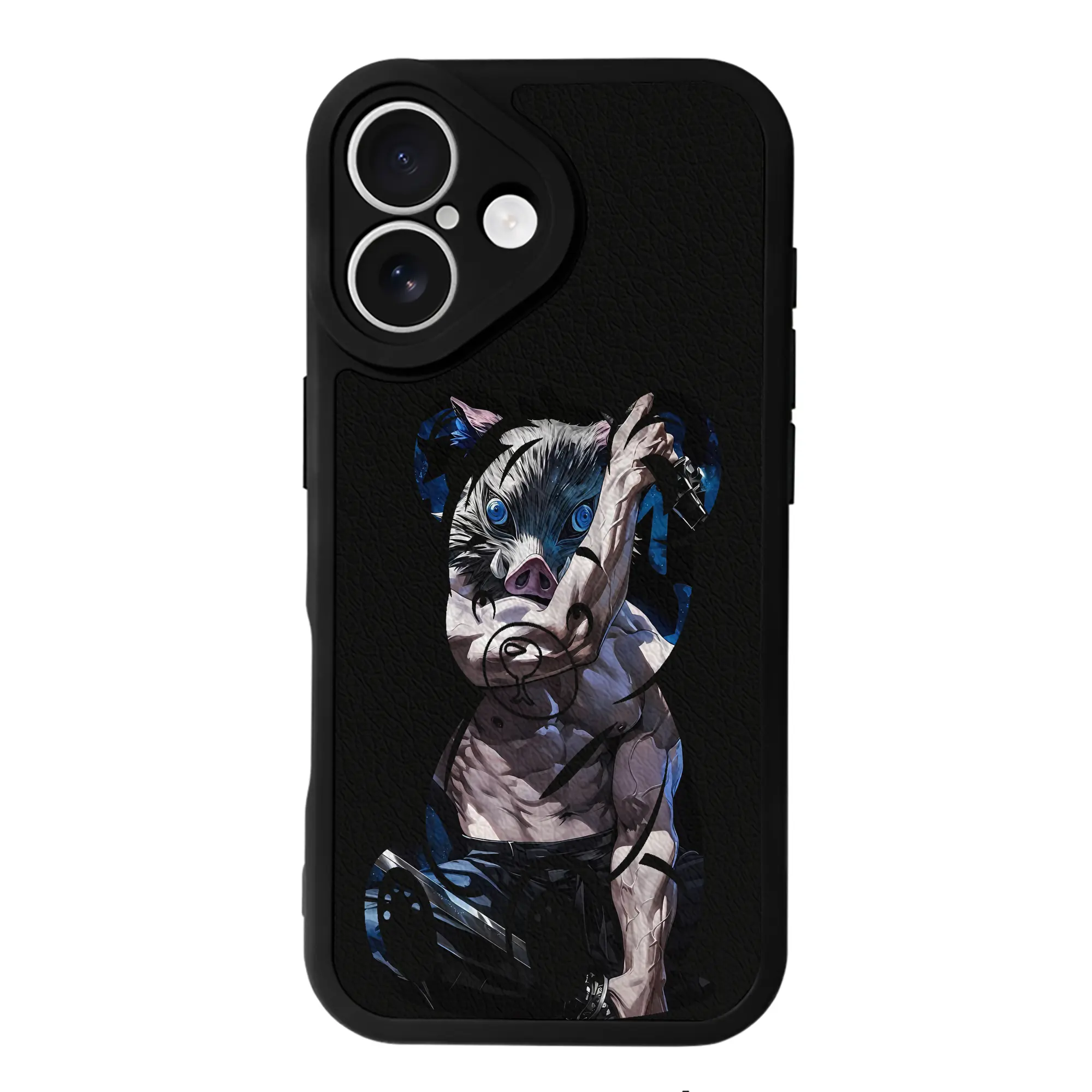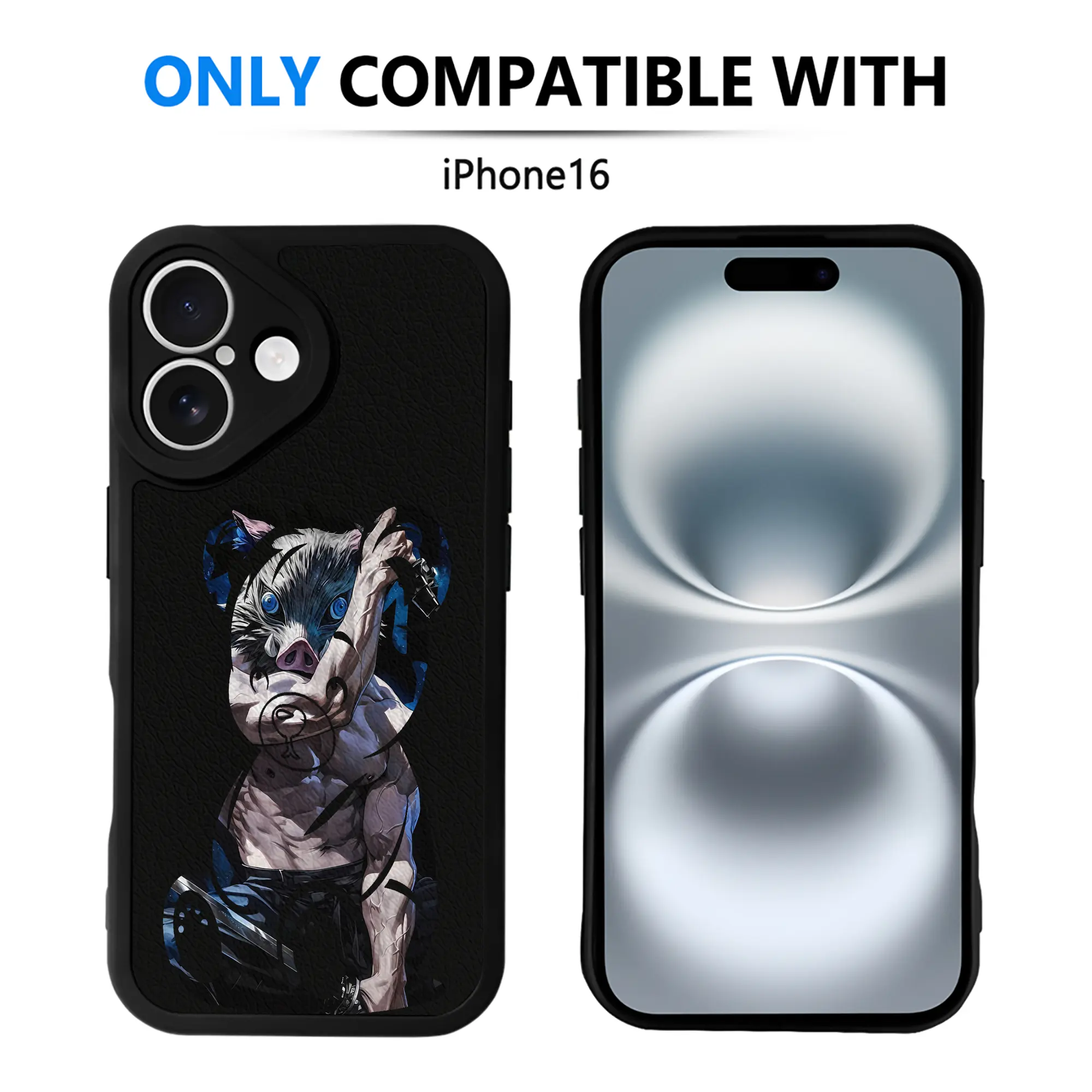 鬼滅の刃 グッズ,嘴平 伊之助 - IPhone 16シリーズ対応 ・ シリコンスマホケース ・ レザー調 ・ 高精度フィット ・ 耐衝撃 ・ ワイヤレス充電対応 ・ 精密カット