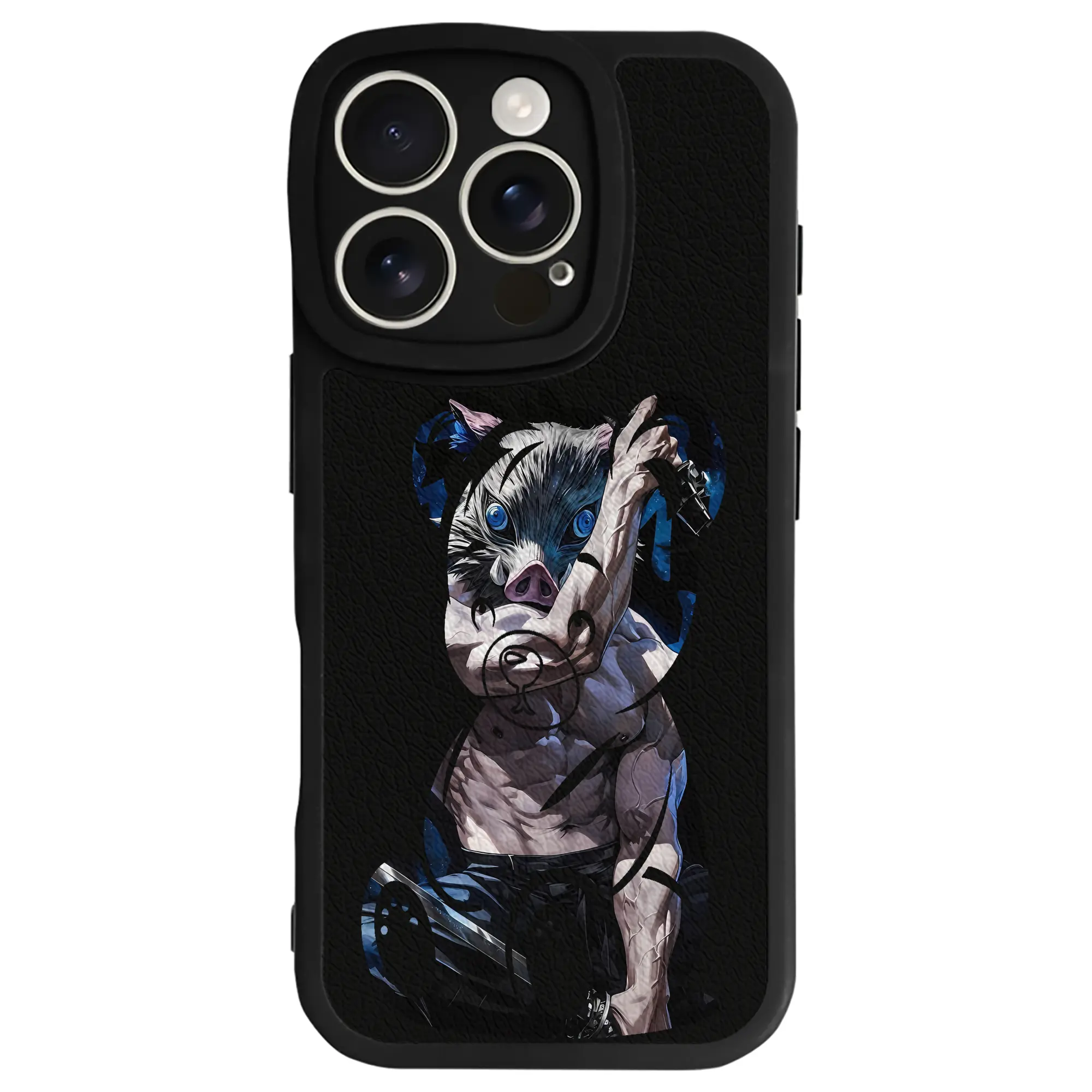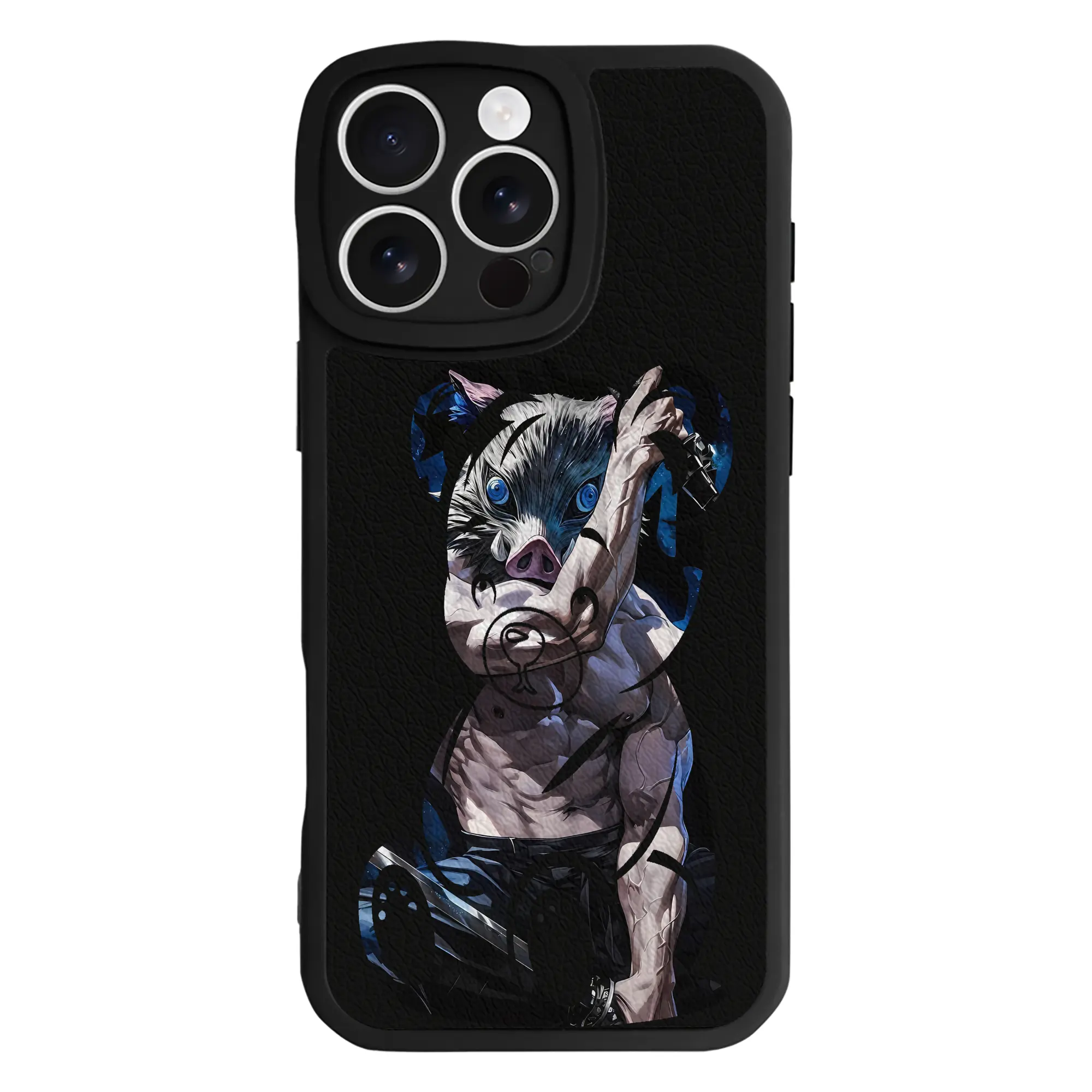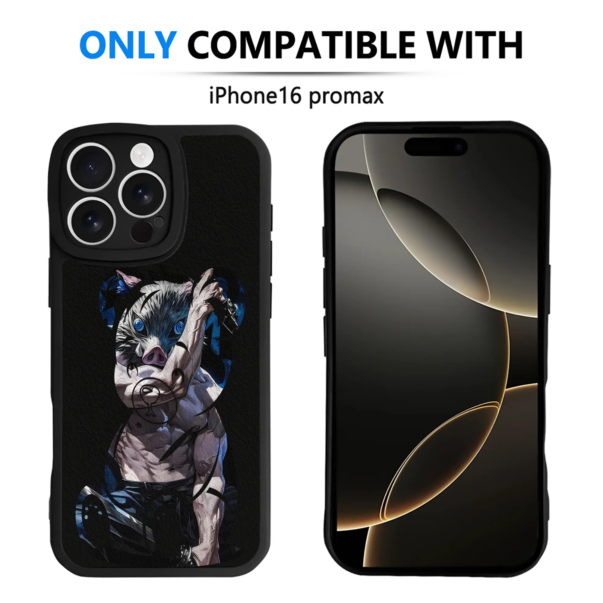 鬼滅の刃 グッズ,嘴平 伊之助 - IPhone 16シリーズ対応 ・ シリコンスマホケース ・ レザー調 ・ 高精度フィット ・ 耐衝撃 ・ ワイヤレス充電対応 ・ 精密カット