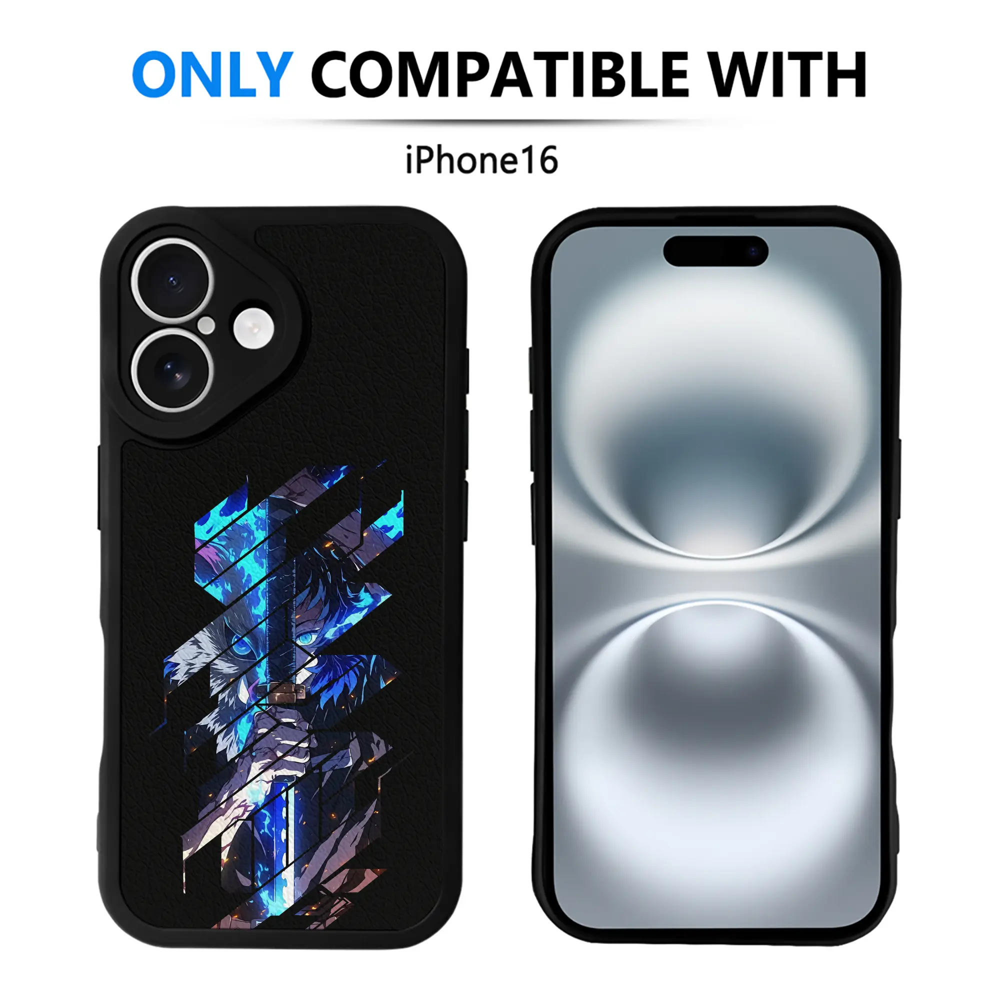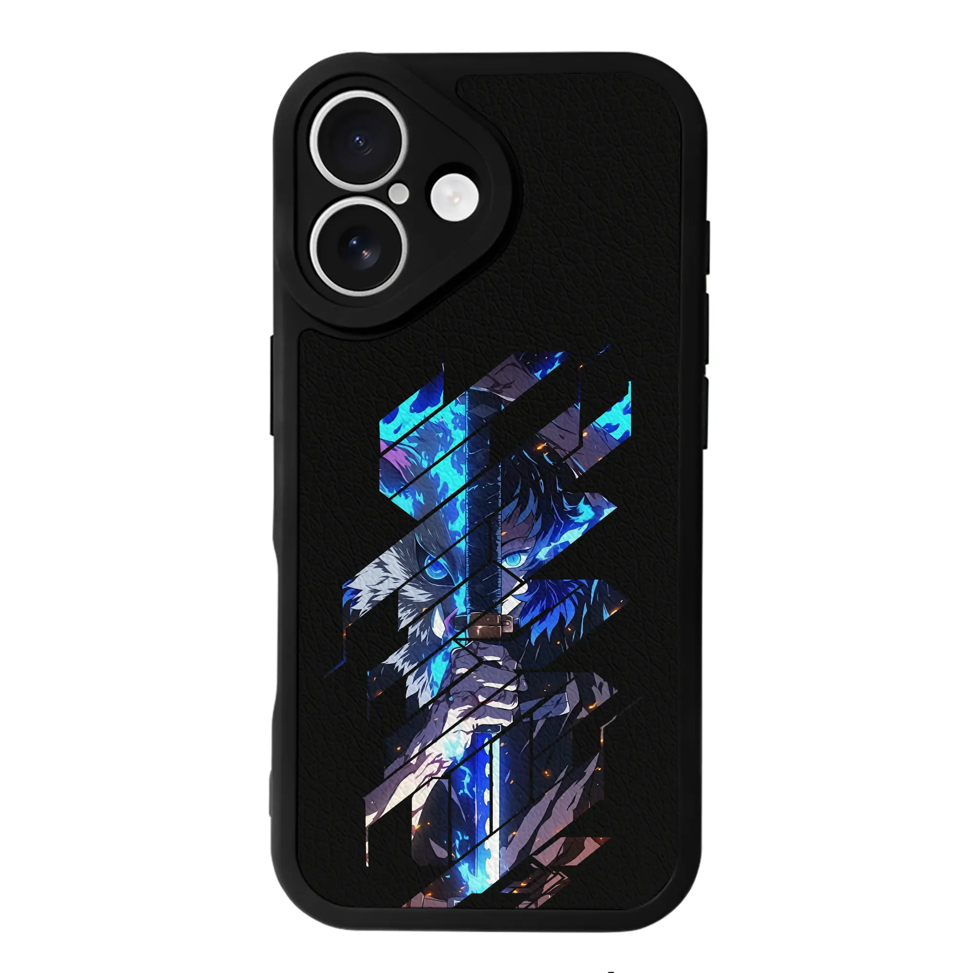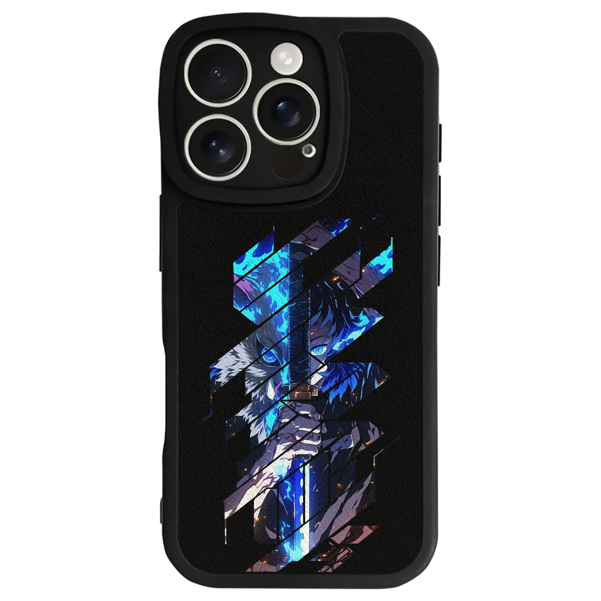 鬼滅の刃 グッズ,嘴平 伊之助 - IPhone 16シリーズ対応 ・ シリコンスマホケース ・ レザー調 ・ 高精度フィット ・ 耐衝撃 ・ ワイヤレス充電対応 ・ 精密カット