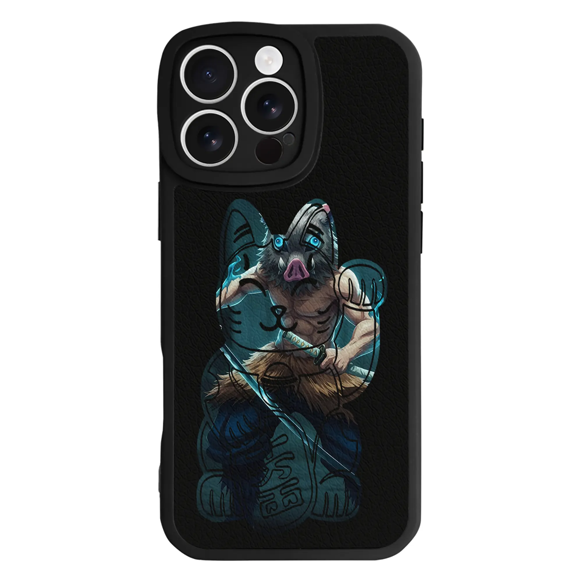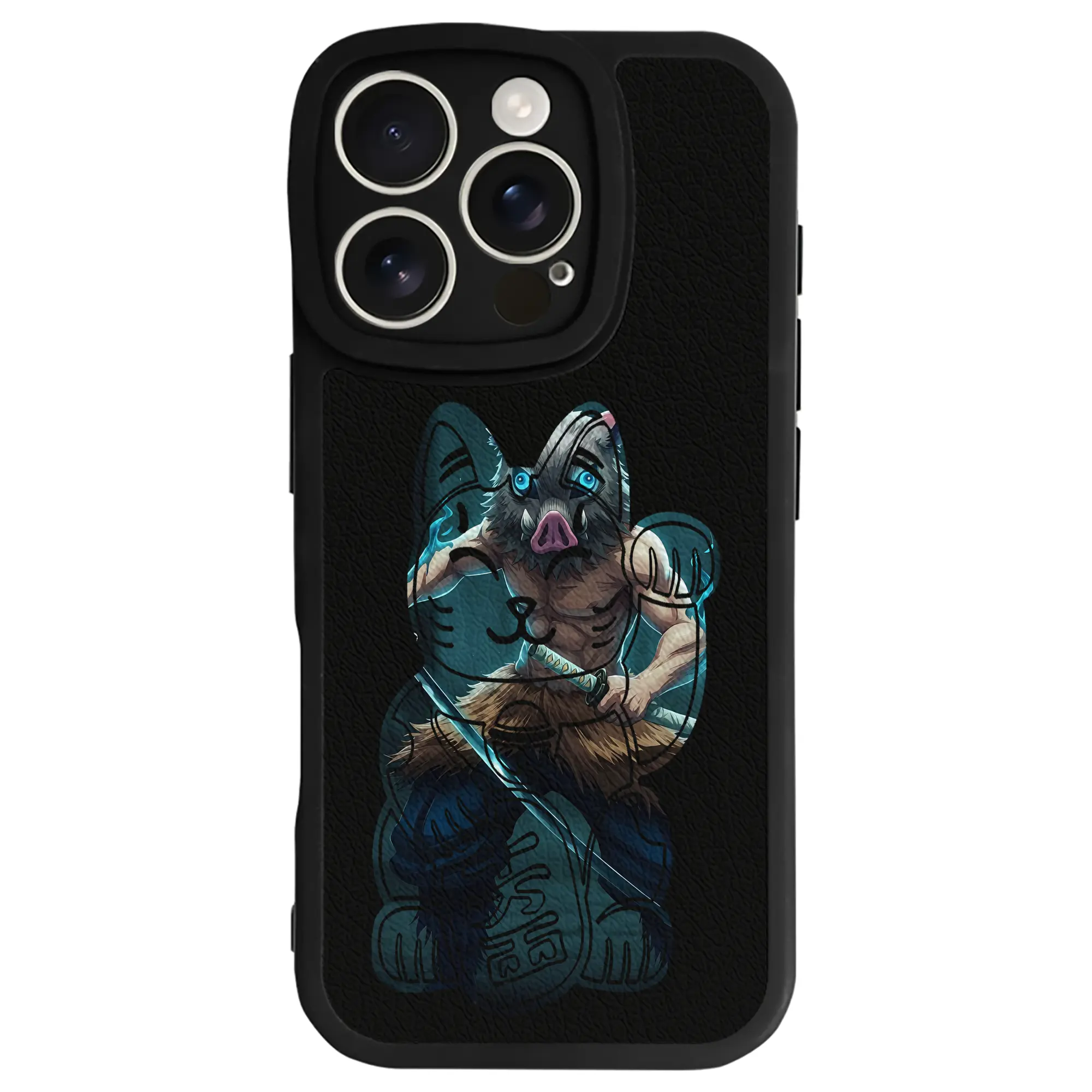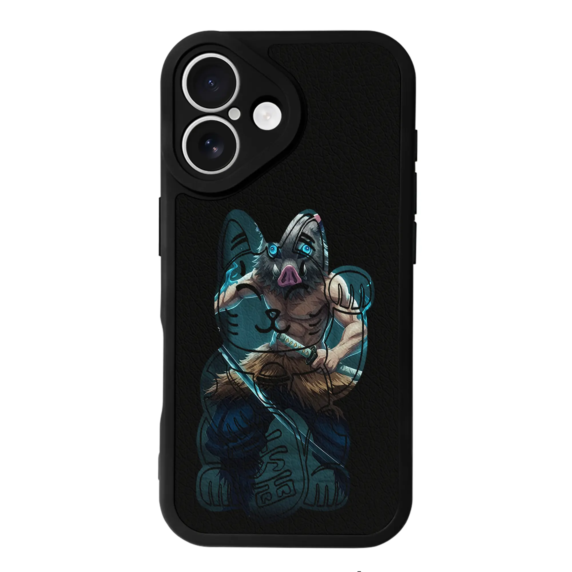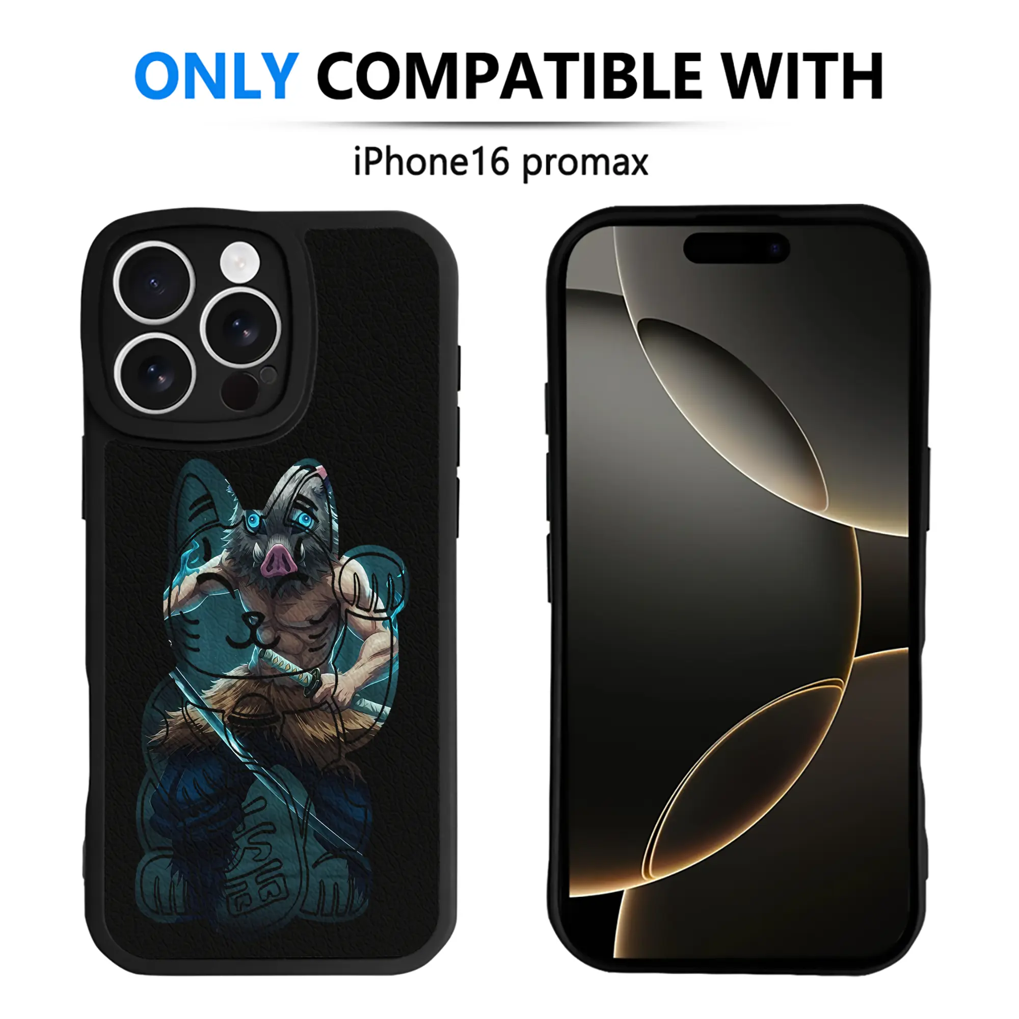 鬼滅の刃 グッズ,嘴平 伊之助 - IPhone 16シリーズ対応 ・ シリコンスマホケース ・ レザー調 ・ 高精度フィット ・ 耐衝撃 ・ ワイヤレス充電対応 ・ 精密カット