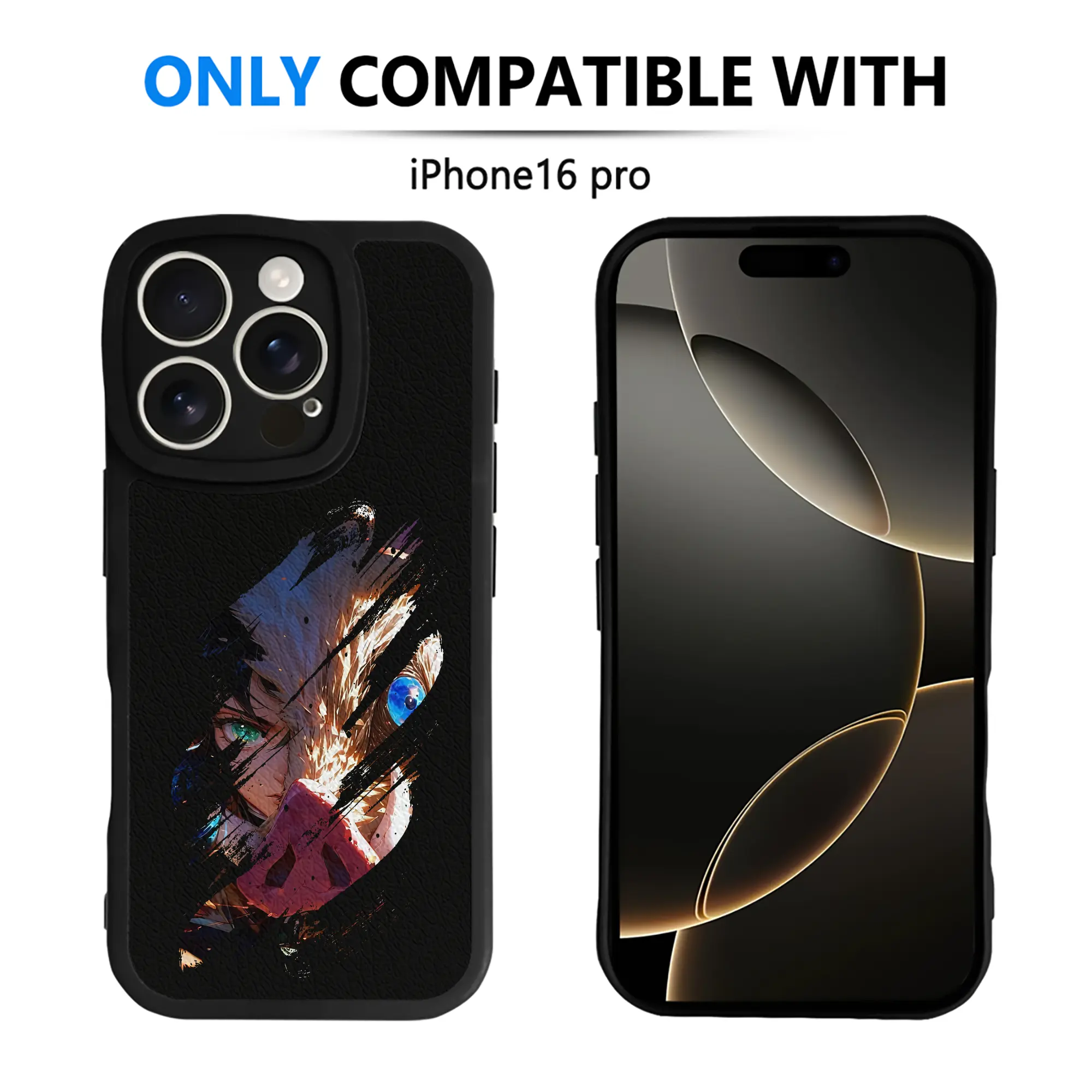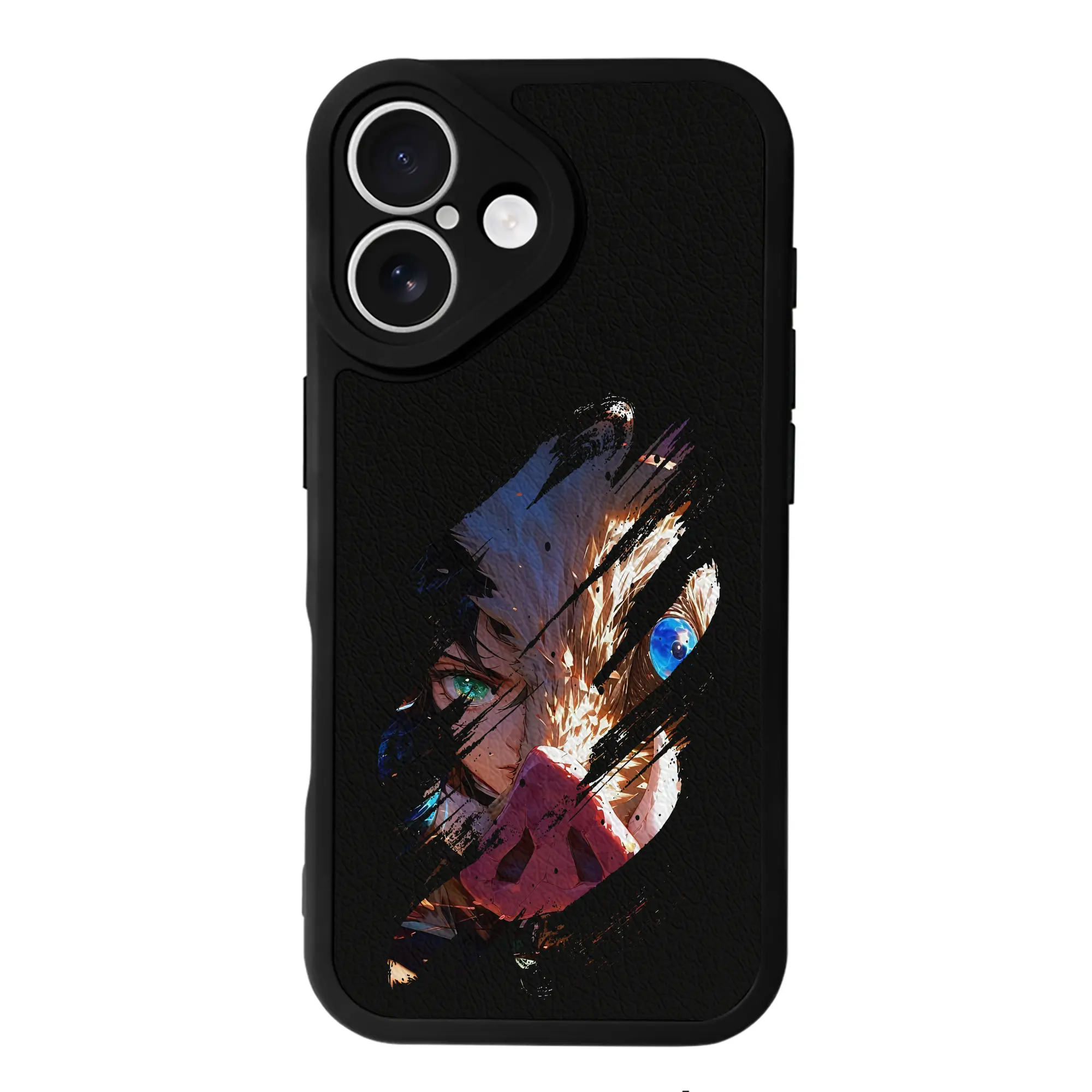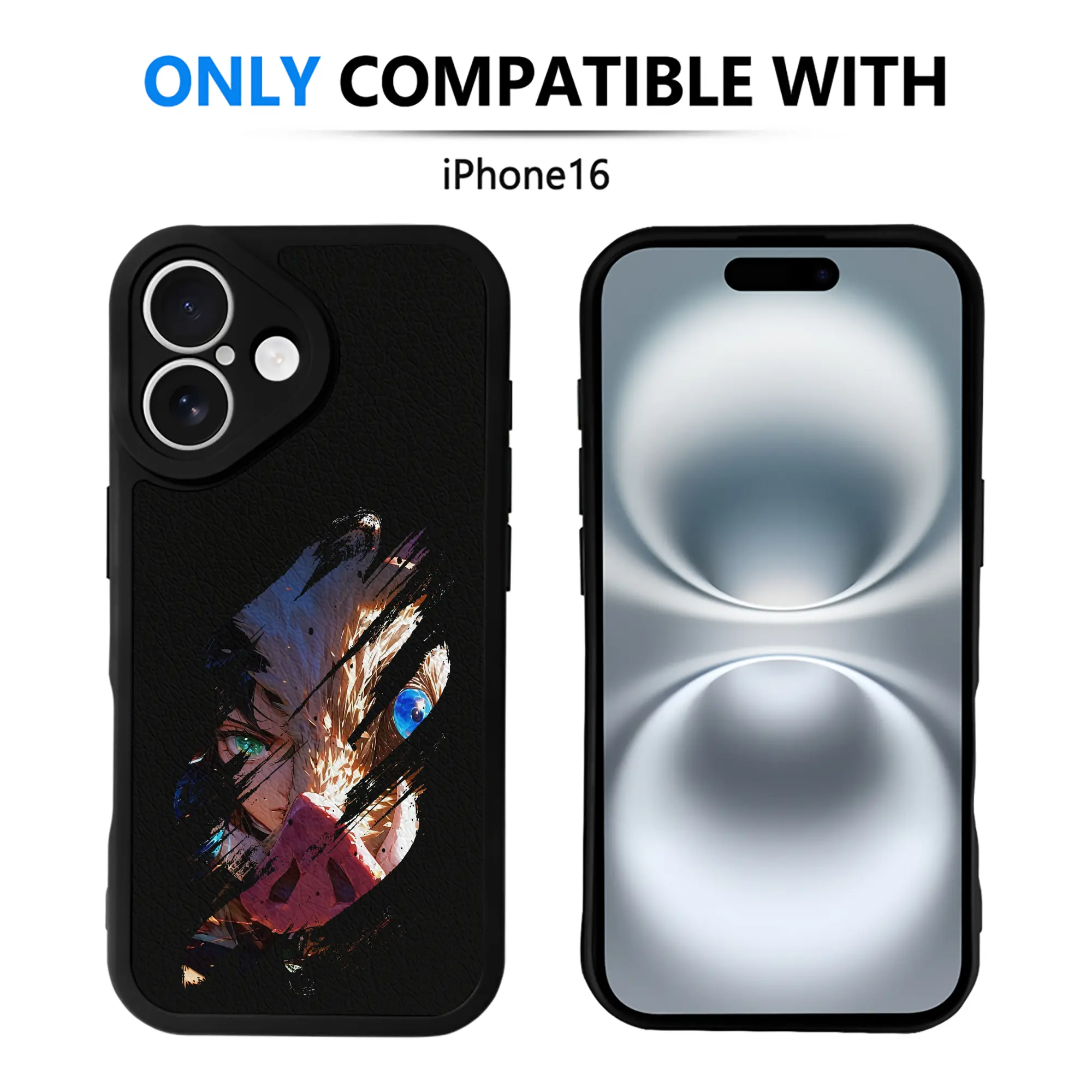 鬼滅の刃 グッズ,嘴平 伊之助 - IPhone 16シリーズ対応 ・ シリコンスマホケース ・ レザー調 ・ 高精度フィット ・ 耐衝撃 ・ ワイヤレス充電対応 ・ 精密カット