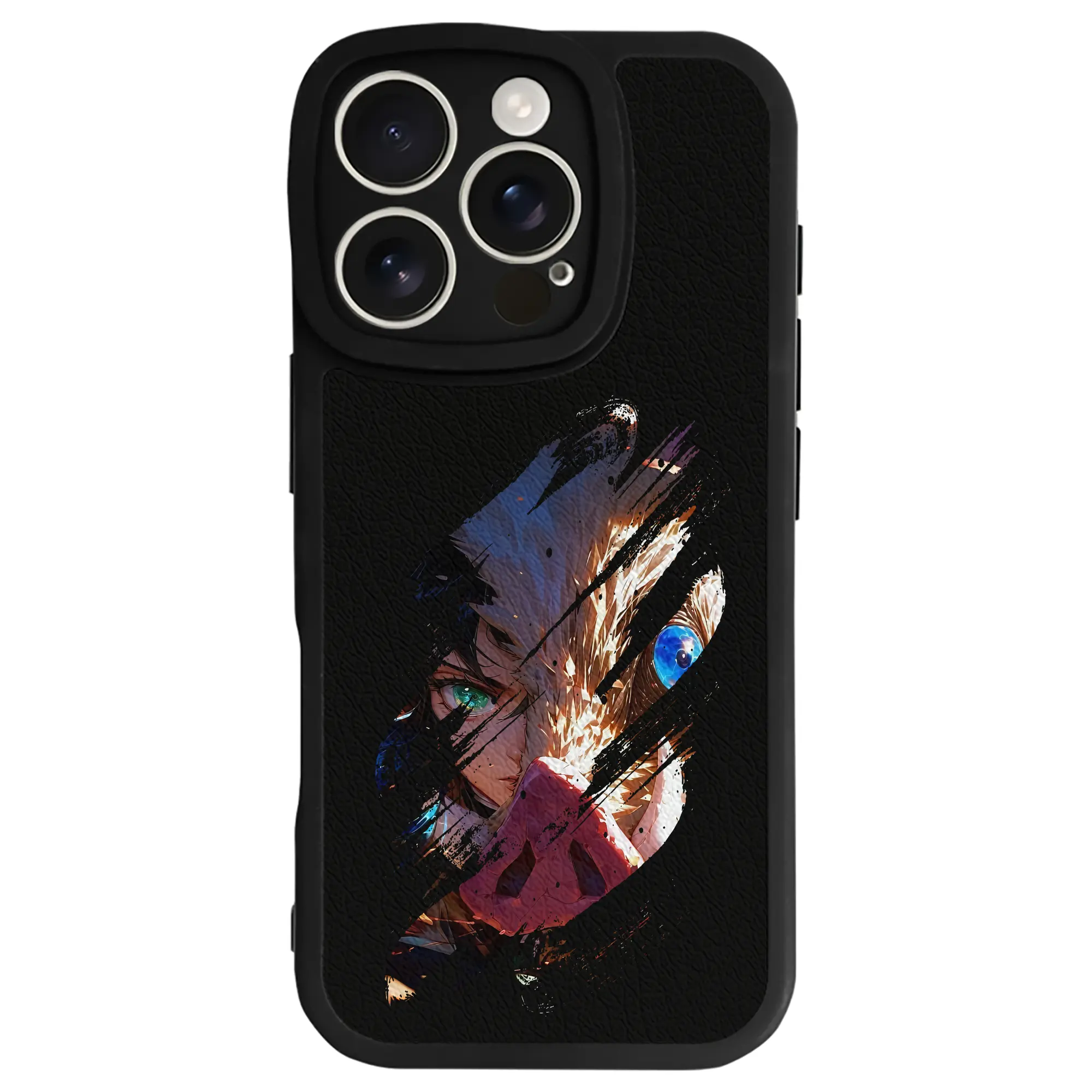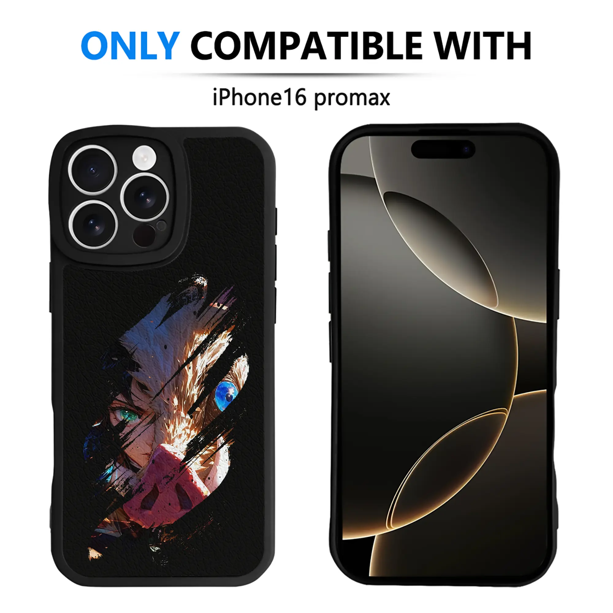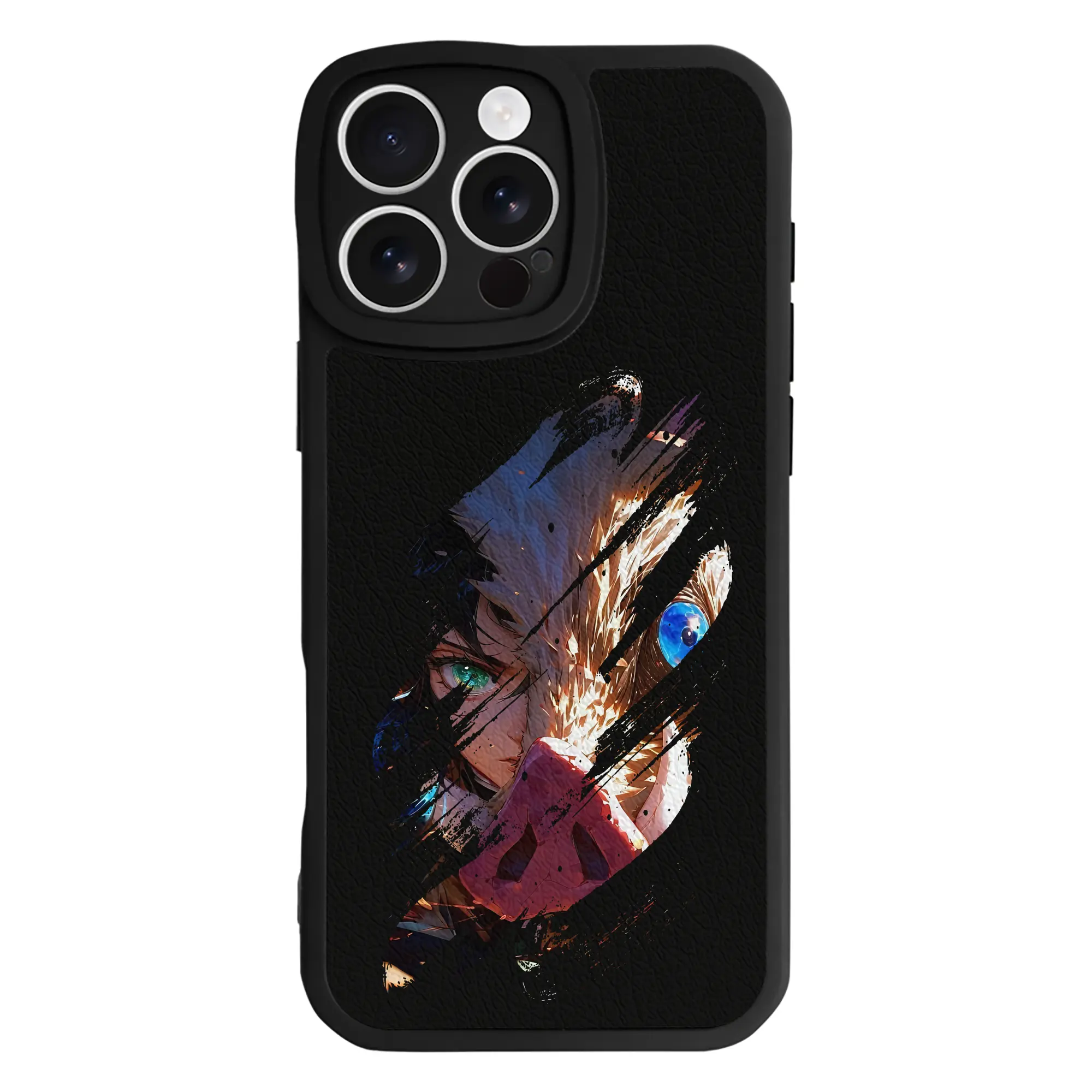 鬼滅の刃 グッズ,嘴平 伊之助 - IPhone 16シリーズ対応 ・ シリコンスマホケース ・ レザー調 ・ 高精度フィット ・ 耐衝撃 ・ ワイヤレス充電対応 ・ 精密カット