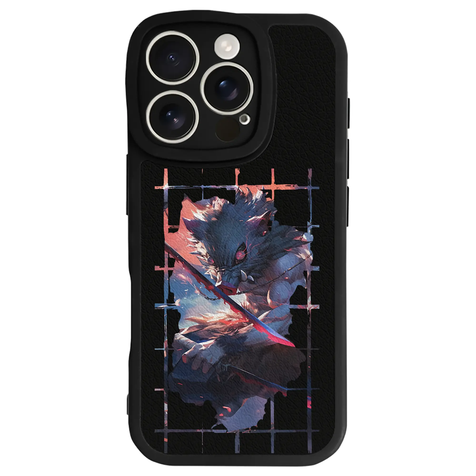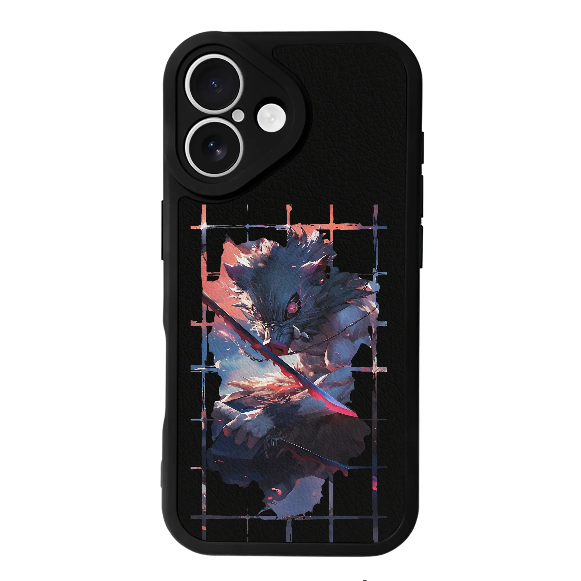 鬼滅の刃 グッズ,嘴平 伊之助 - IPhone 16シリーズ対応 ・ シリコンスマホケース ・ レザー調 ・ 高精度フィット ・ 耐衝撃 ・ ワイヤレス充電対応 ・ 精密カット