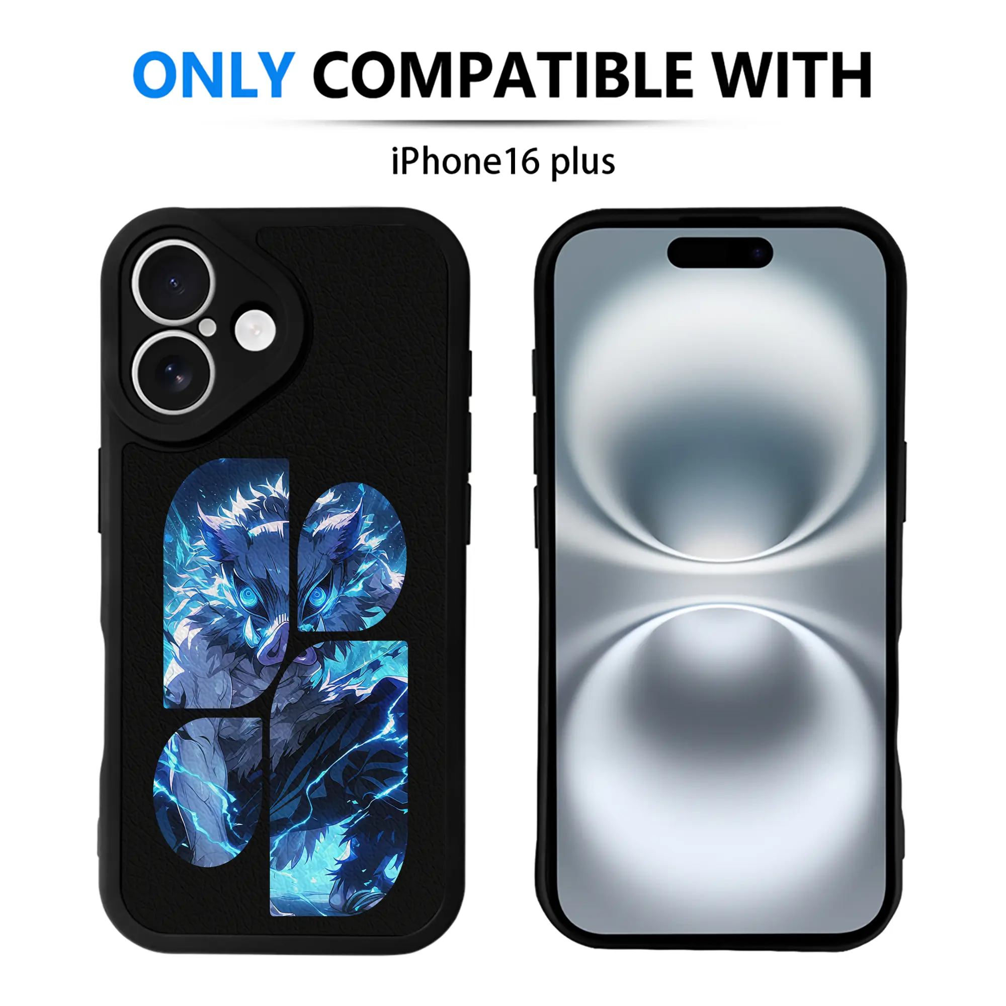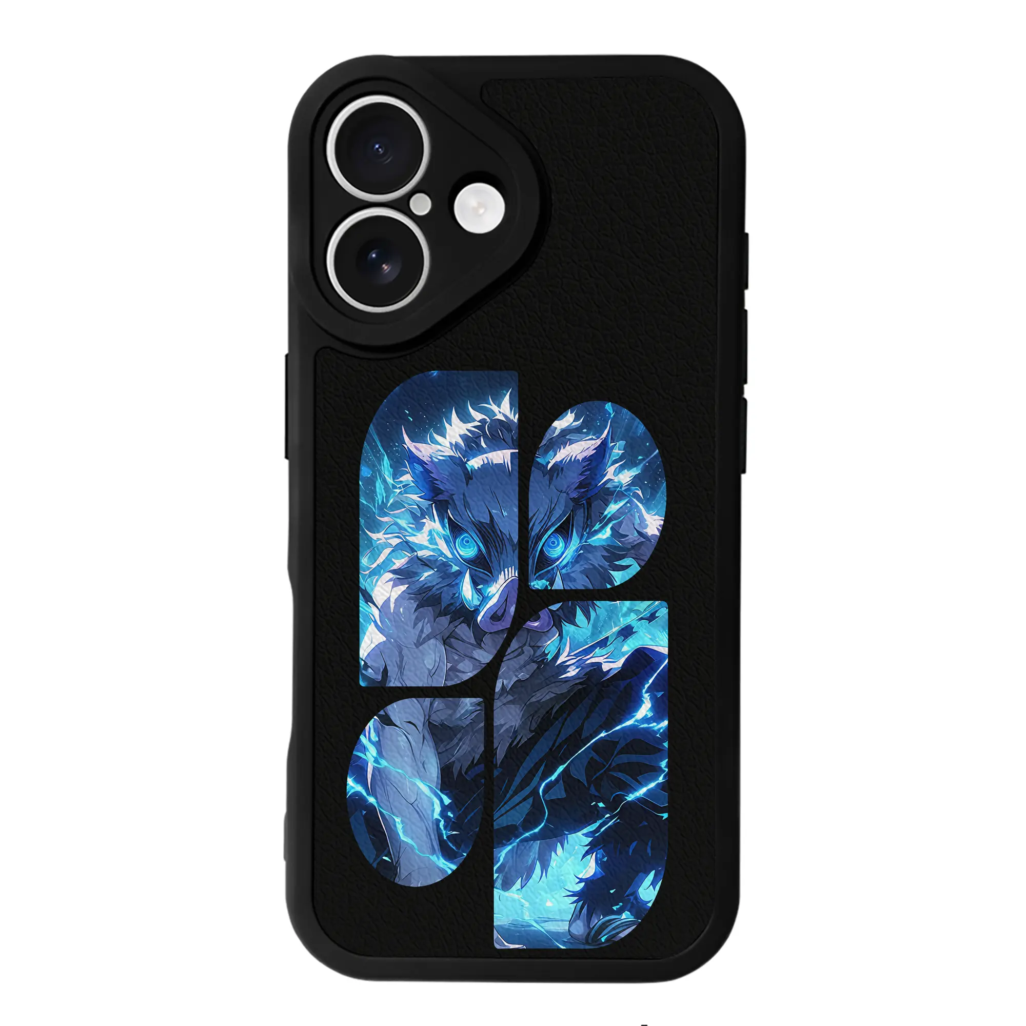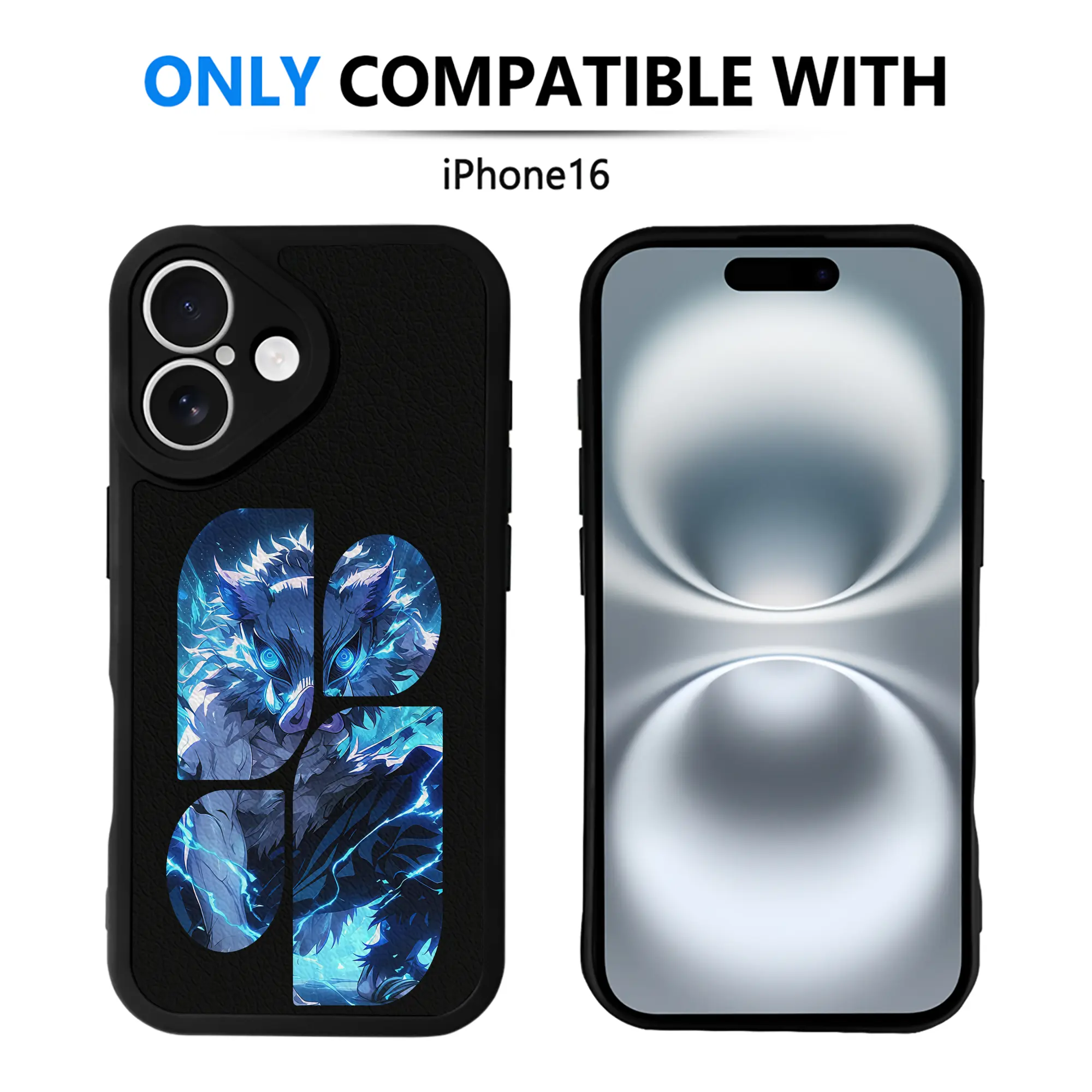 鬼滅の刃 グッズ,嘴平 伊之助 - IPhone 16シリーズ対応 ・ シリコンスマホケース ・ レザー調 ・ 高精度フィット ・ 耐衝撃 ・ ワイヤレス充電対応 ・ 精密カット