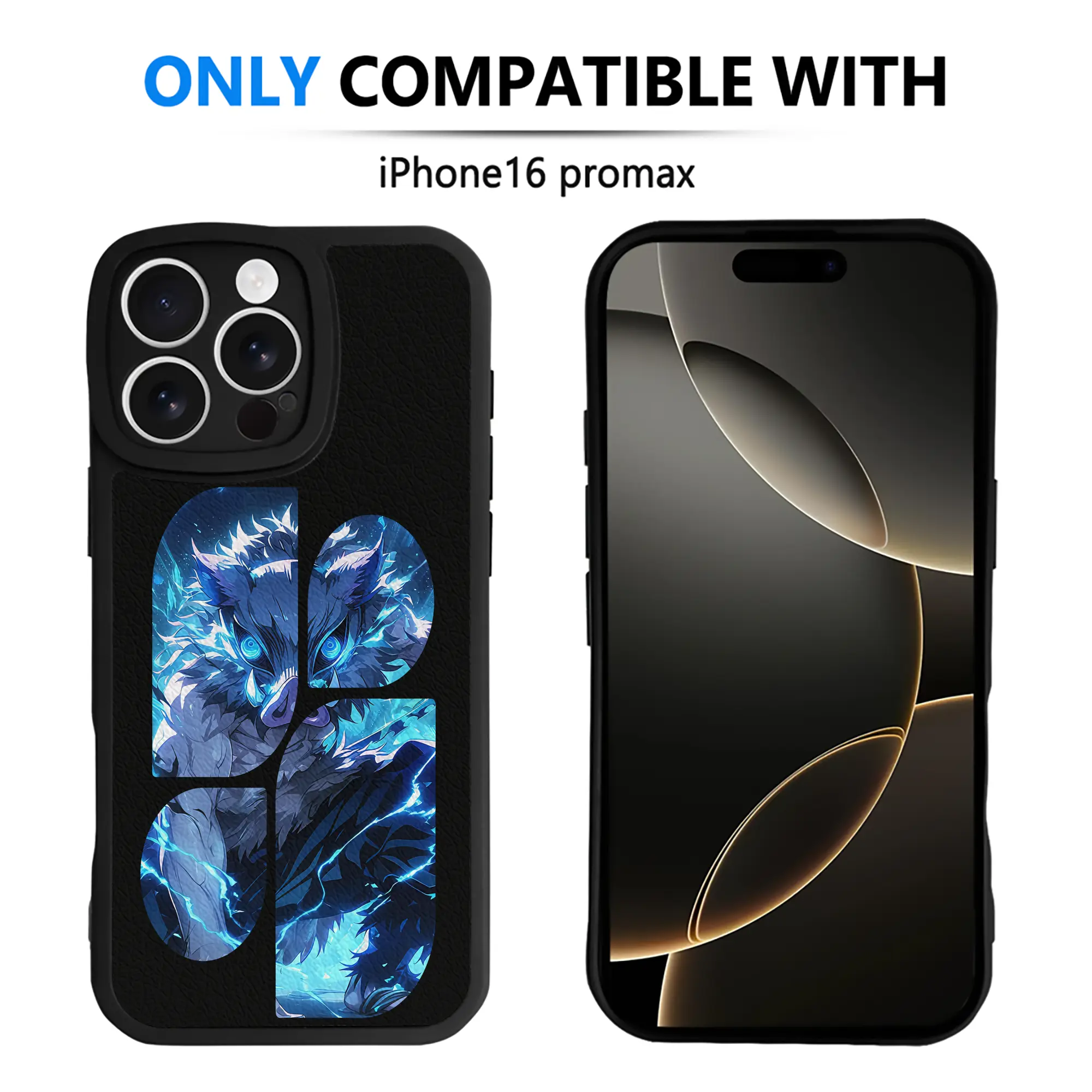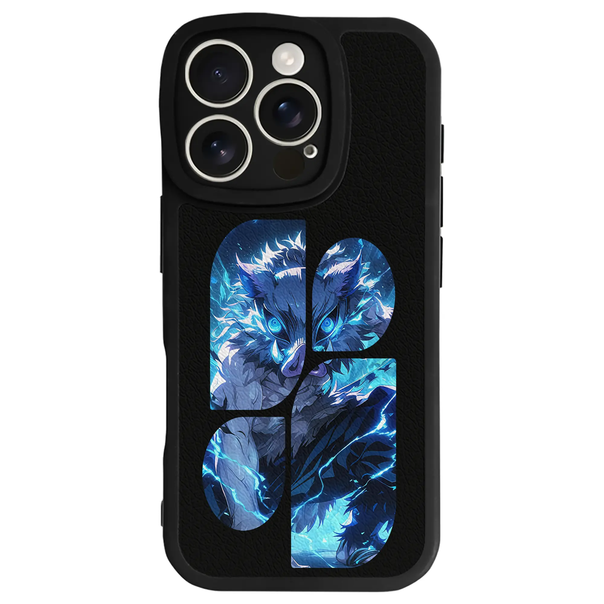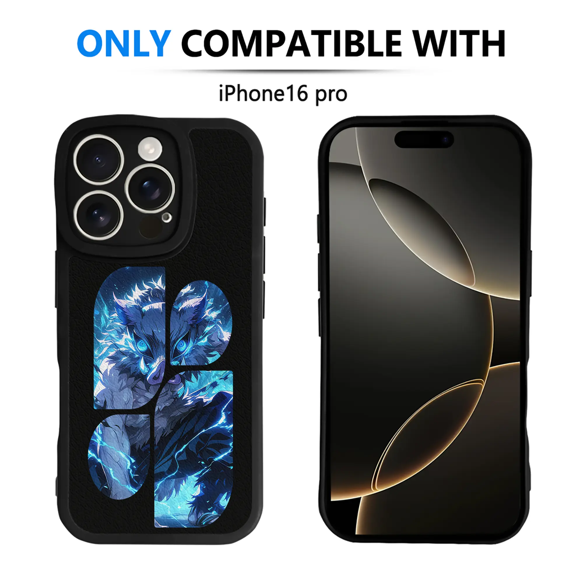 鬼滅の刃 グッズ,嘴平 伊之助 - IPhone 16シリーズ対応 ・ シリコンスマホケース ・ レザー調 ・ 高精度フィット ・ 耐衝撃 ・ ワイヤレス充電対応 ・ 精密カット