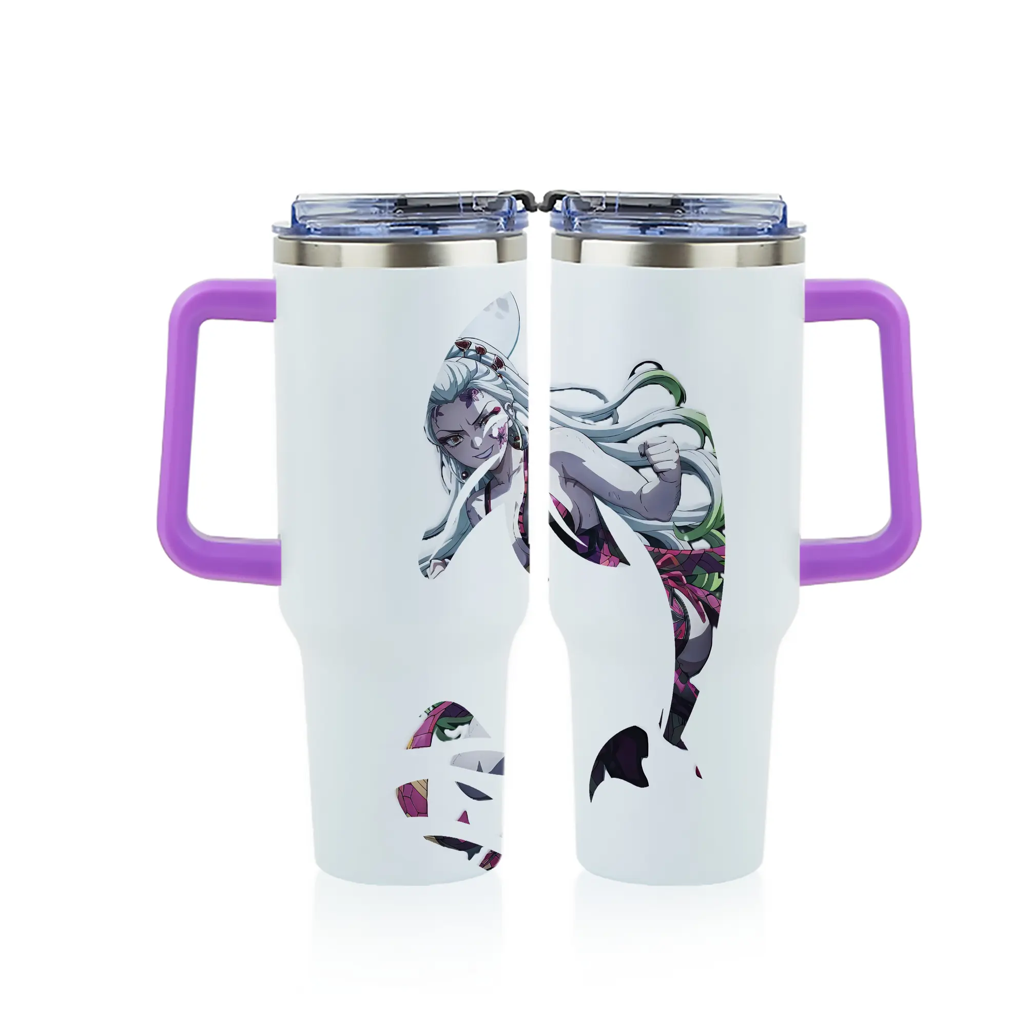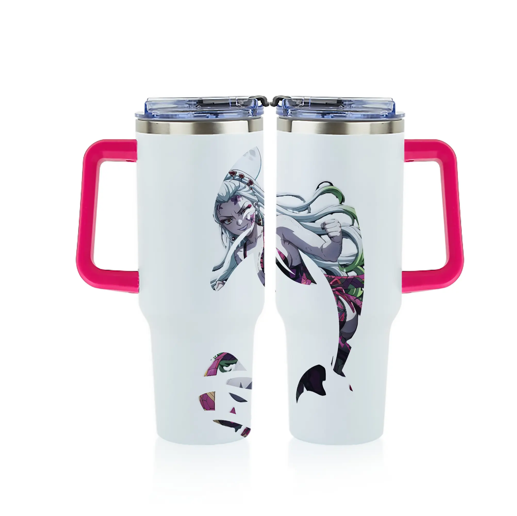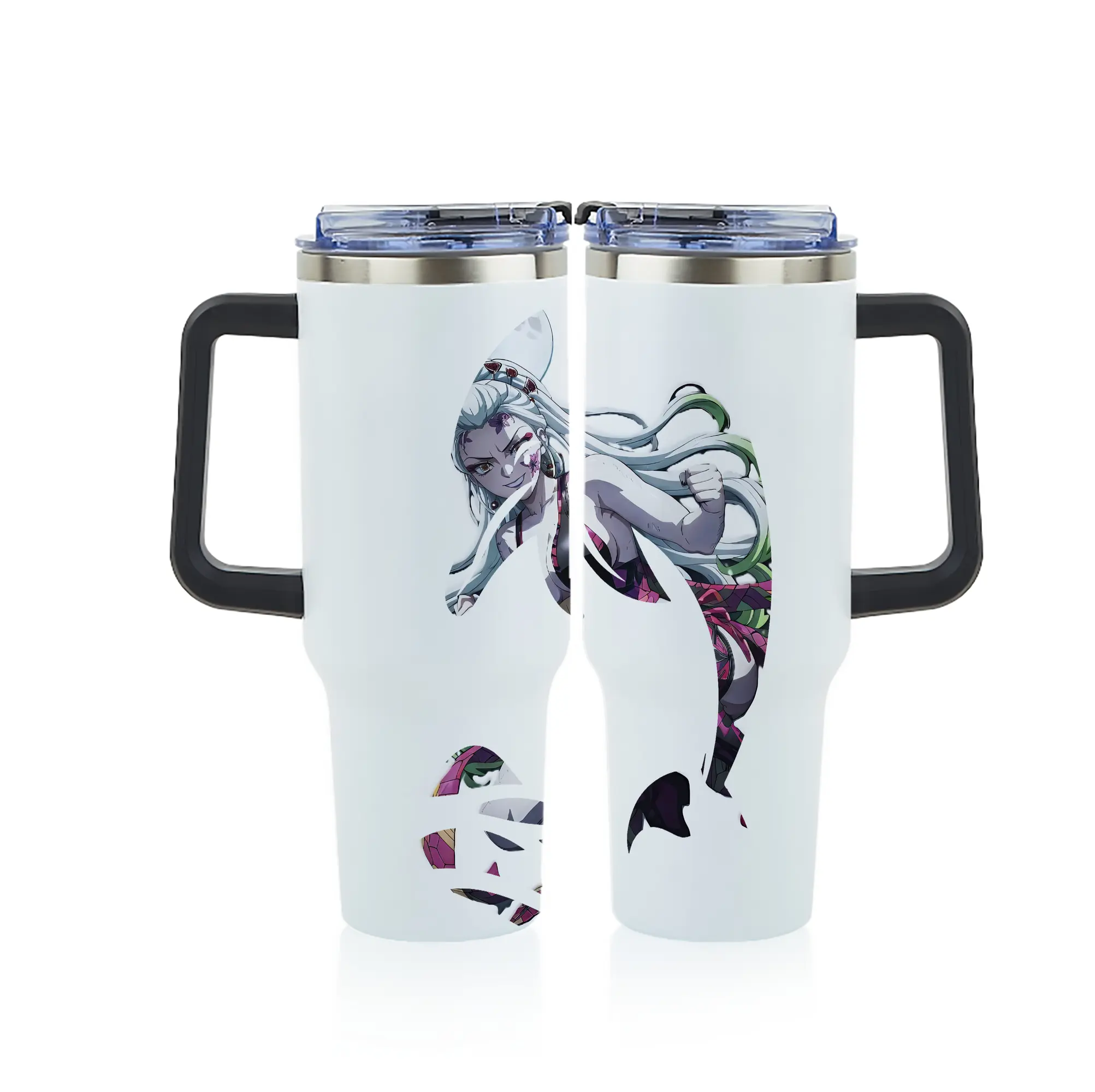 鬼滅の刃 グッズ,堕姫 - 1200mL フルプリント車用タンブラー ・ 304ステンレス 内側 ・ 201ステンレス 外側 ・ 保温 保冷 ・ 通勤 ドライブ アウトドア用