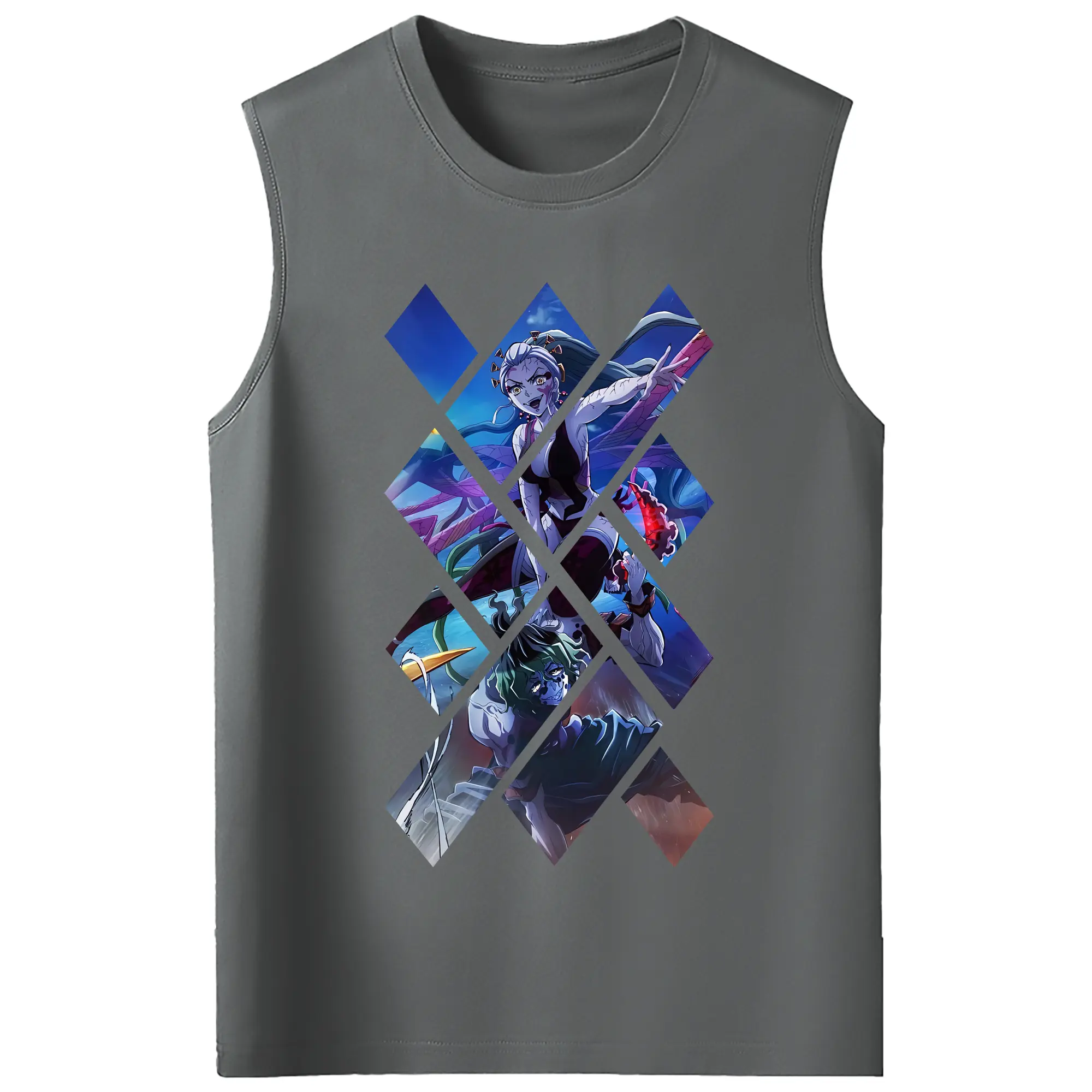 鬼滅の刃 グッズ,堕姫 - コットン100% タンクトップ ・ フロントプリント ・ タイトフィット ・ 快適 通気性 ・ スポーツ カジュアル 散歩用