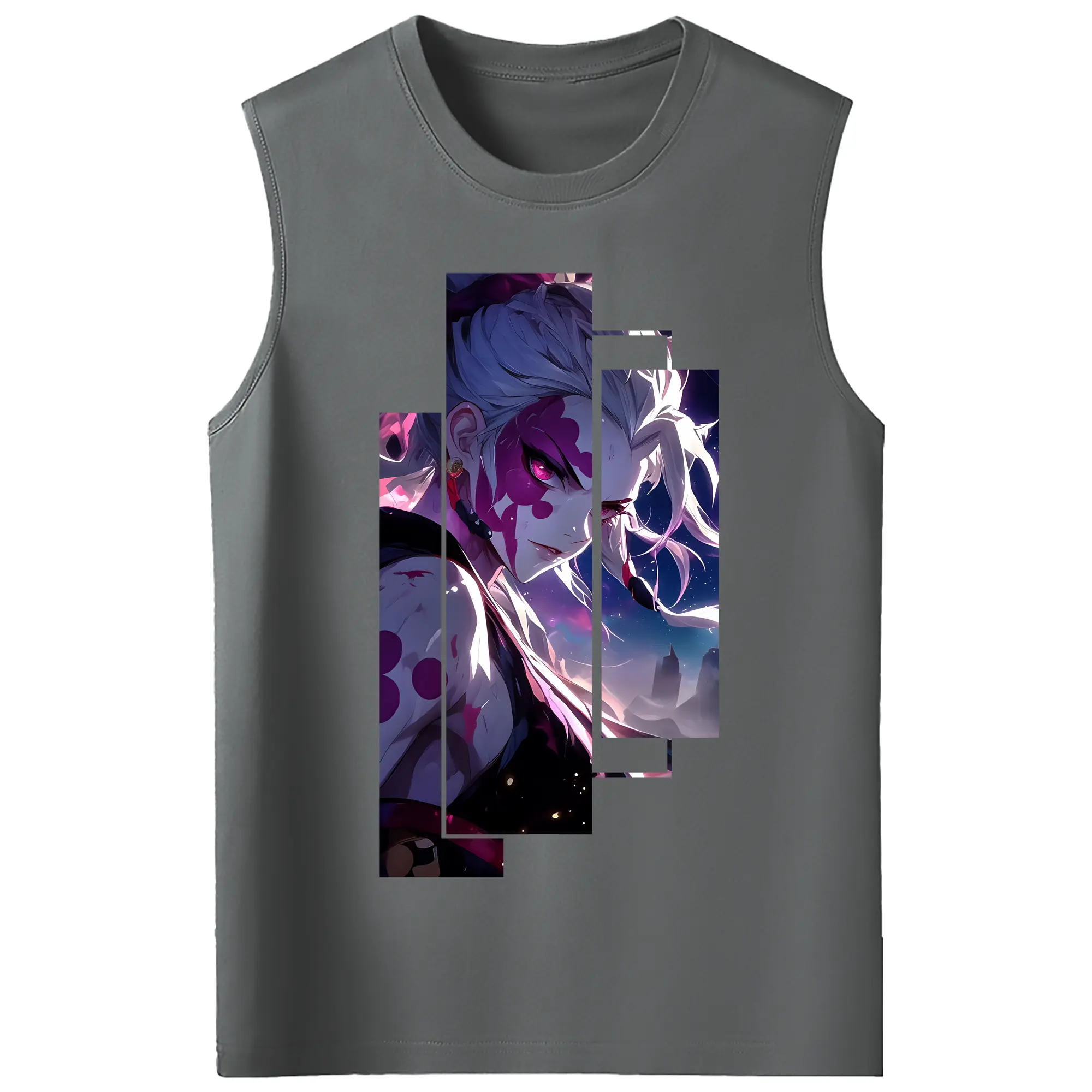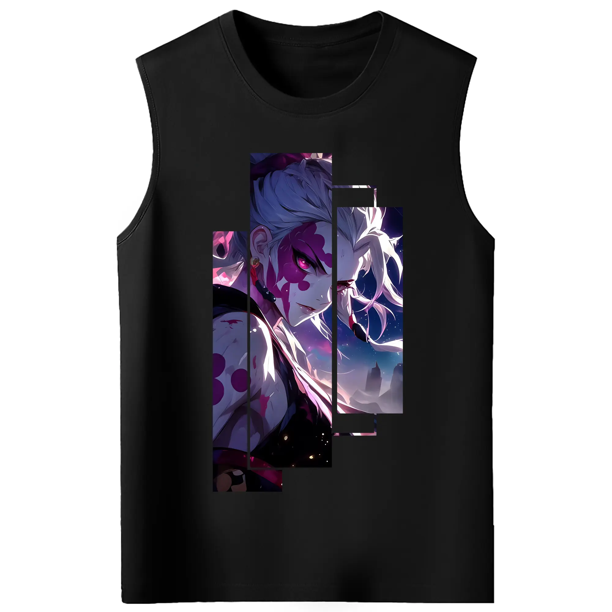 鬼滅の刃 グッズ,堕姫 - コットン100% タンクトップ ・ フロントプリント ・ タイトフィット ・ 快適 通気性 ・ スポーツ カジュアル 散歩用
