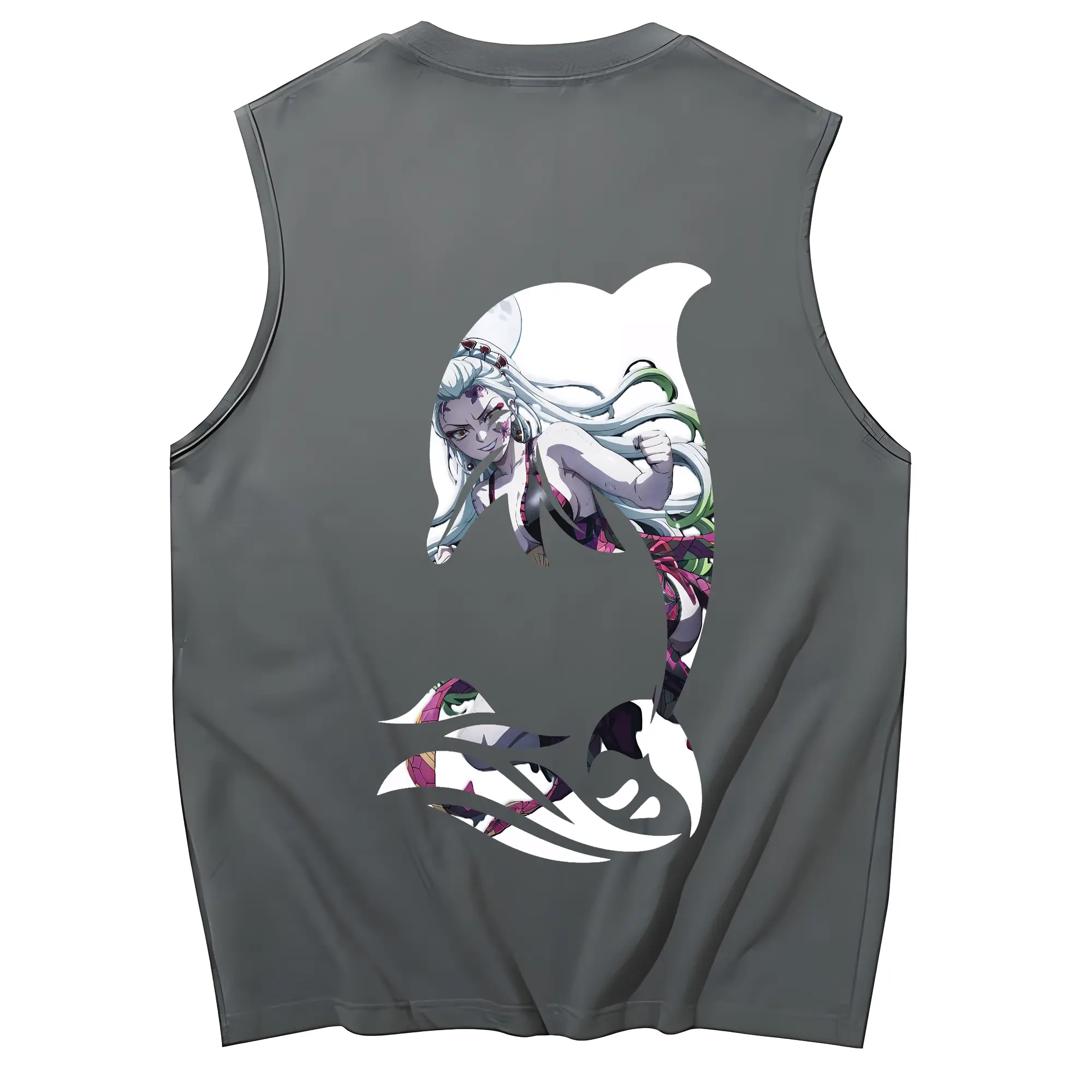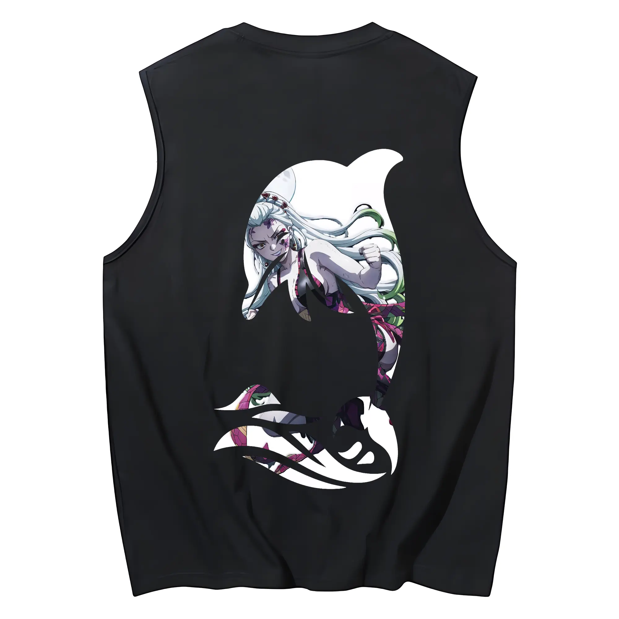 鬼滅の刃 グッズ,堕姫 - コットン100% タンクトップ ・ 背面プリント ・ タイトシルエット ・ 快適 通気性 ・ スポーツ カジュアル 散歩用