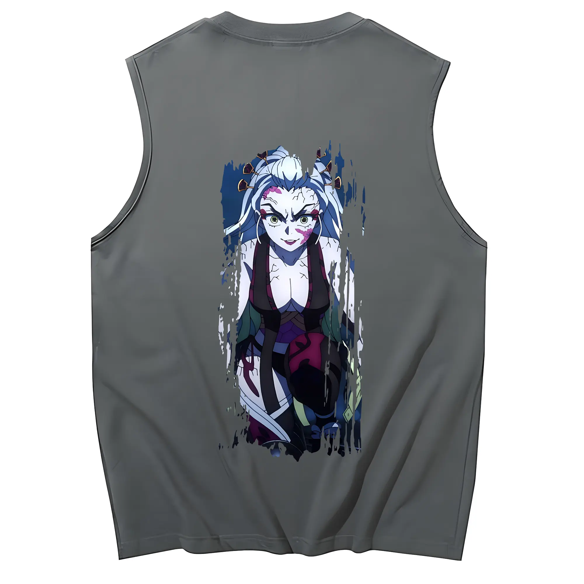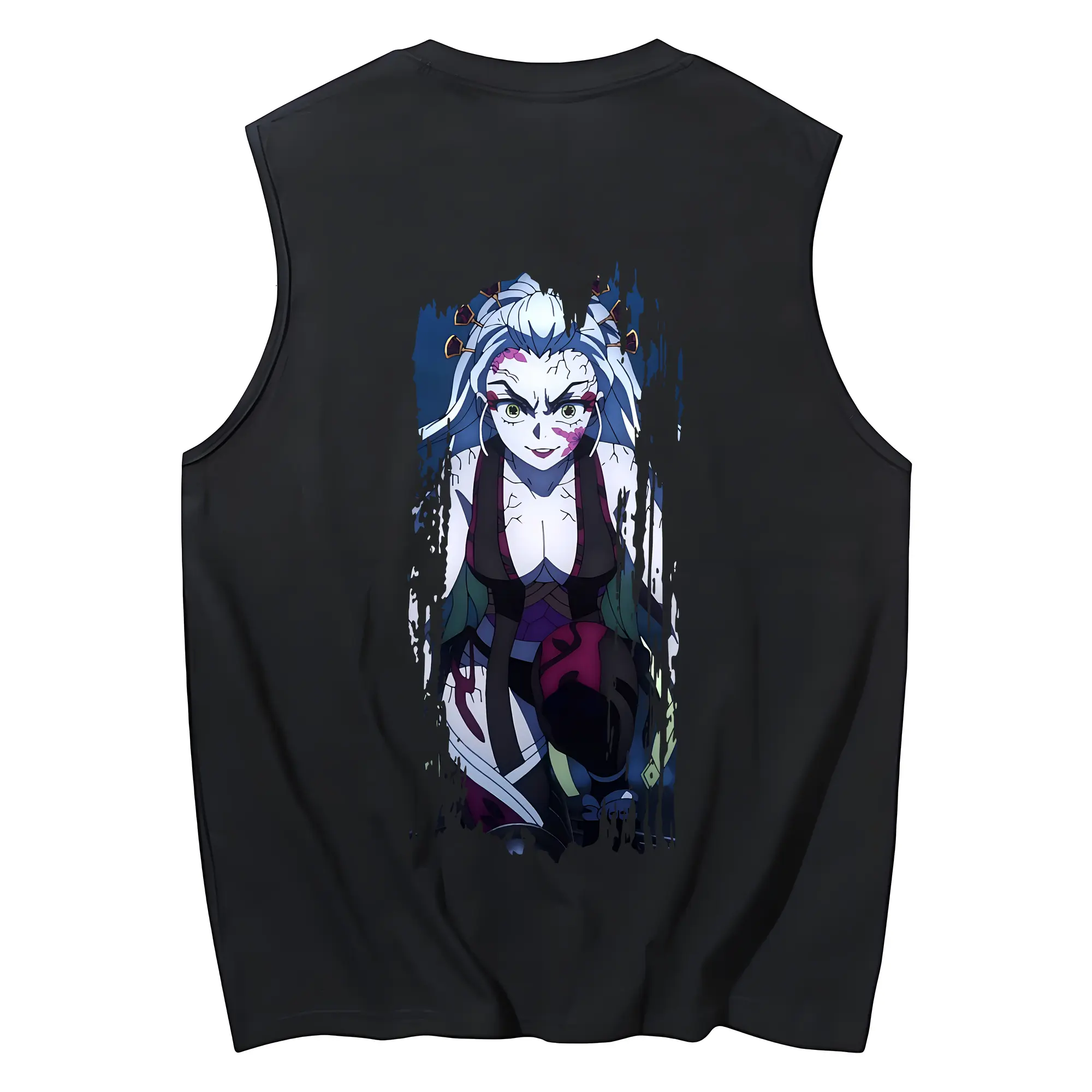 鬼滅の刃 グッズ,堕姫 - コットン100% タンクトップ ・ 背面プリント ・ タイトシルエット ・ 快適 通気性 ・ スポーツ カジュアル 散歩用