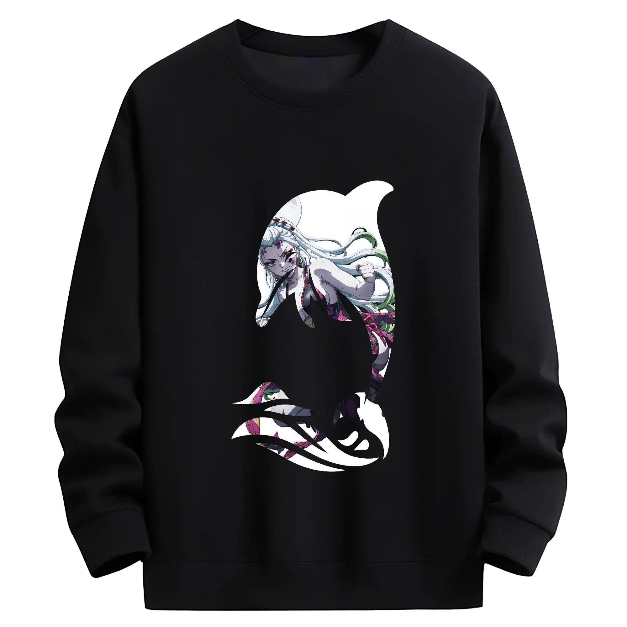 鬼滅の刃 グッズ,堕姫 - 薄手 クルーネック スウェット 裏毛260g · ポリエステル 春秋向け カジュアル 男女兼用 · トレーナー デイリー スポーツ 散歩に最適