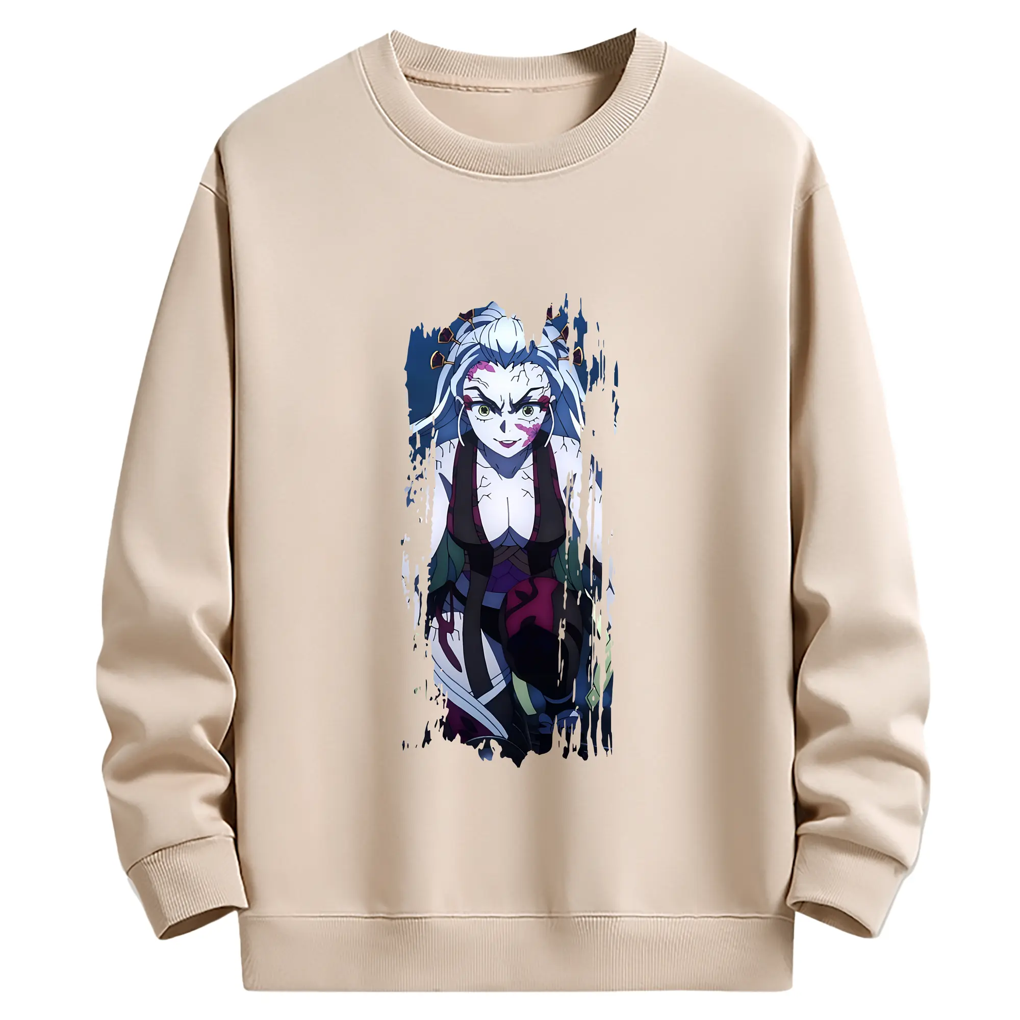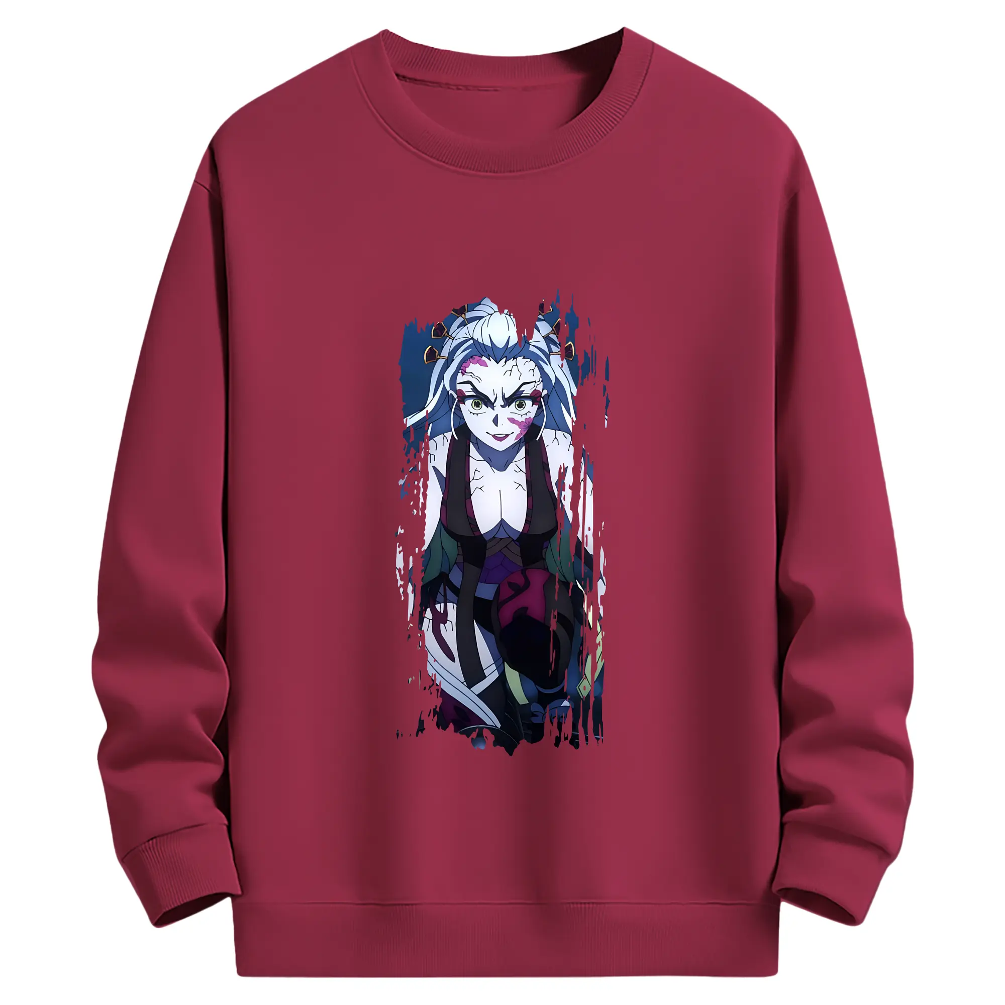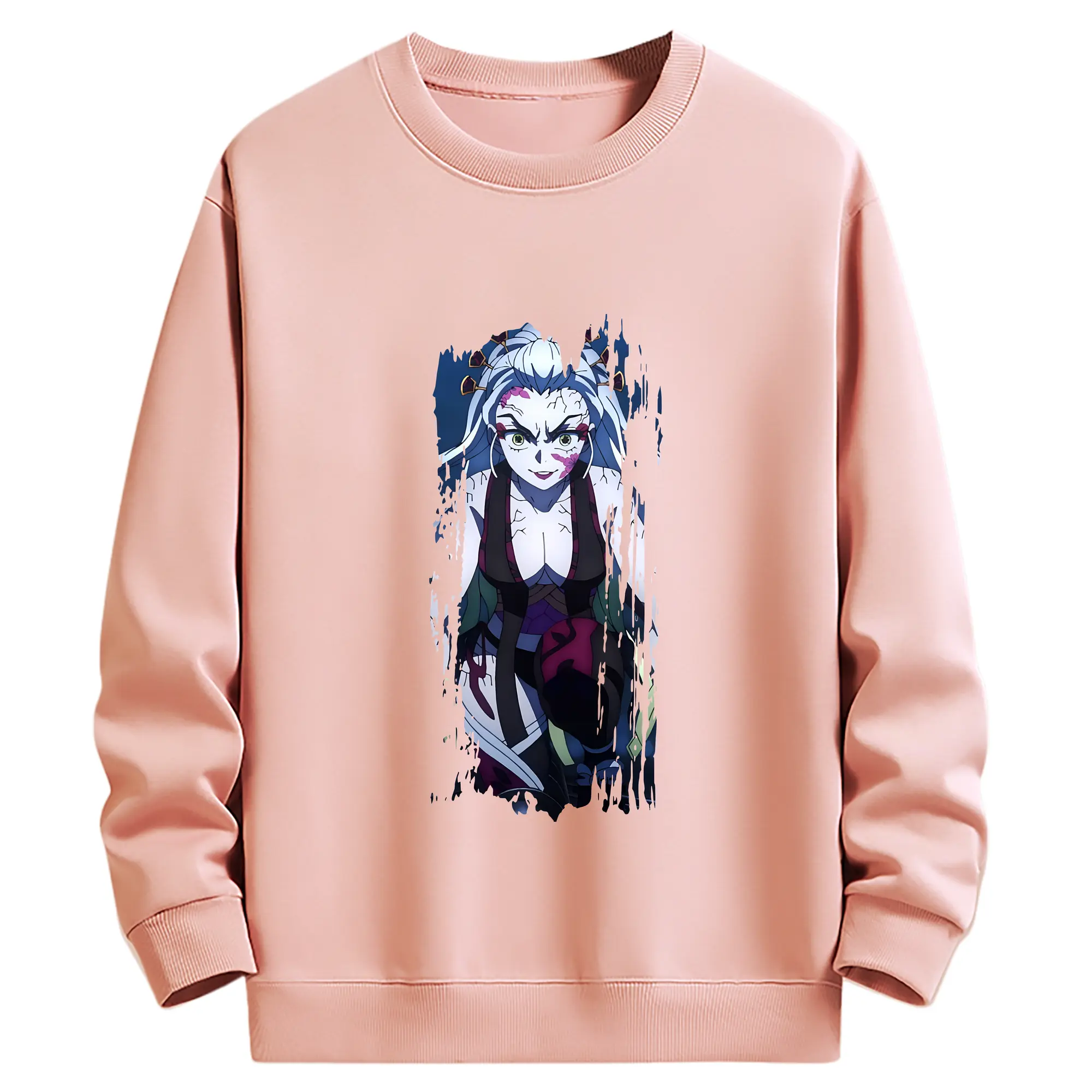 鬼滅の刃 グッズ,堕姫 - 薄手 クルーネック スウェット 裏毛260g · ポリエステル 春秋向け カジュアル 男女兼用 · トレーナー デイリー スポーツ 散歩に最適