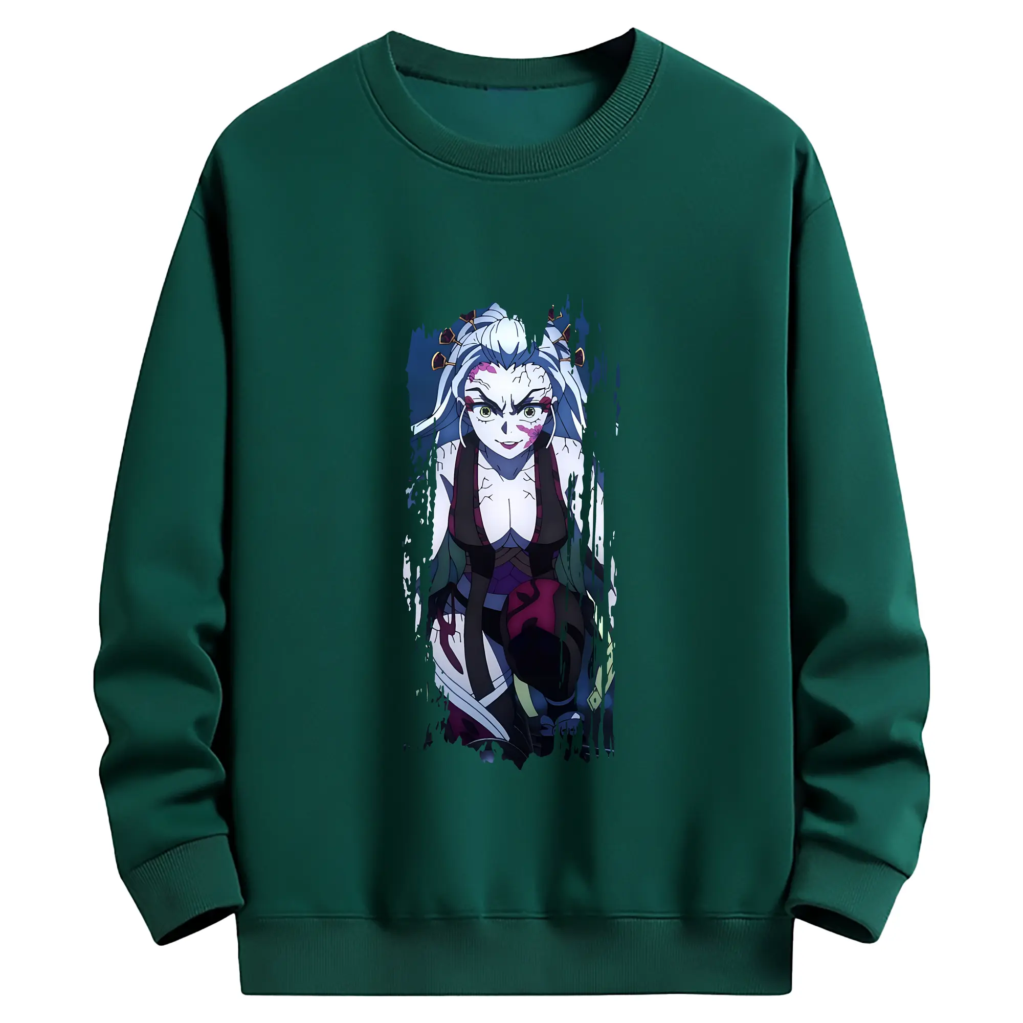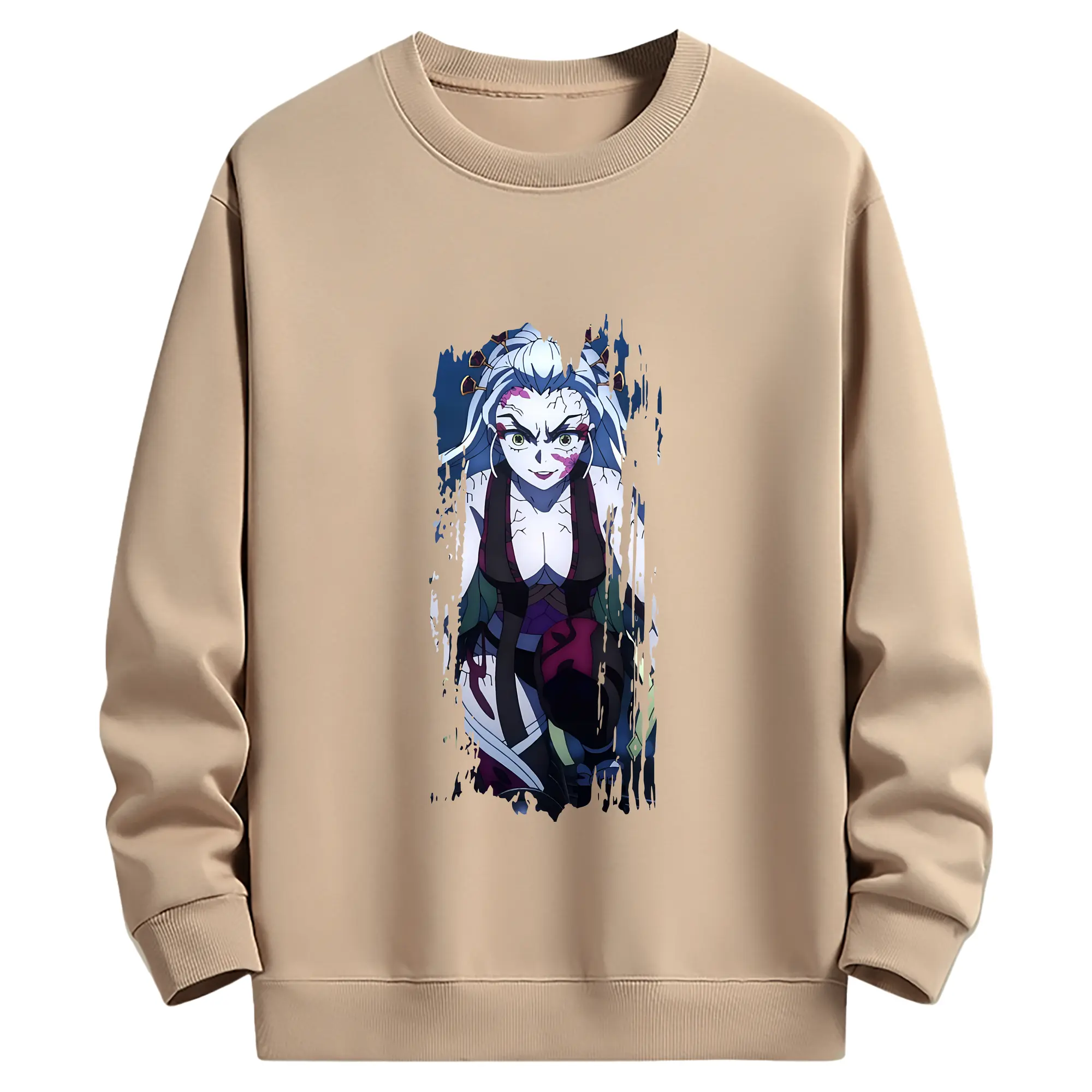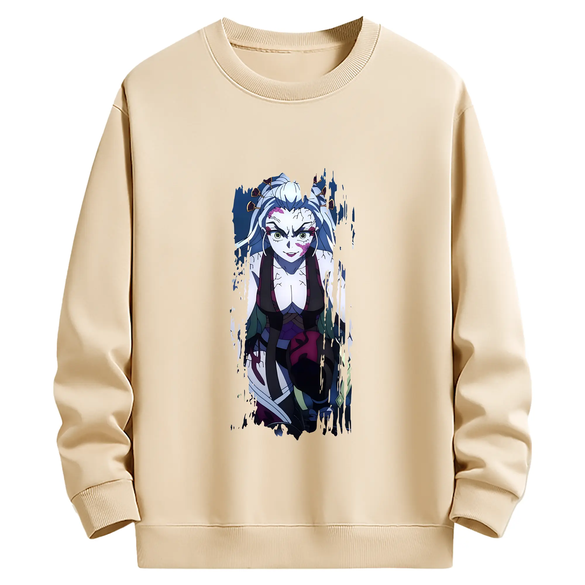 鬼滅の刃 グッズ,堕姫 - 薄手 クルーネック スウェット 裏毛260g · ポリエステル 春秋向け カジュアル 男女兼用 · トレーナー デイリー スポーツ 散歩に最適