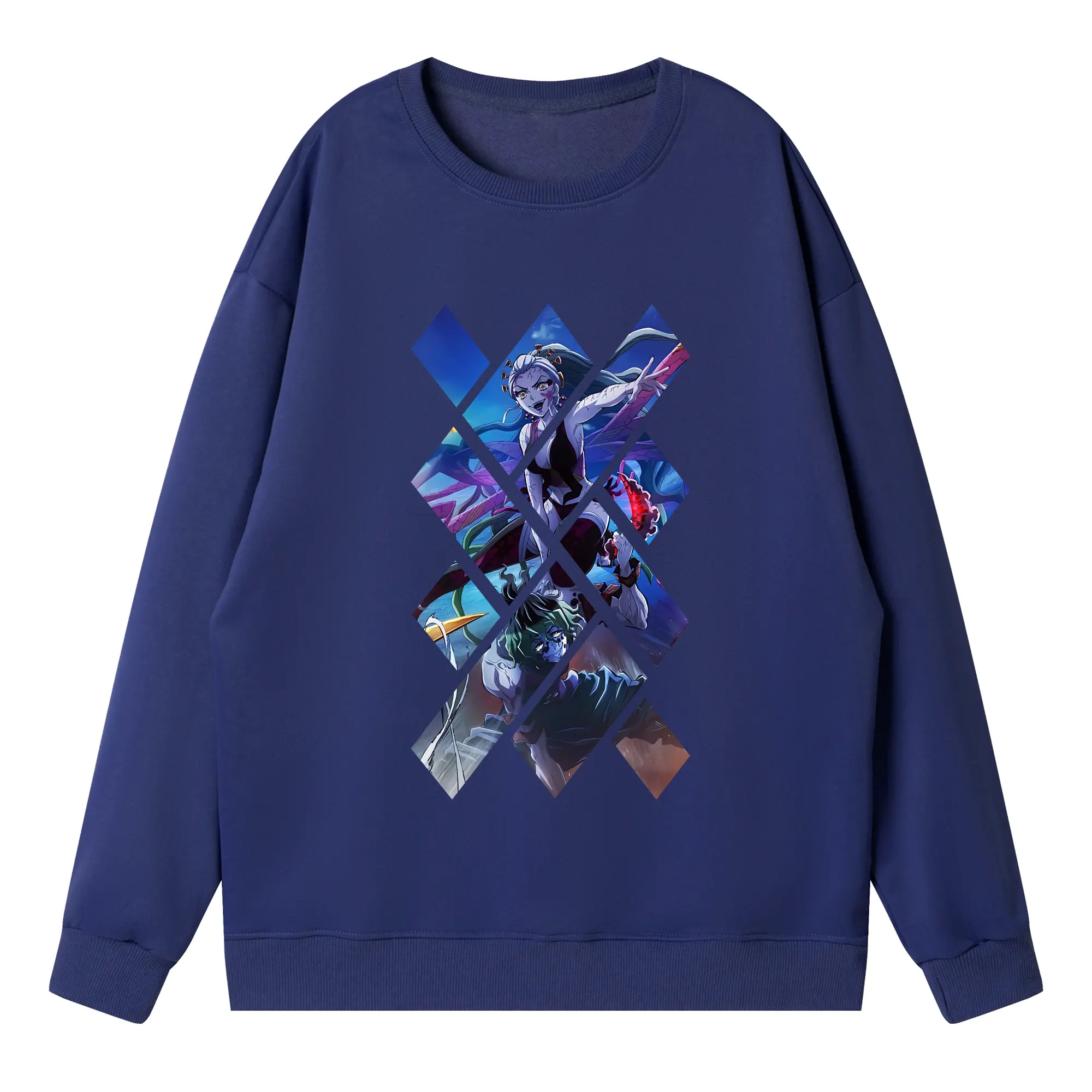 鬼滅の刃 グッズ,堕姫 - 高品質 クルーネック スウェット ・ コットン59% ポリエステル41% ・ ユニセックス 長袖 トレーナー ・ カジュアル デイリー スポーツ 散歩用