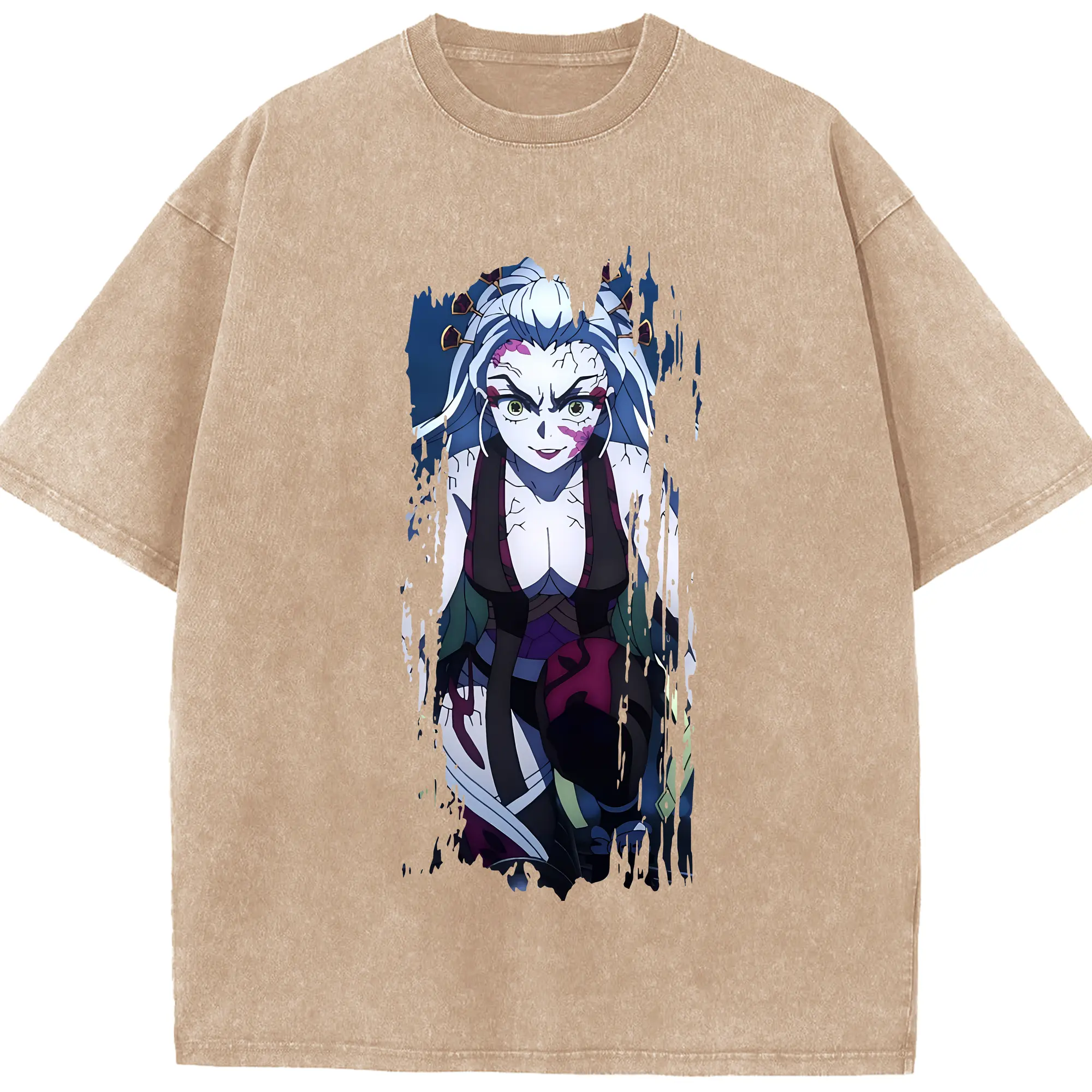 鬼滅の刃 グッズ,堕姫 - 綿100% 半袖Tシャツ ・ フロントプリント ・ 快適 通気性 ・ 日常使い 散歩 スポーツ用