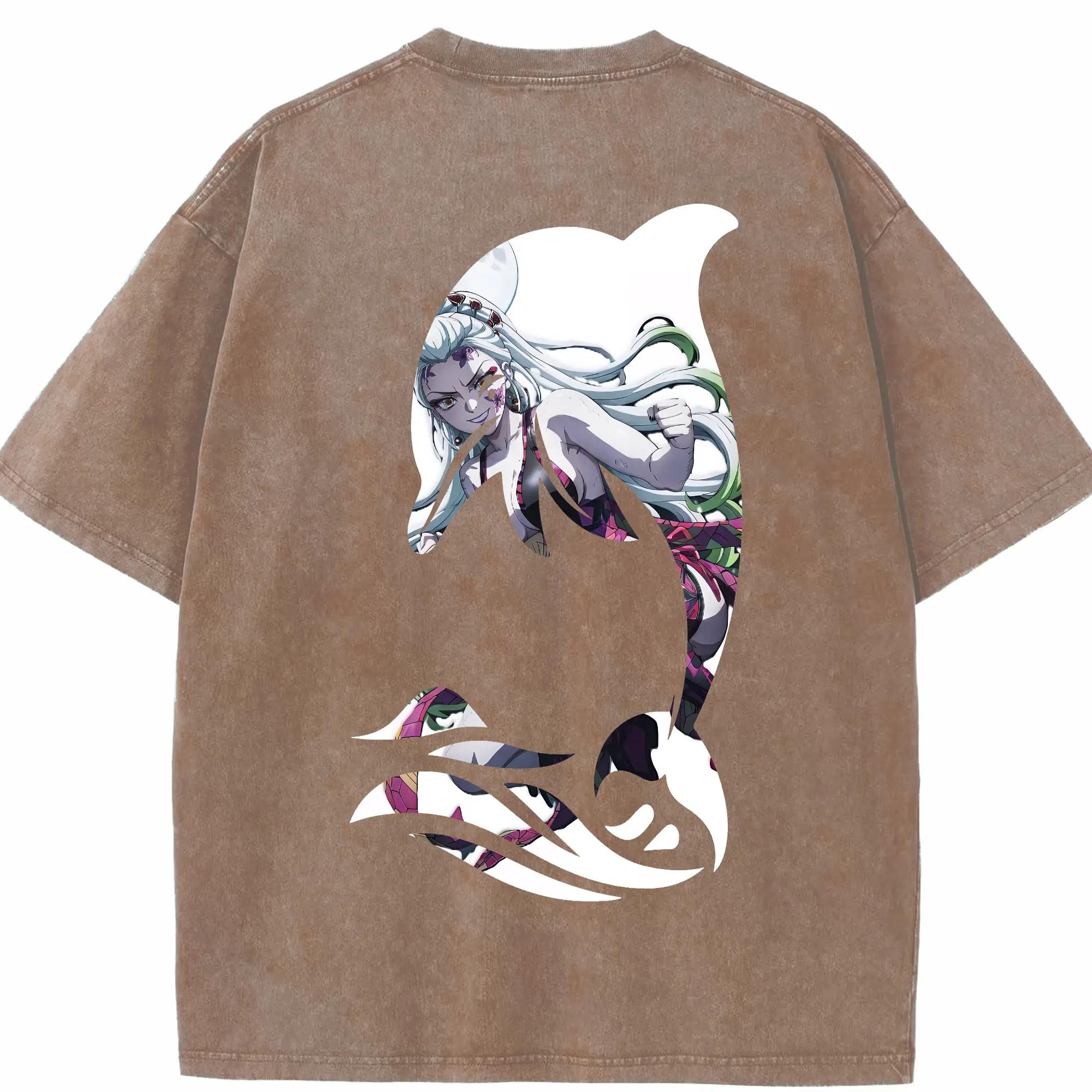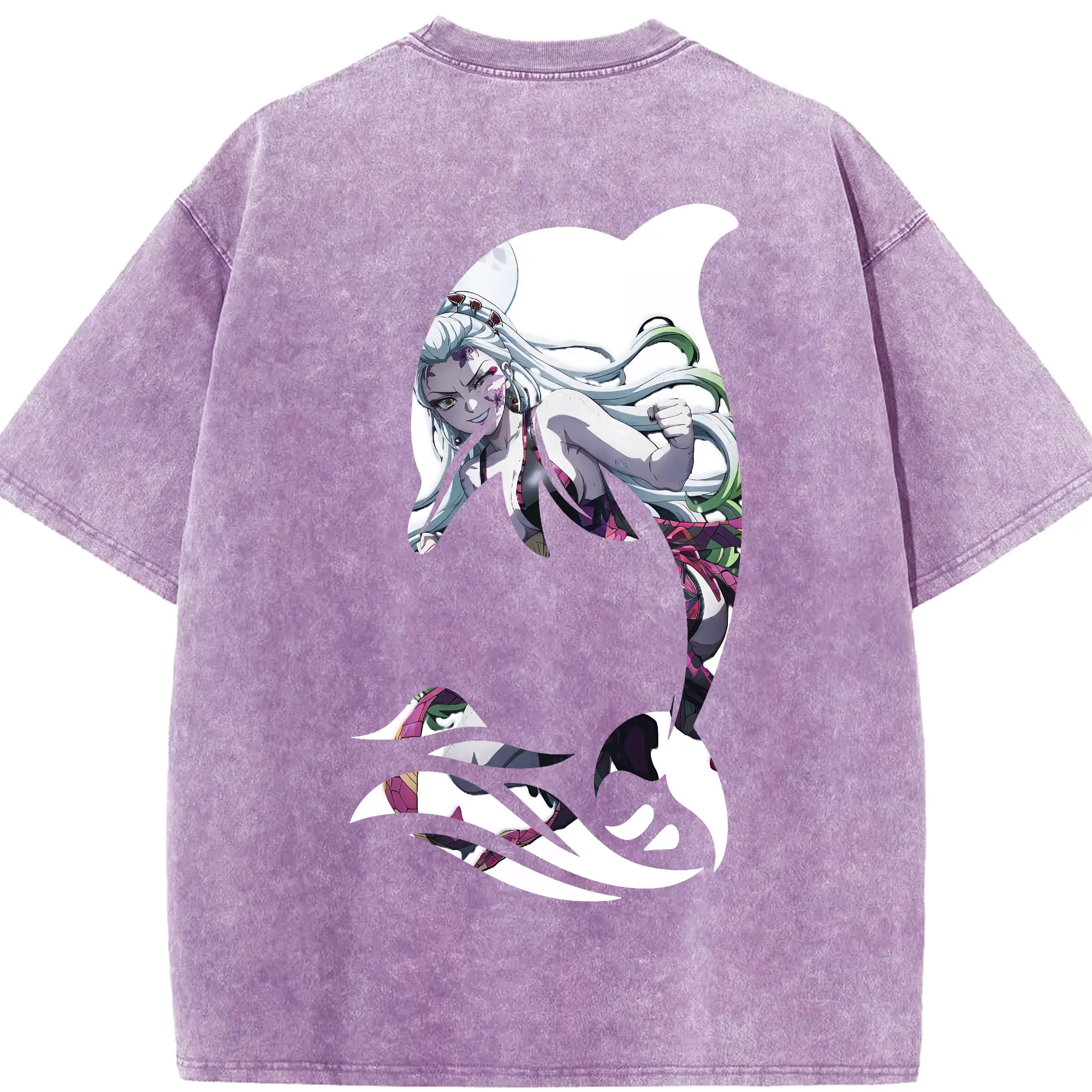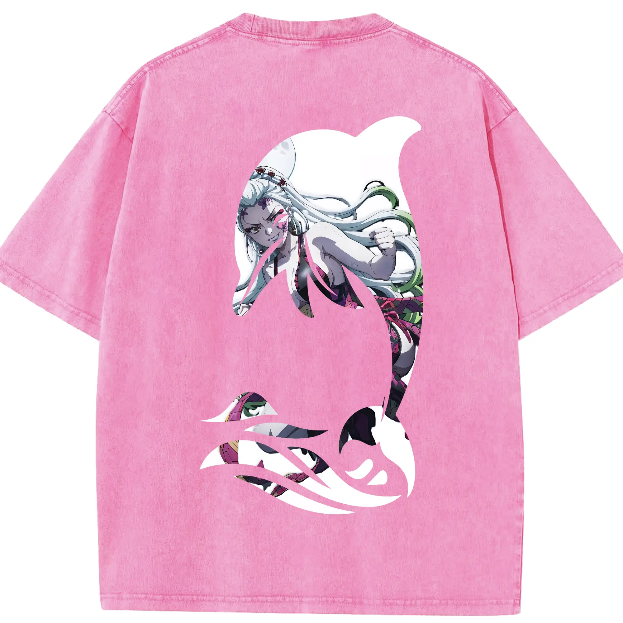 鬼滅の刃 グッズ,堕姫 - 綿100% 半袖Tシャツ ・ バックプリント ・ 快適 通気性 ・ 日常使い 散歩 スポーツ用
