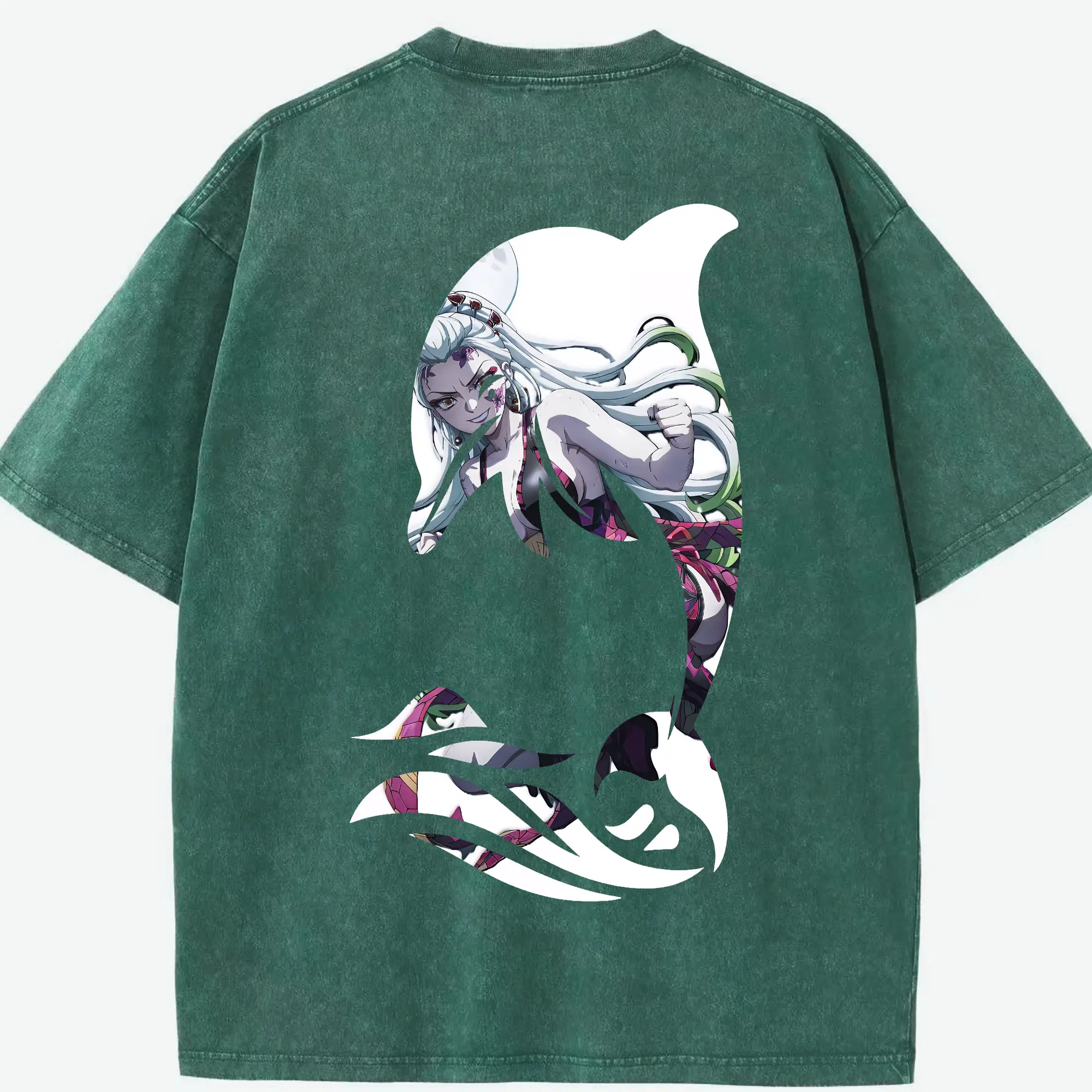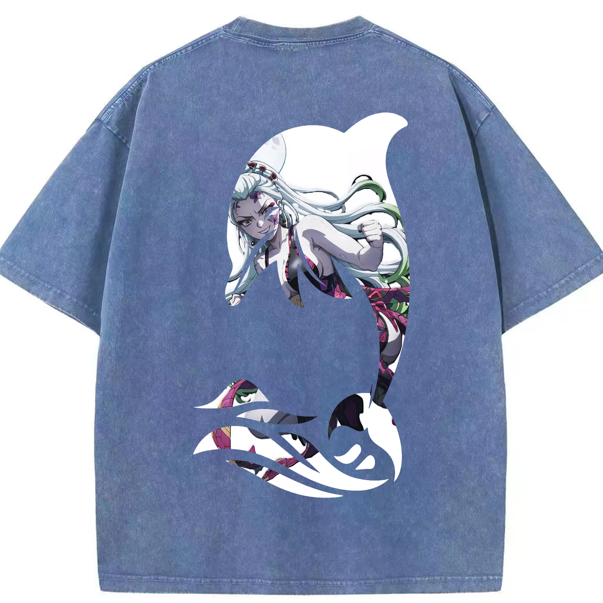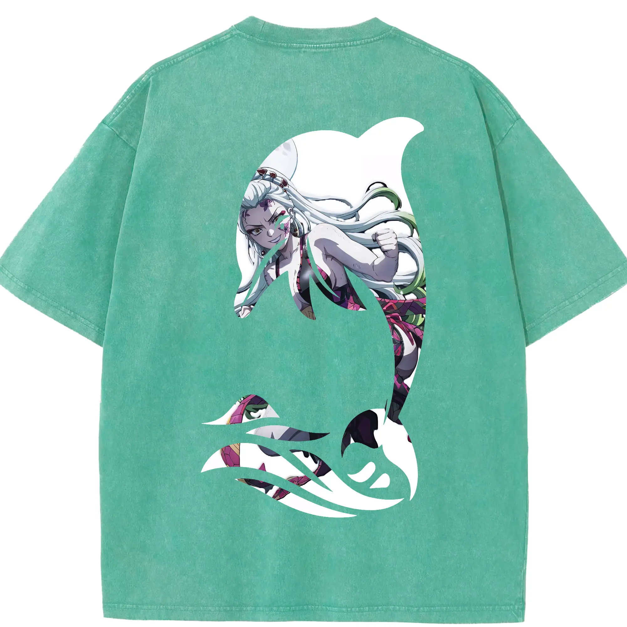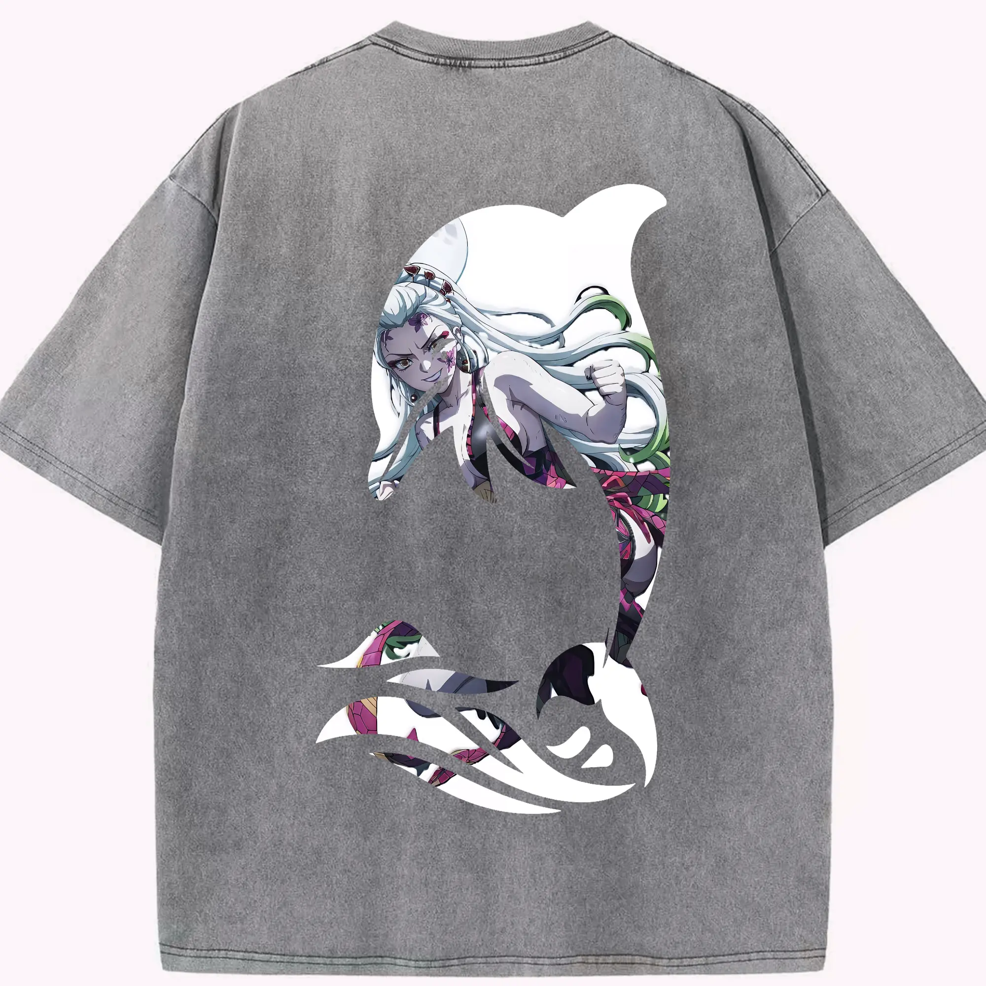 鬼滅の刃 グッズ,堕姫 - 綿100% 半袖Tシャツ ・ バックプリント ・ 快適 通気性 ・ 日常使い 散歩 スポーツ用