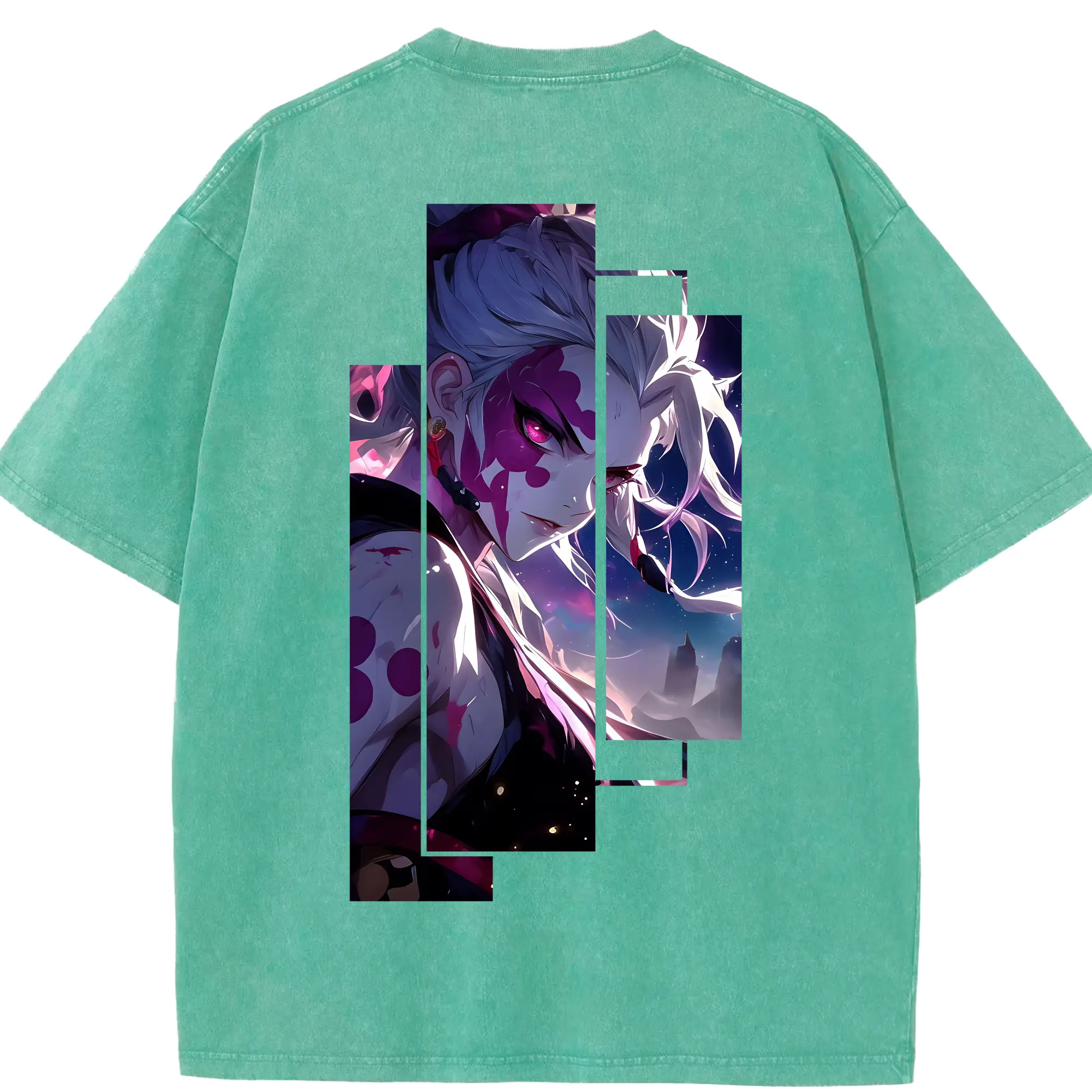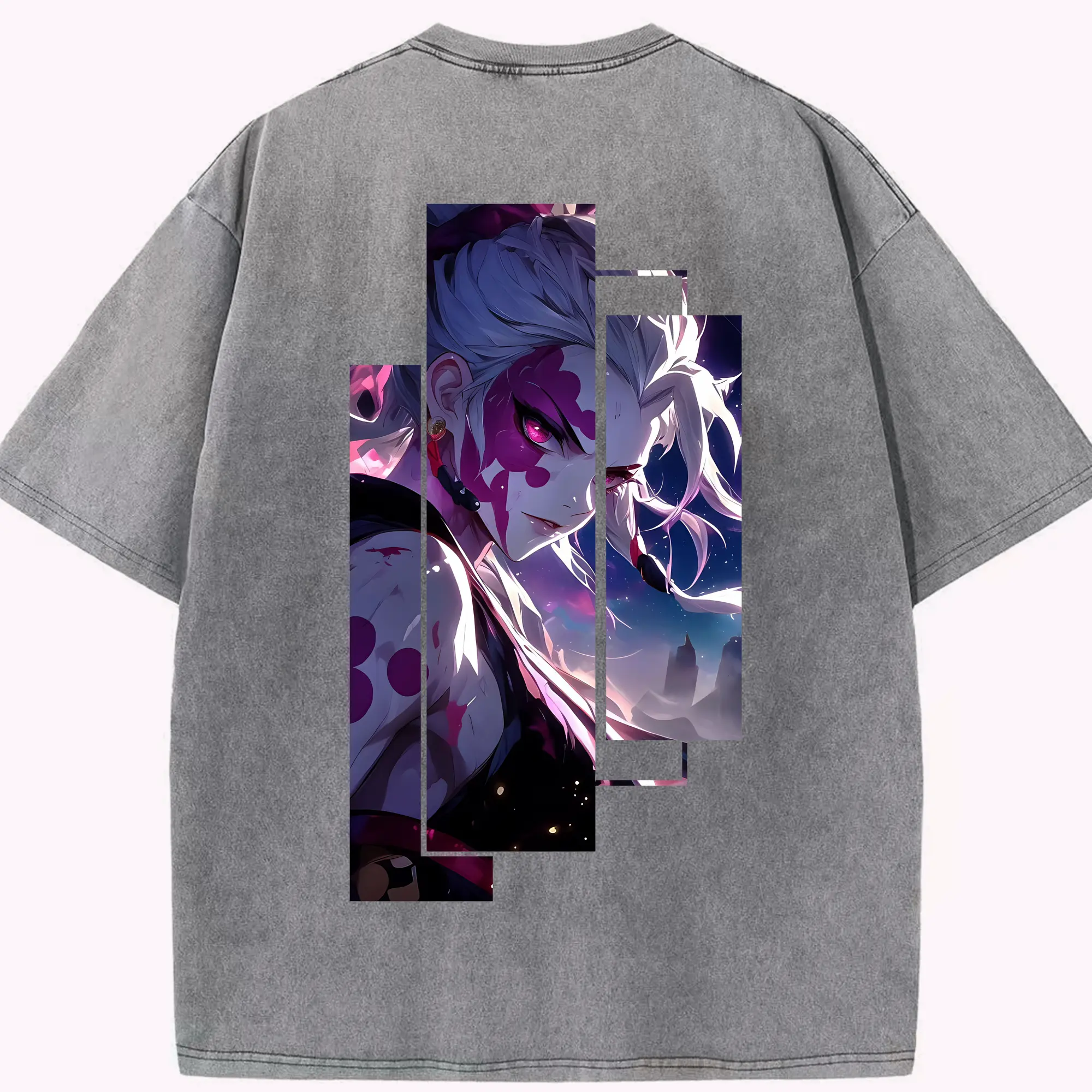 鬼滅の刃 グッズ,堕姫 - 綿100% 半袖Tシャツ ・ バックプリント ・ 快適 通気性 ・ 日常使い 散歩 スポーツ用