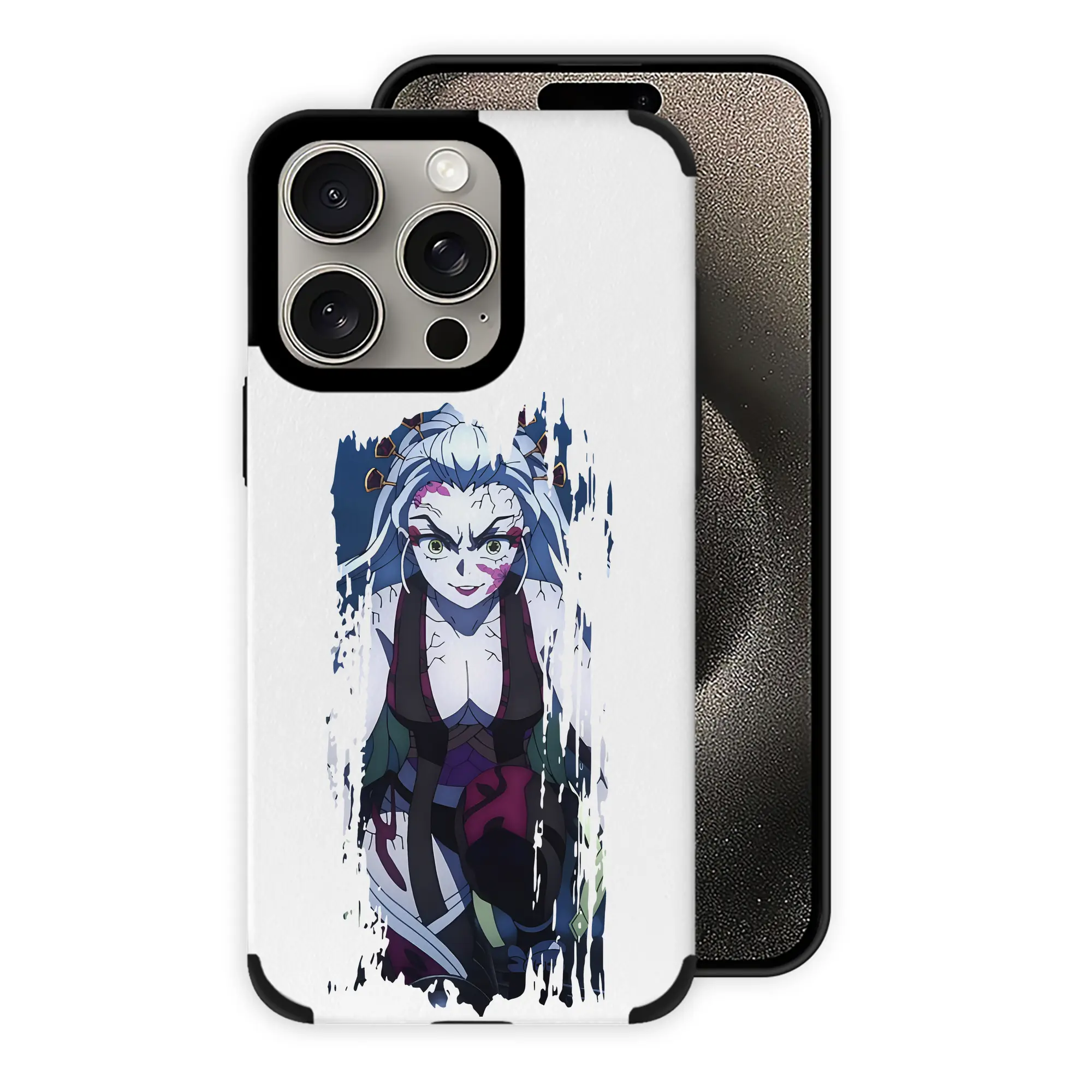 鬼滅の刃 グッズ,堕姫 - IPhone15ProMax対応 ・ PUレザースマホケース ・ 耐衝撃 ・ 黄変防止 ・ 360度全面保護 ・ 柔らか手触り ・ 3D立体ボタン