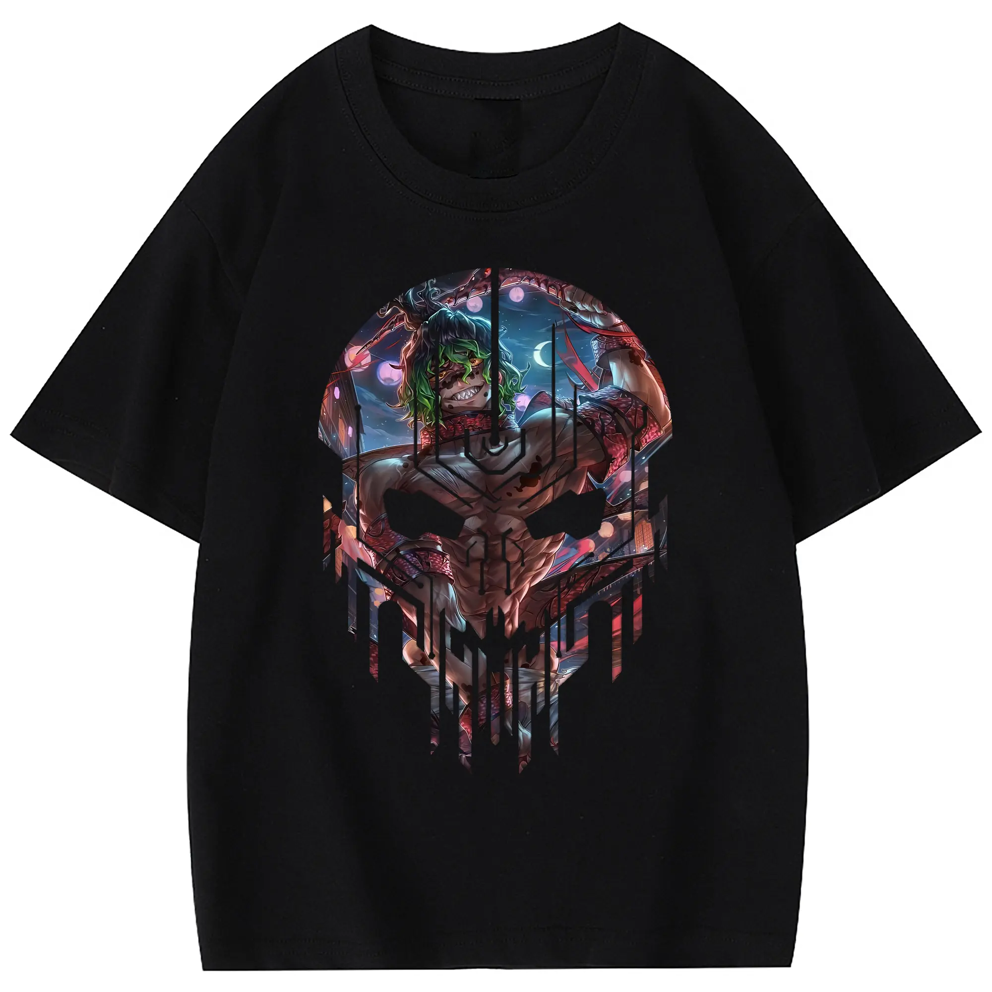 鬼滅の刃 グッズ,妓夫太郎 - 綿100% 半袖Tシャツ ・ フロントプリント ・ 快適 通気性 ・ 日常使い 散歩 スポーツ用