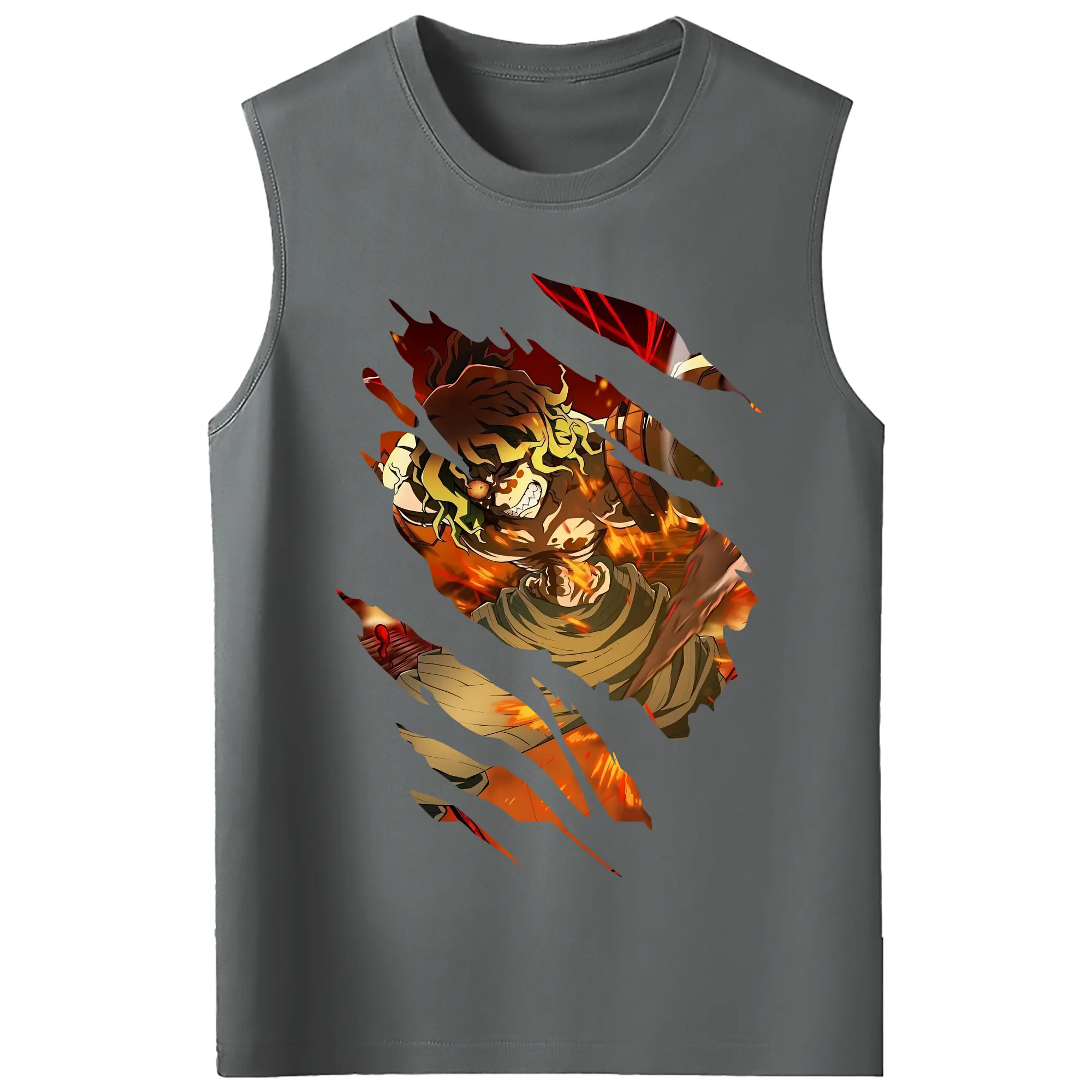 鬼滅の刃 グッズ,妓夫太郎 - コットン100% タンクトップ ・ フロントプリント ・ タイトフィット ・ 快適 通気性 ・ スポーツ カジュアル 散歩用