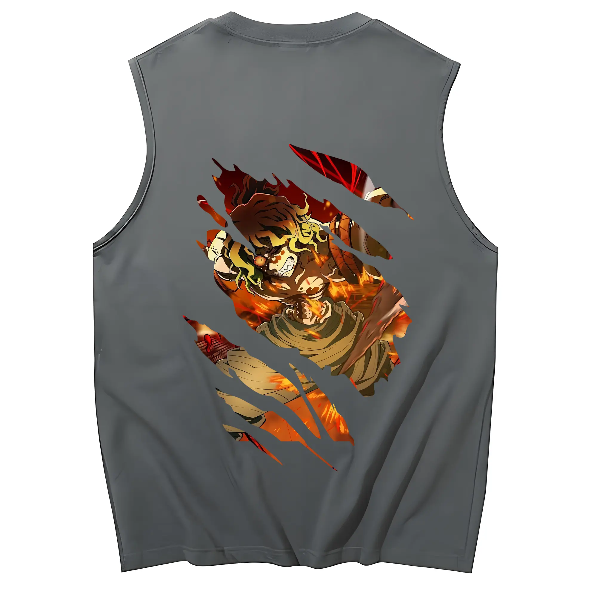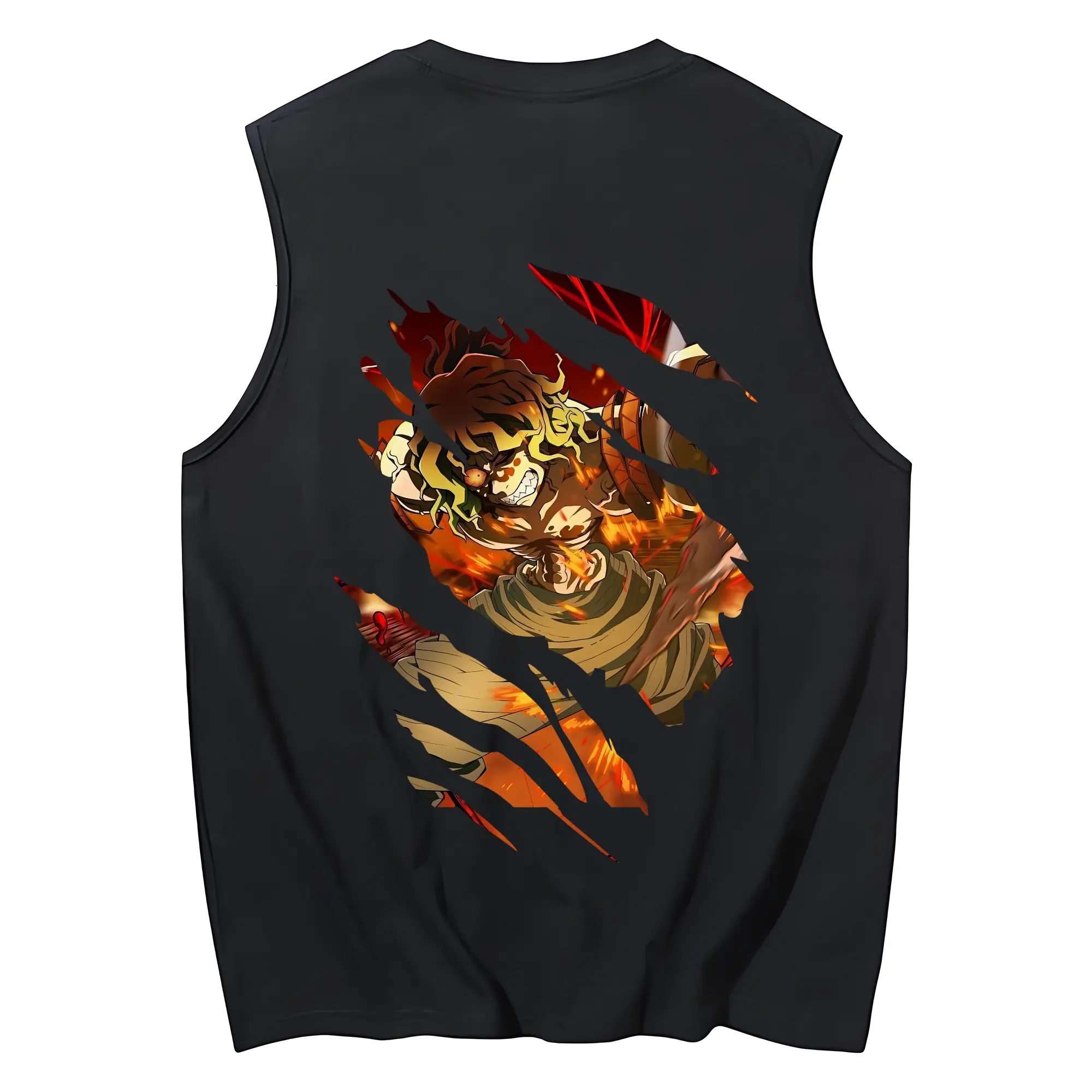 鬼滅の刃 グッズ,妓夫太郎 - コットン100% タンクトップ ・ 背面プリント ・ タイトシルエット ・ 快適 通気性 ・ スポーツ カジュアル 散歩用