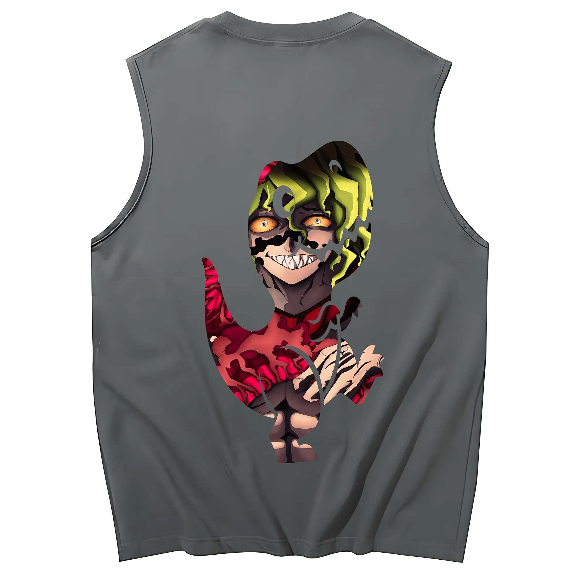 鬼滅の刃 グッズ,妓夫太郎 - コットン100% タンクトップ ・ 背面プリント ・ タイトシルエット ・ 快適 通気性 ・ スポーツ カジュアル 散歩用