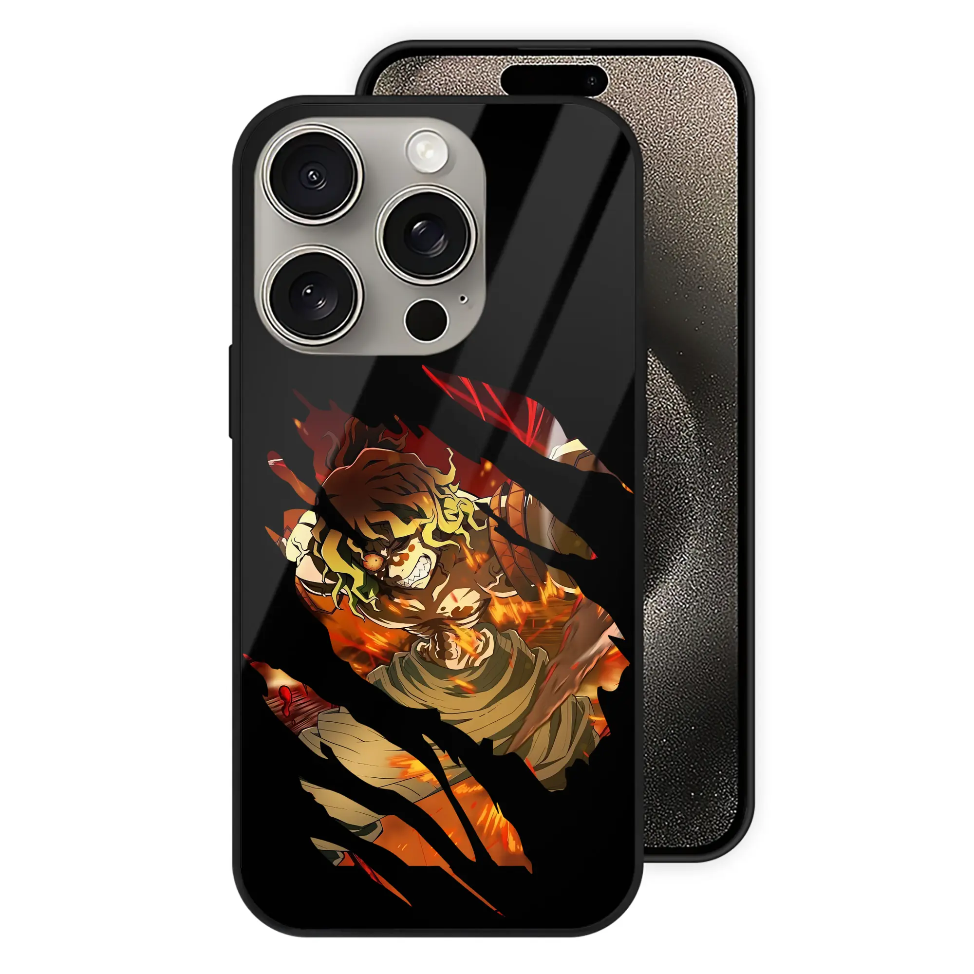 鬼滅の刃 グッズ,妓夫太郎 - IPhone15Pro対応 ・ スマホケース ・ 背面ガラス ・ TPU+強化ガラス ・ 耐衝撃 ・ 黄変防止 ・ ワイヤレス充電対応 ・ 3D立体ボタン