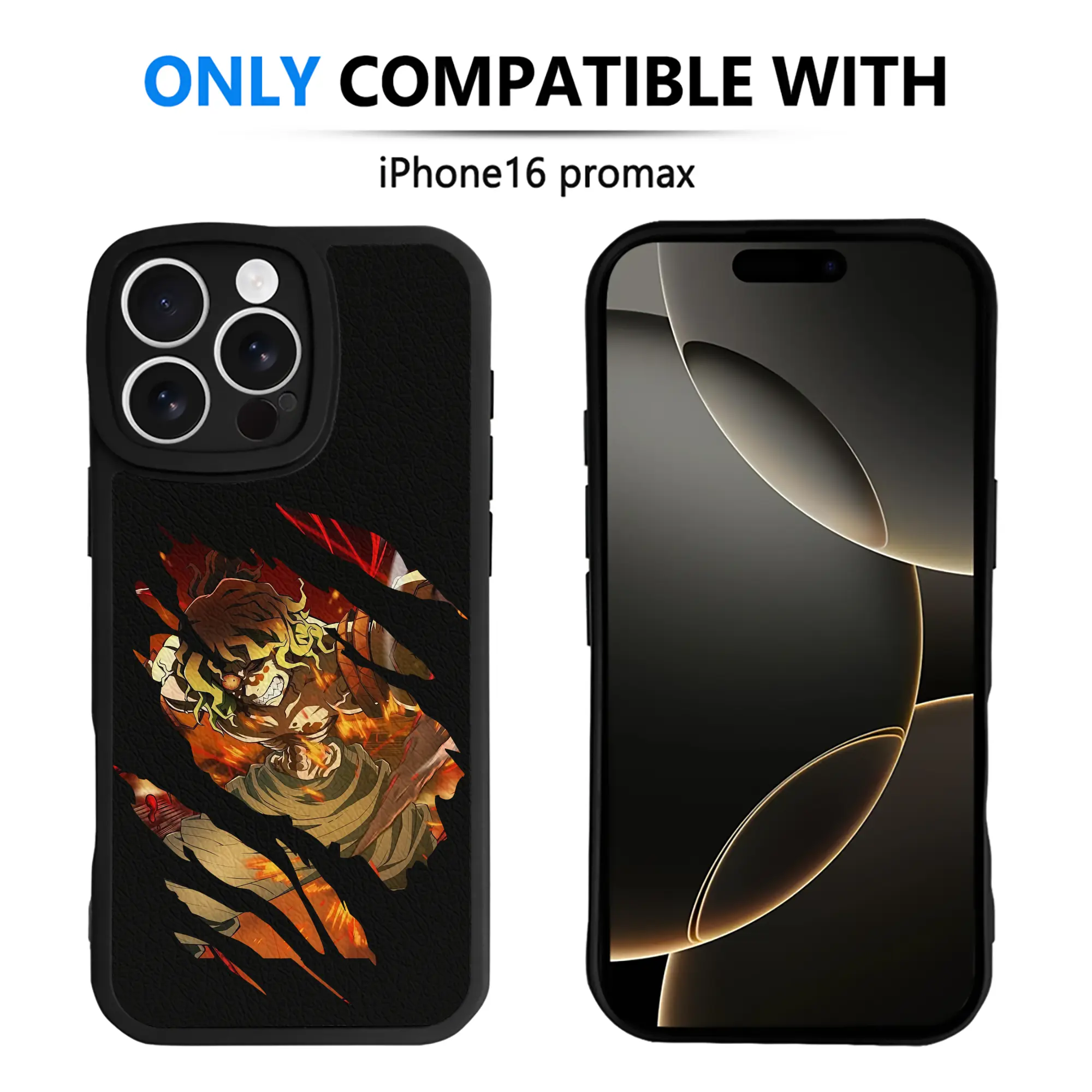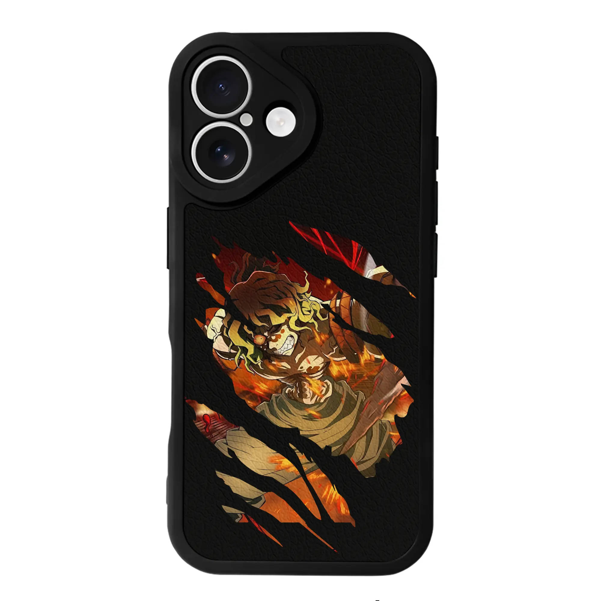 鬼滅の刃 グッズ,妓夫太郎 - IPhone 16シリーズ対応 ・ シリコンスマホケース ・ レザー調 ・ 高精度フィット ・ 耐衝撃 ・ ワイヤレス充電対応 ・ 精密カット