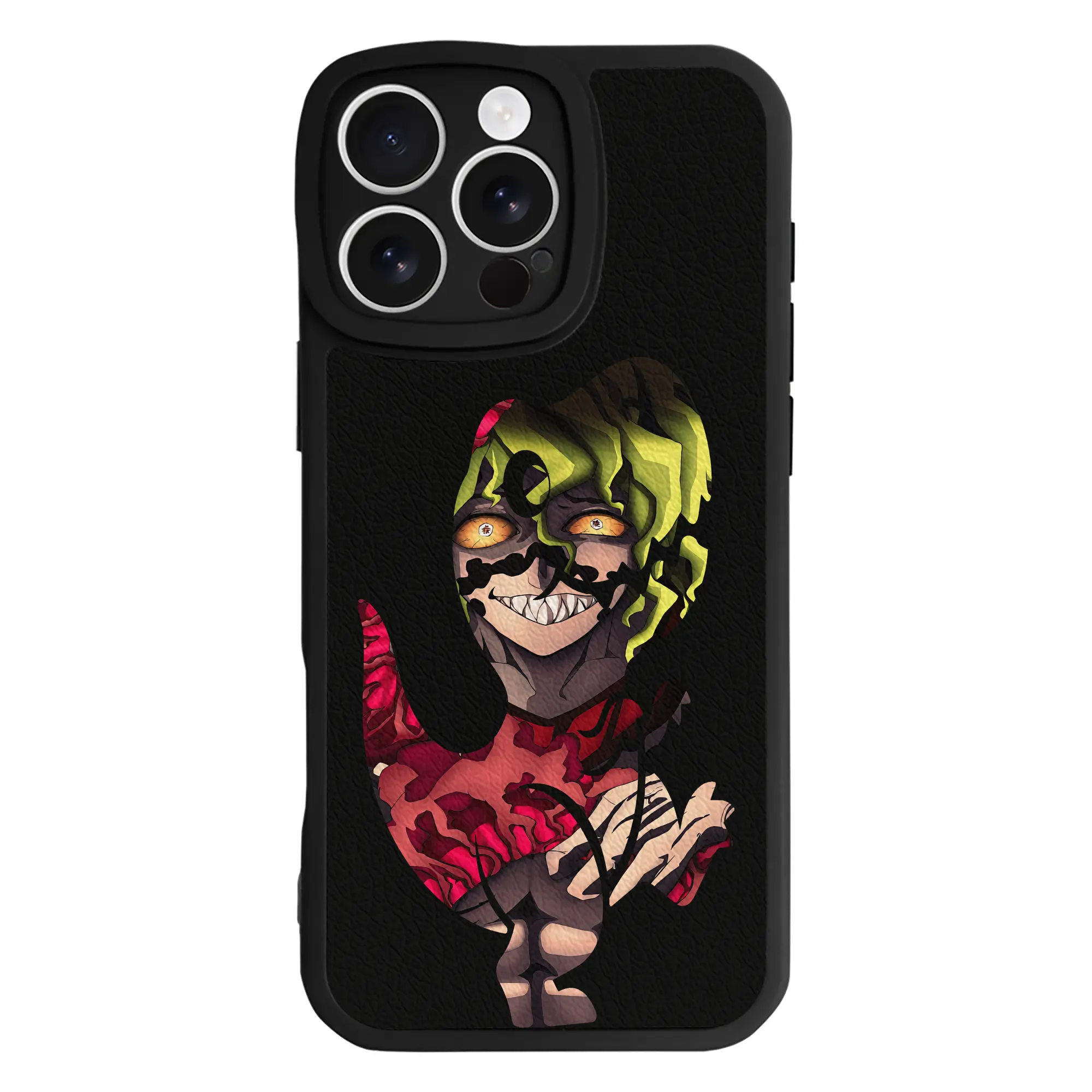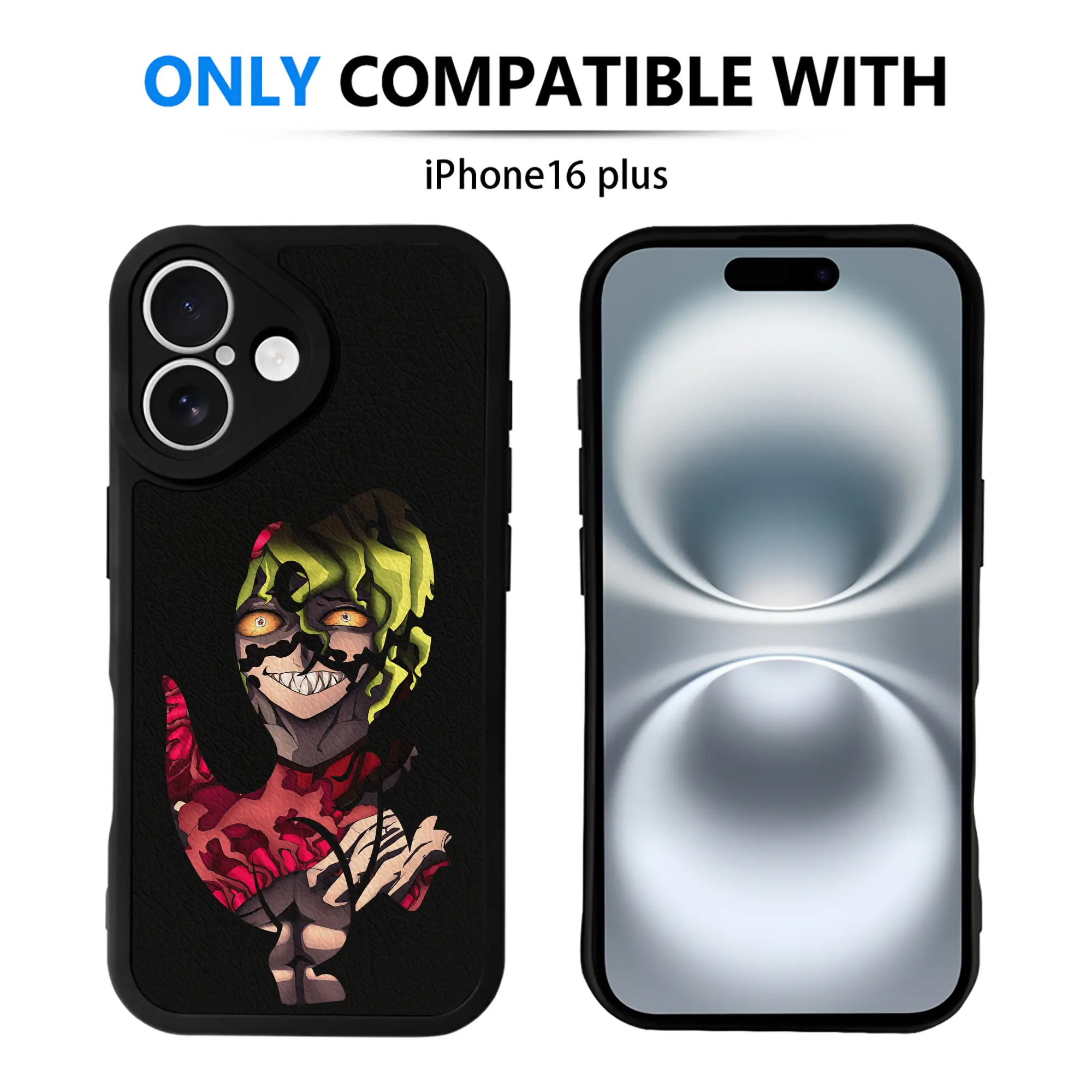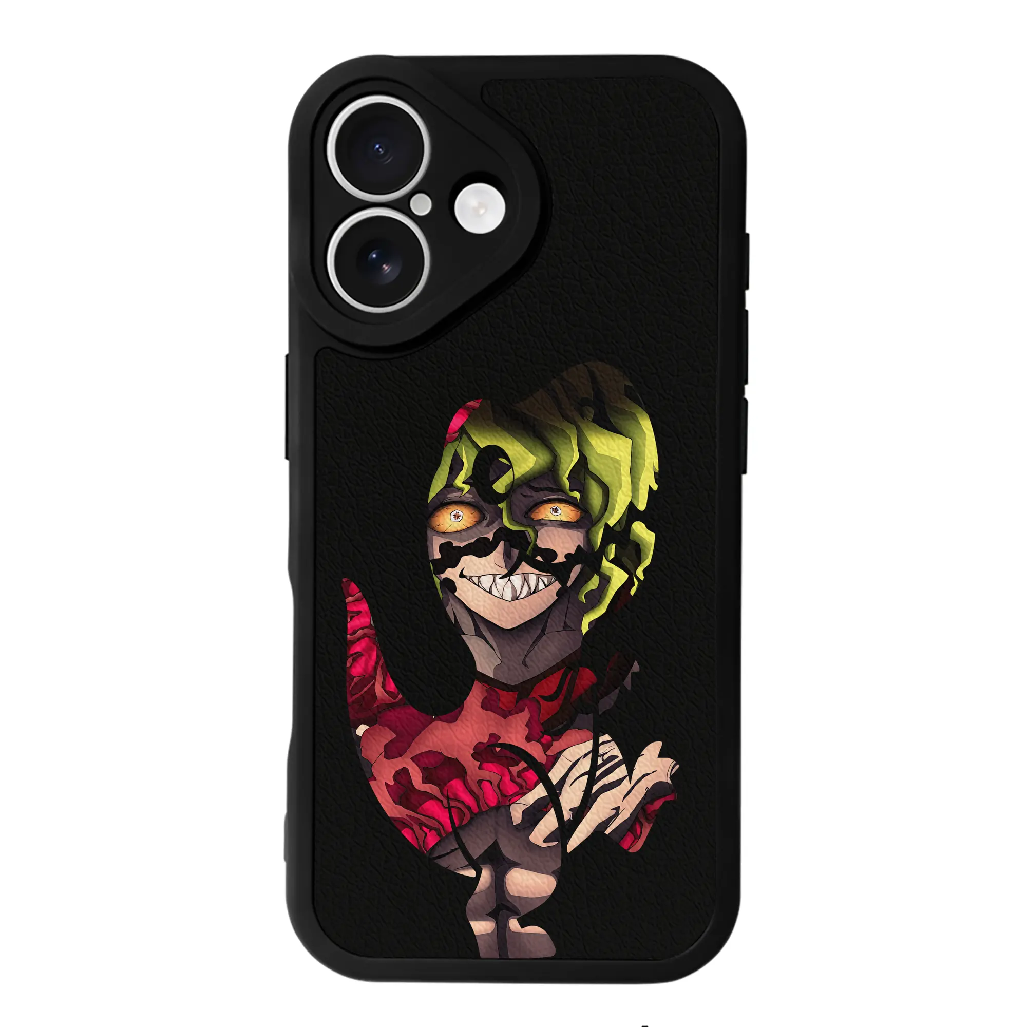 鬼滅の刃 グッズ,妓夫太郎 - IPhone 16シリーズ対応 ・ シリコンスマホケース ・ レザー調 ・ 高精度フィット ・ 耐衝撃 ・ ワイヤレス充電対応 ・ 精密カット