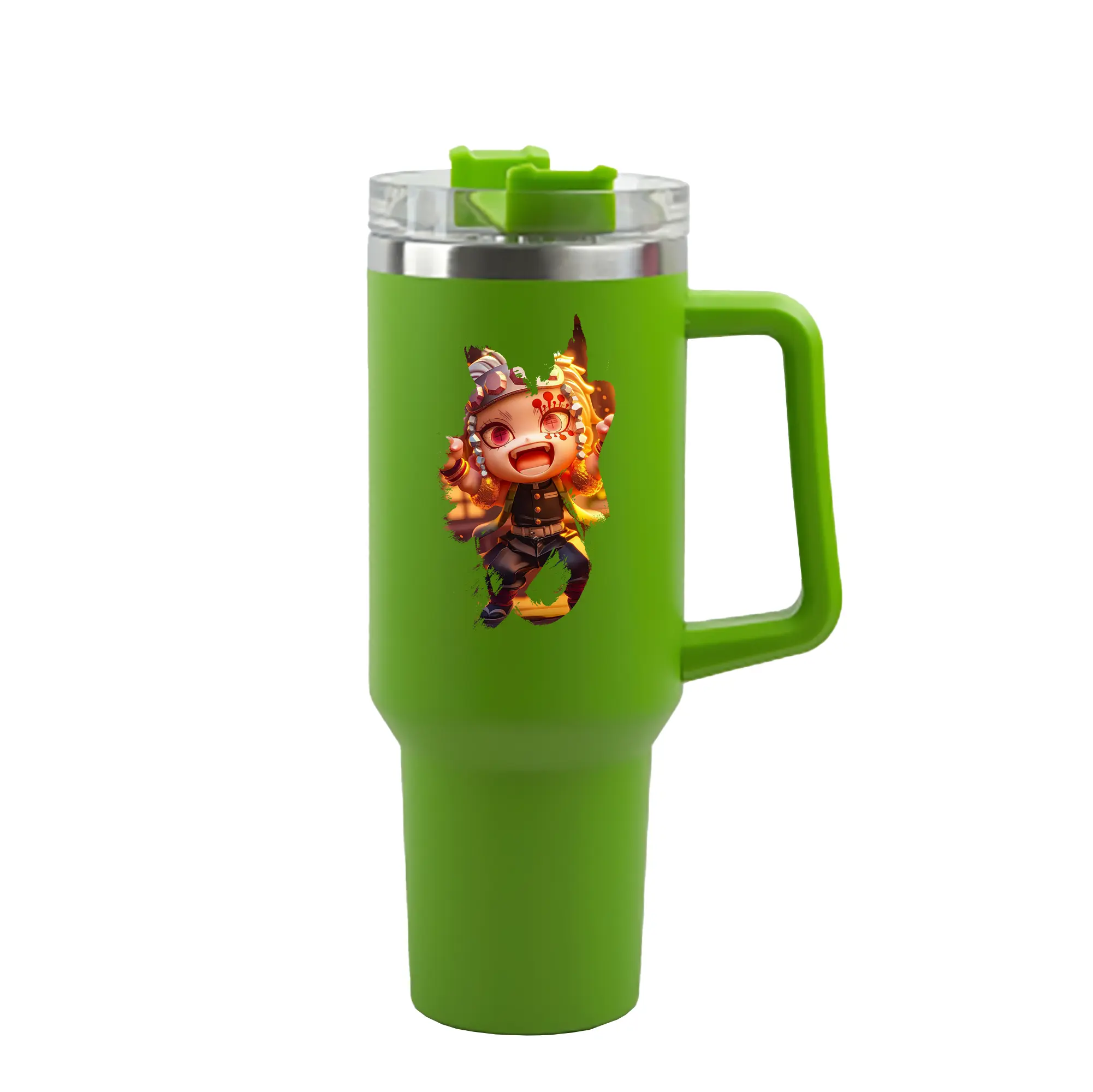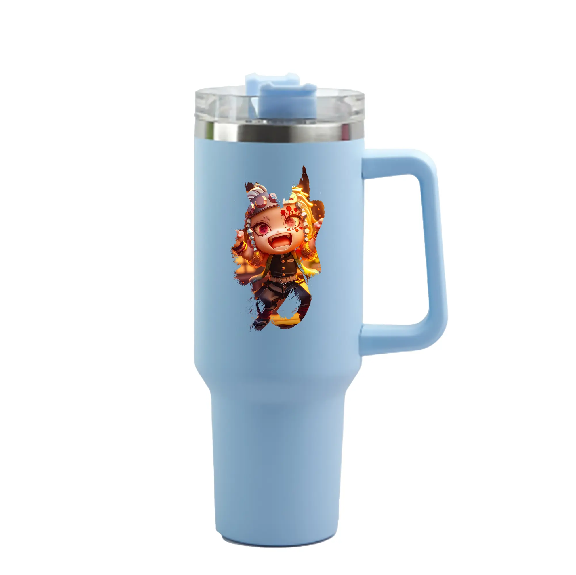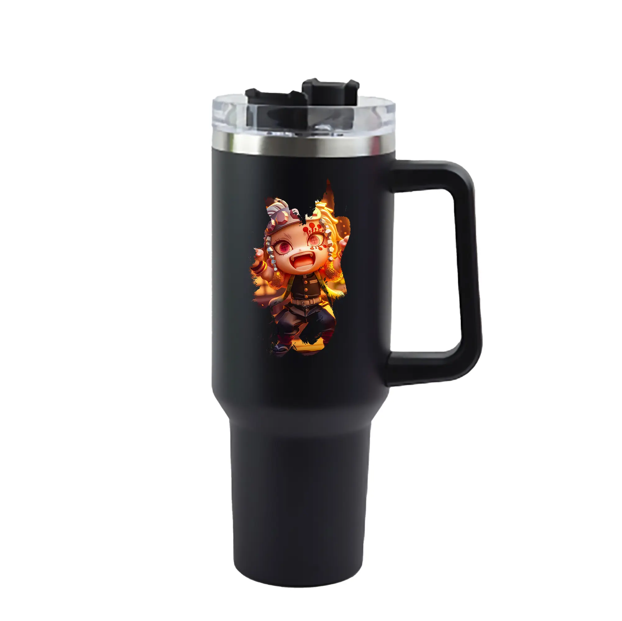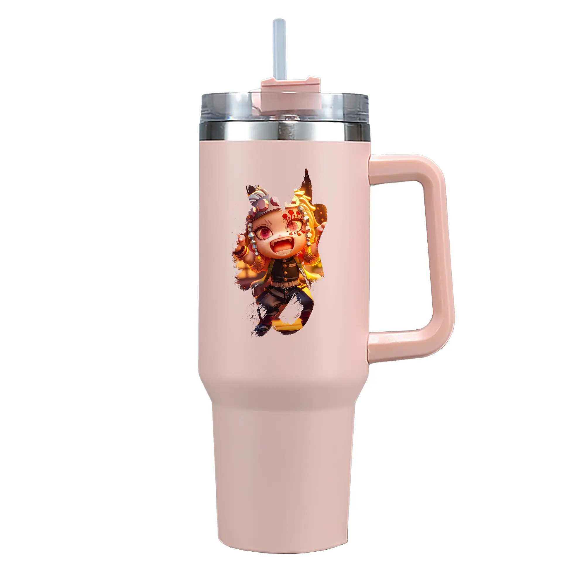 鬼滅の刃 グッズ,宇髄 天元 - 1200mL 車用タンブラー ・ クリスタルステッカー ・ 304ステンレス 内側 ・ 201ステンレス 外側 ・ 保温 保冷 ・ ハンドル&ストロー付き ・ 通勤 ドライブ アウトドア用