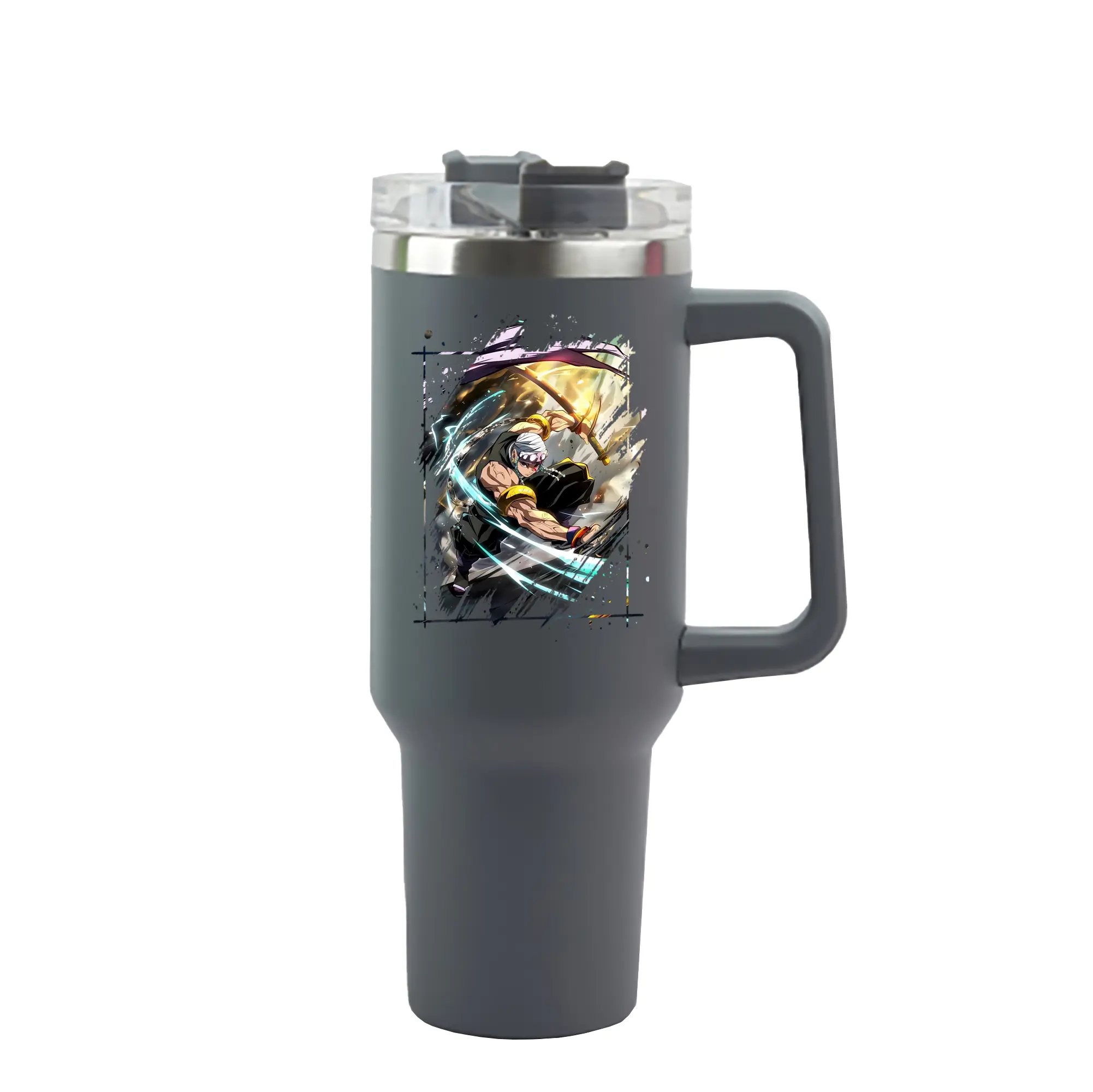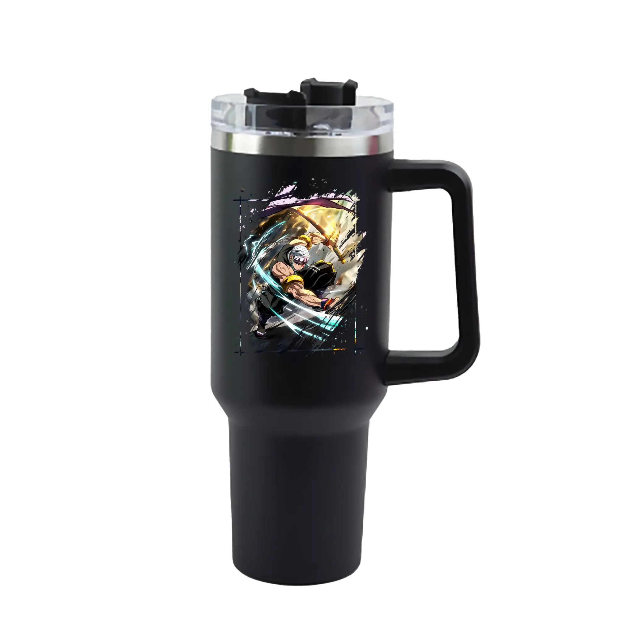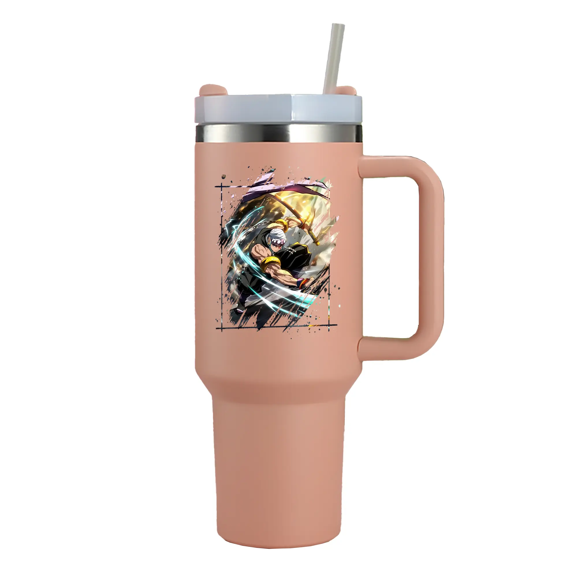 鬼滅の刃 グッズ,宇髄 天元 - 1200mL 車用タンブラー ・ クリスタルステッカー ・ 304ステンレス 内側 ・ 201ステンレス 外側 ・ 保温 保冷 ・ ハンドル&ストロー付き ・ 通勤 ドライブ アウトドア用