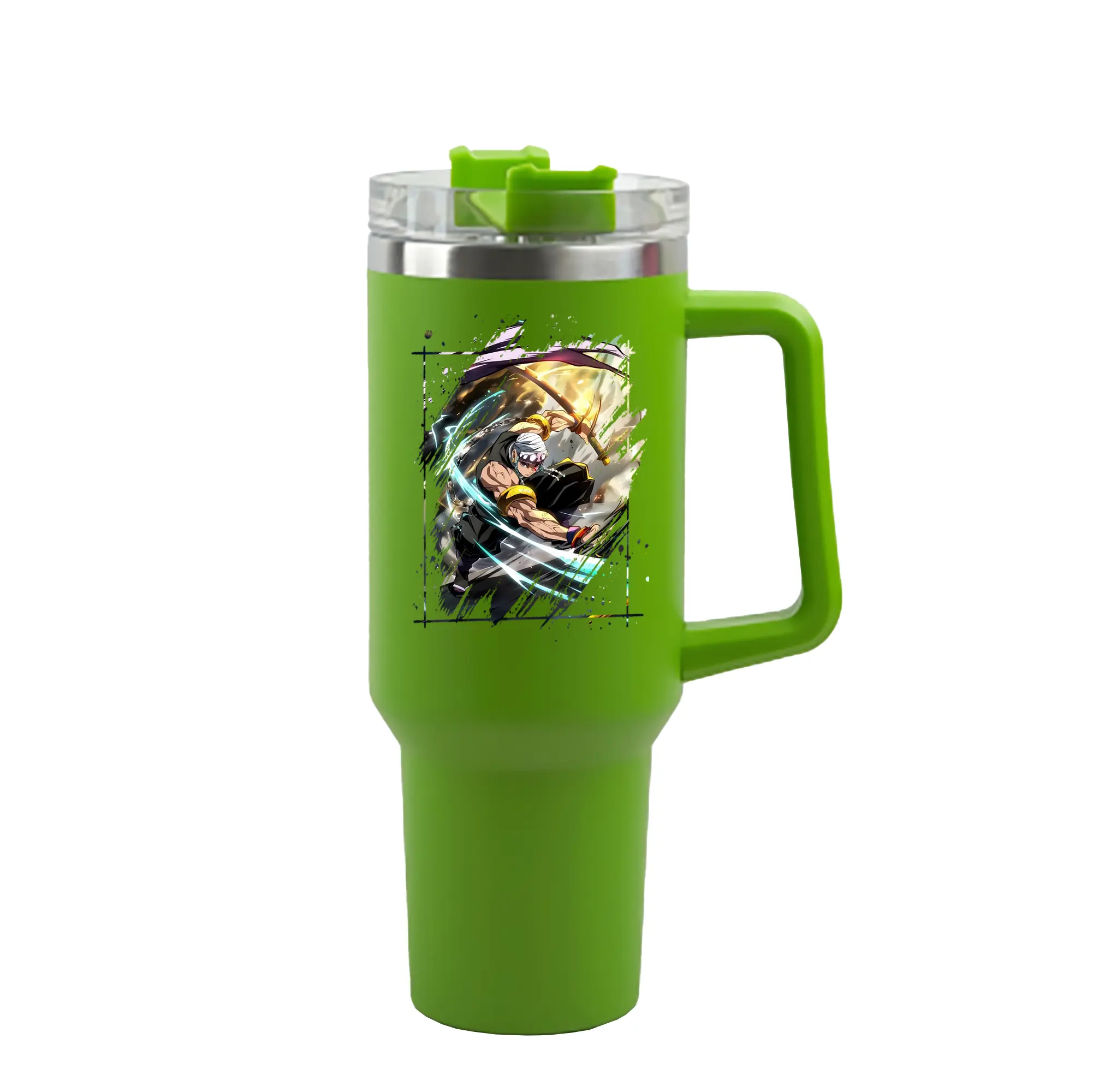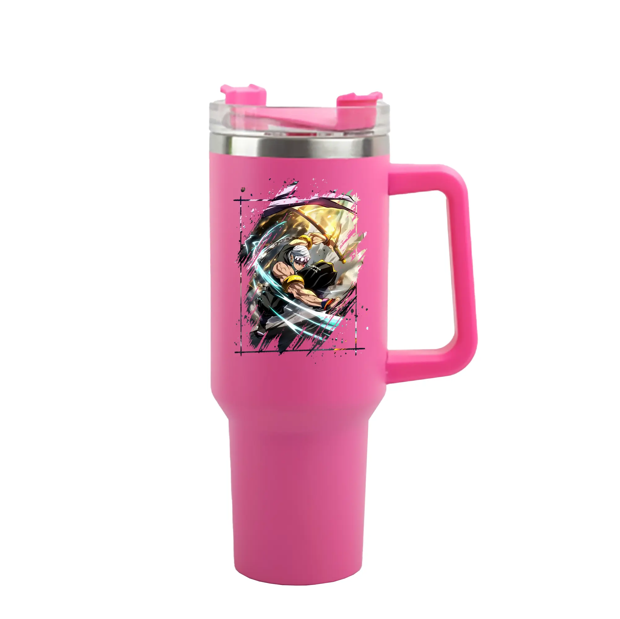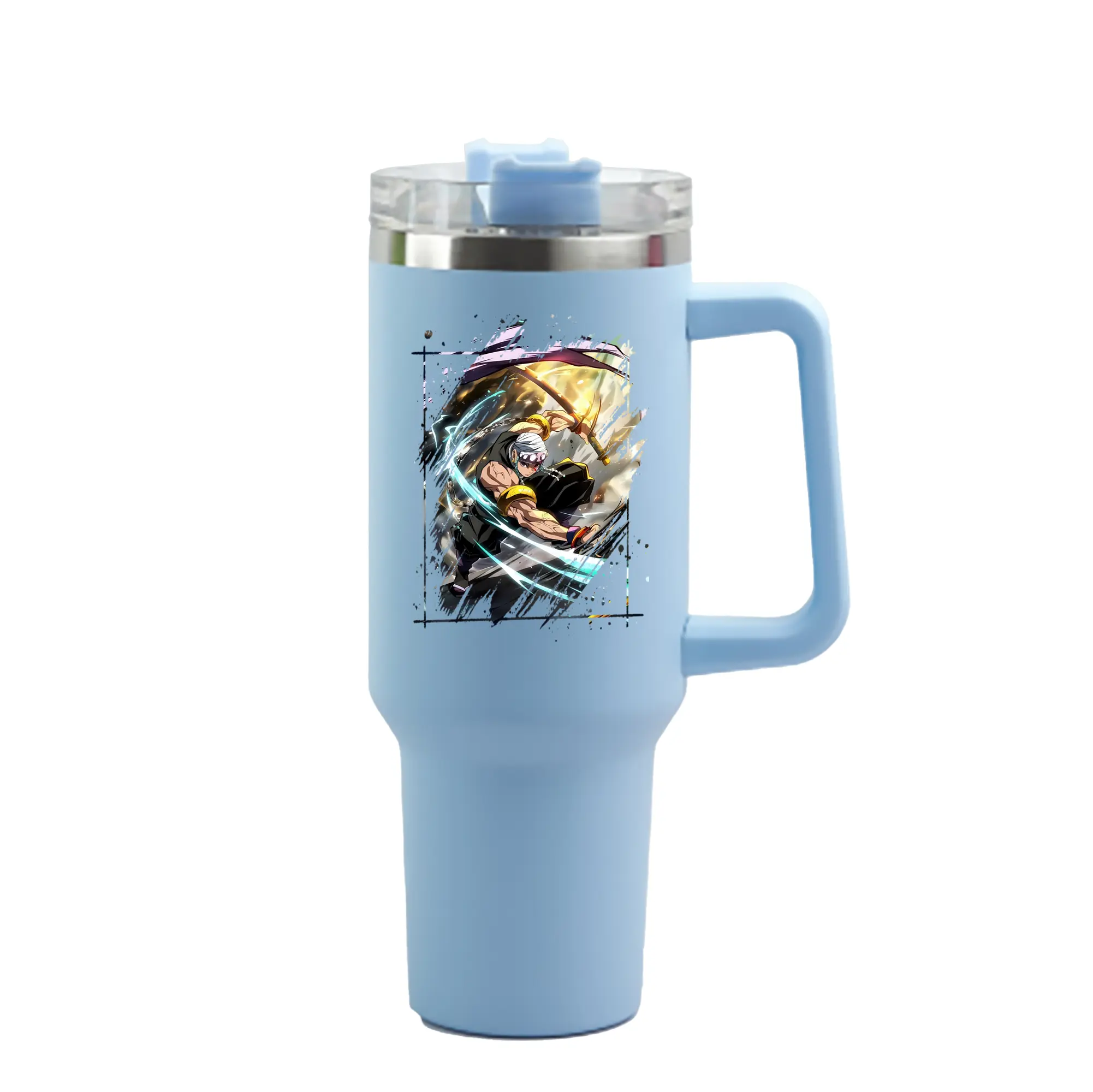 鬼滅の刃 グッズ,宇髄 天元 - 1200mL 車用タンブラー ・ クリスタルステッカー ・ 304ステンレス 内側 ・ 201ステンレス 外側 ・ 保温 保冷 ・ ハンドル&ストロー付き ・ 通勤 ドライブ アウトドア用