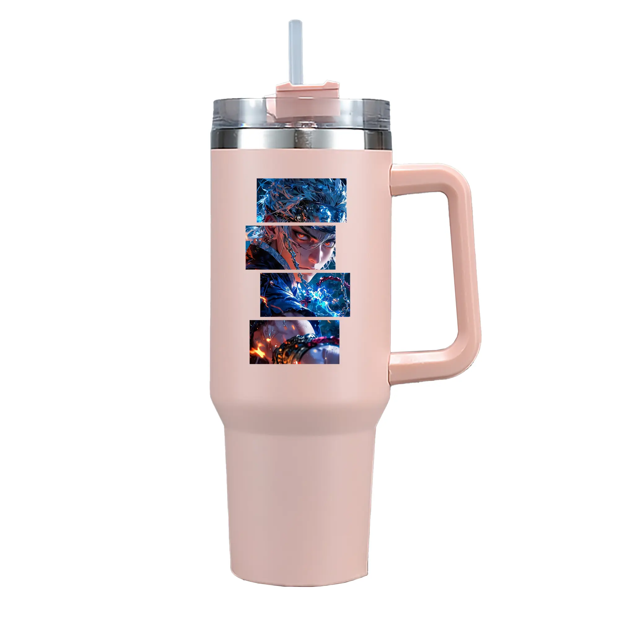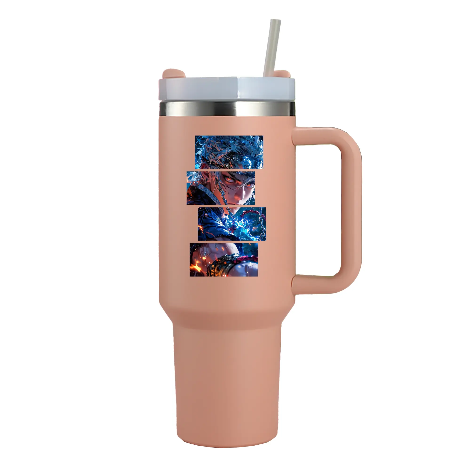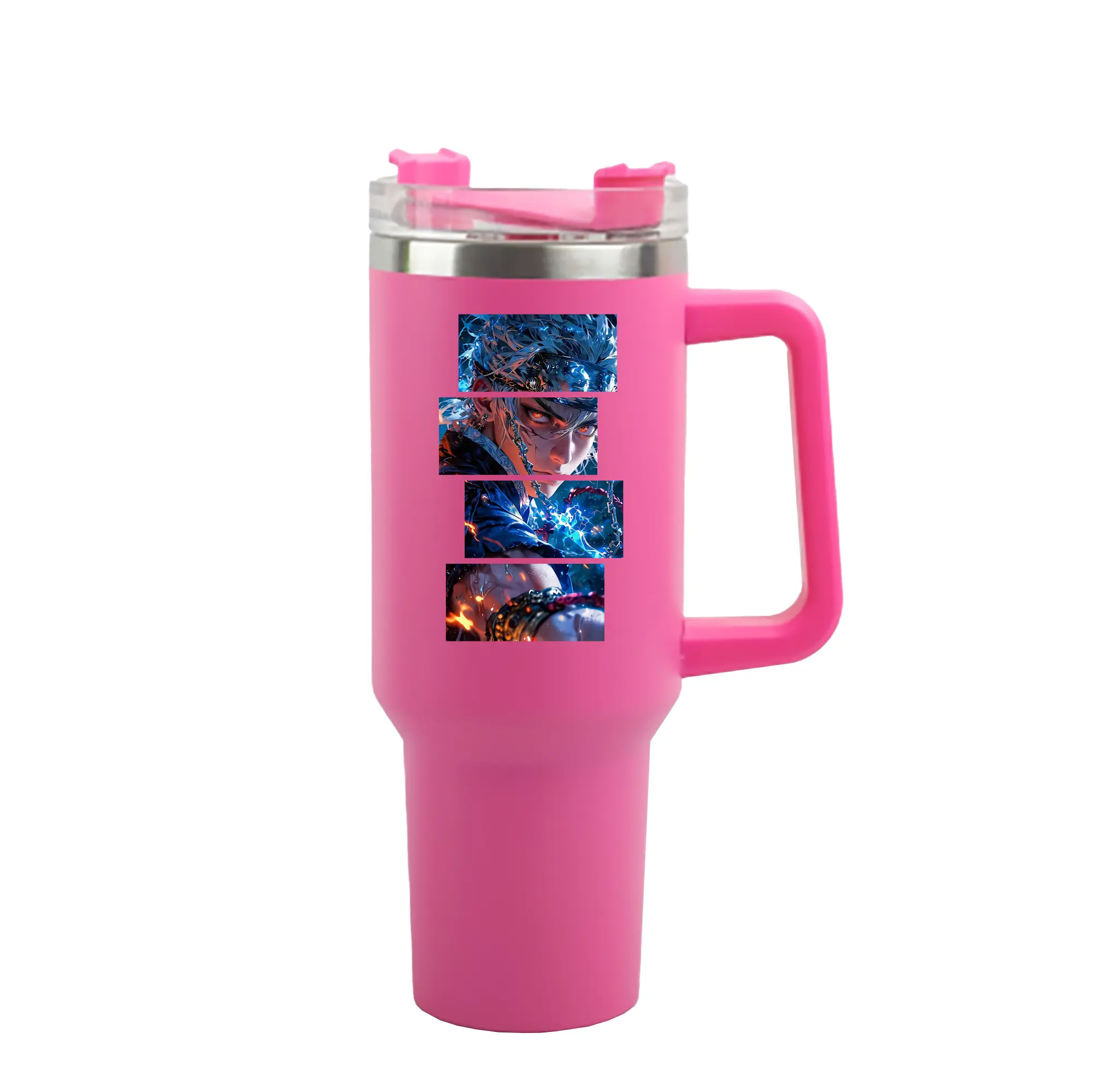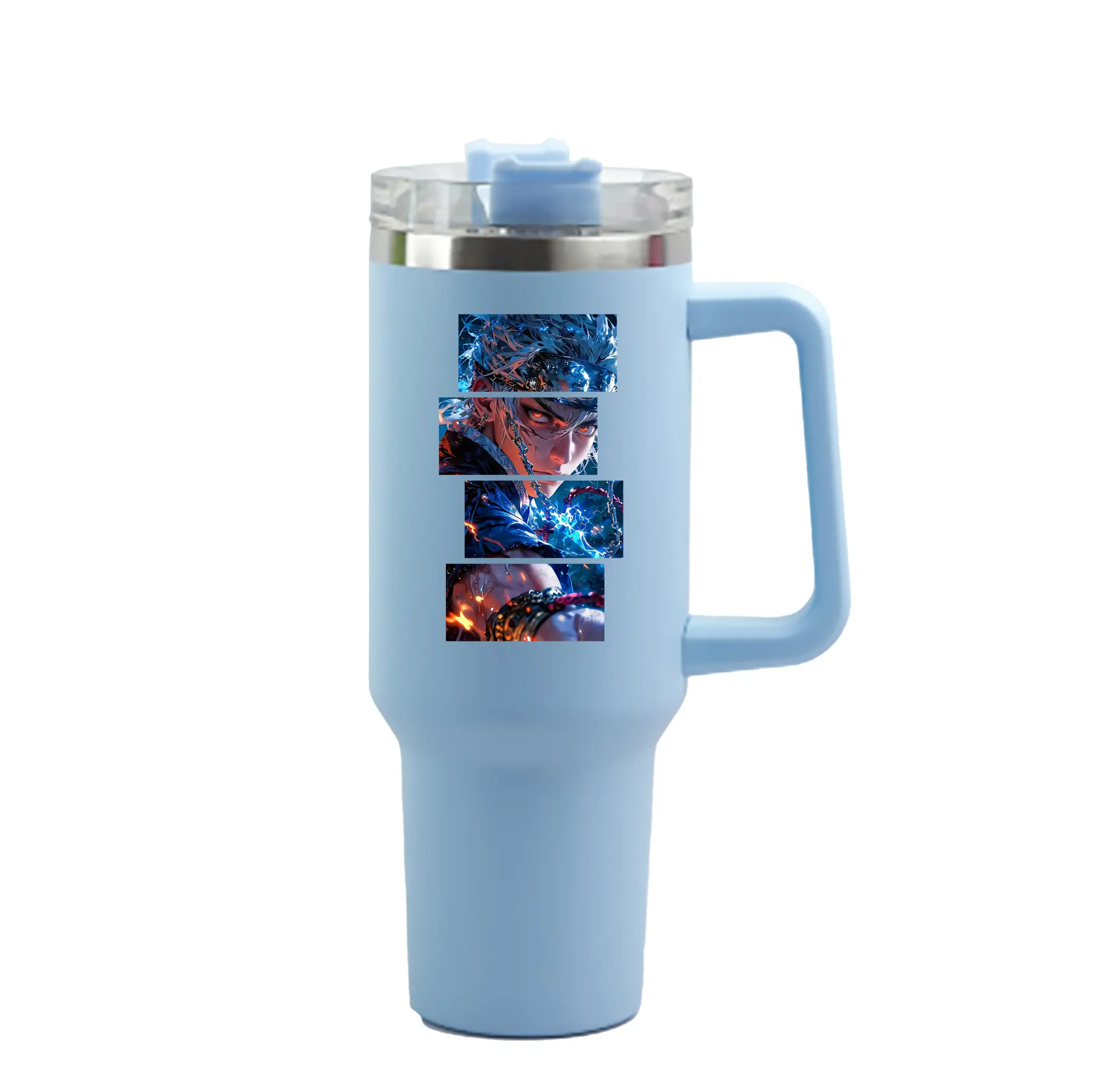 鬼滅の刃 グッズ,宇髄 天元 - 1200mL 車用タンブラー ・ クリスタルステッカー ・ 304ステンレス 内側 ・ 201ステンレス 外側 ・ 保温 保冷 ・ ハンドル&ストロー付き ・ 通勤 ドライブ アウトドア用