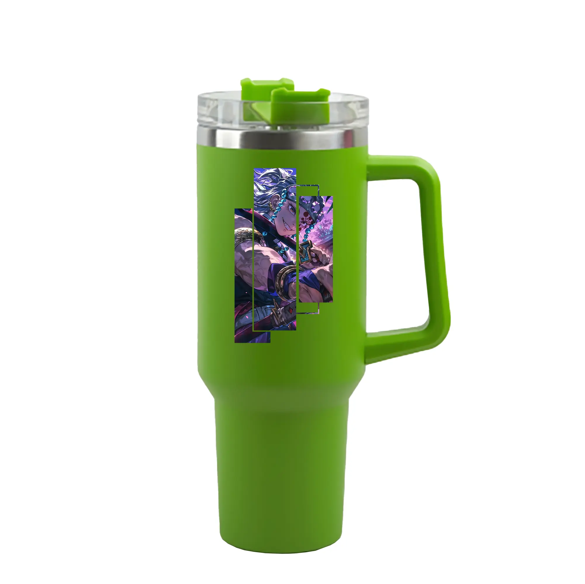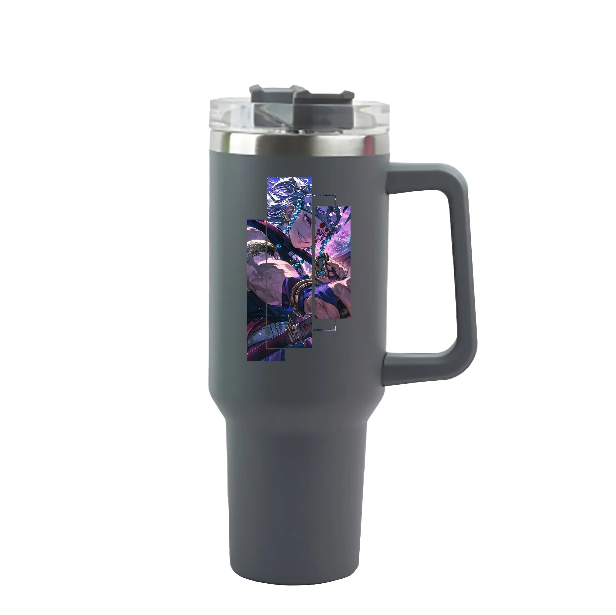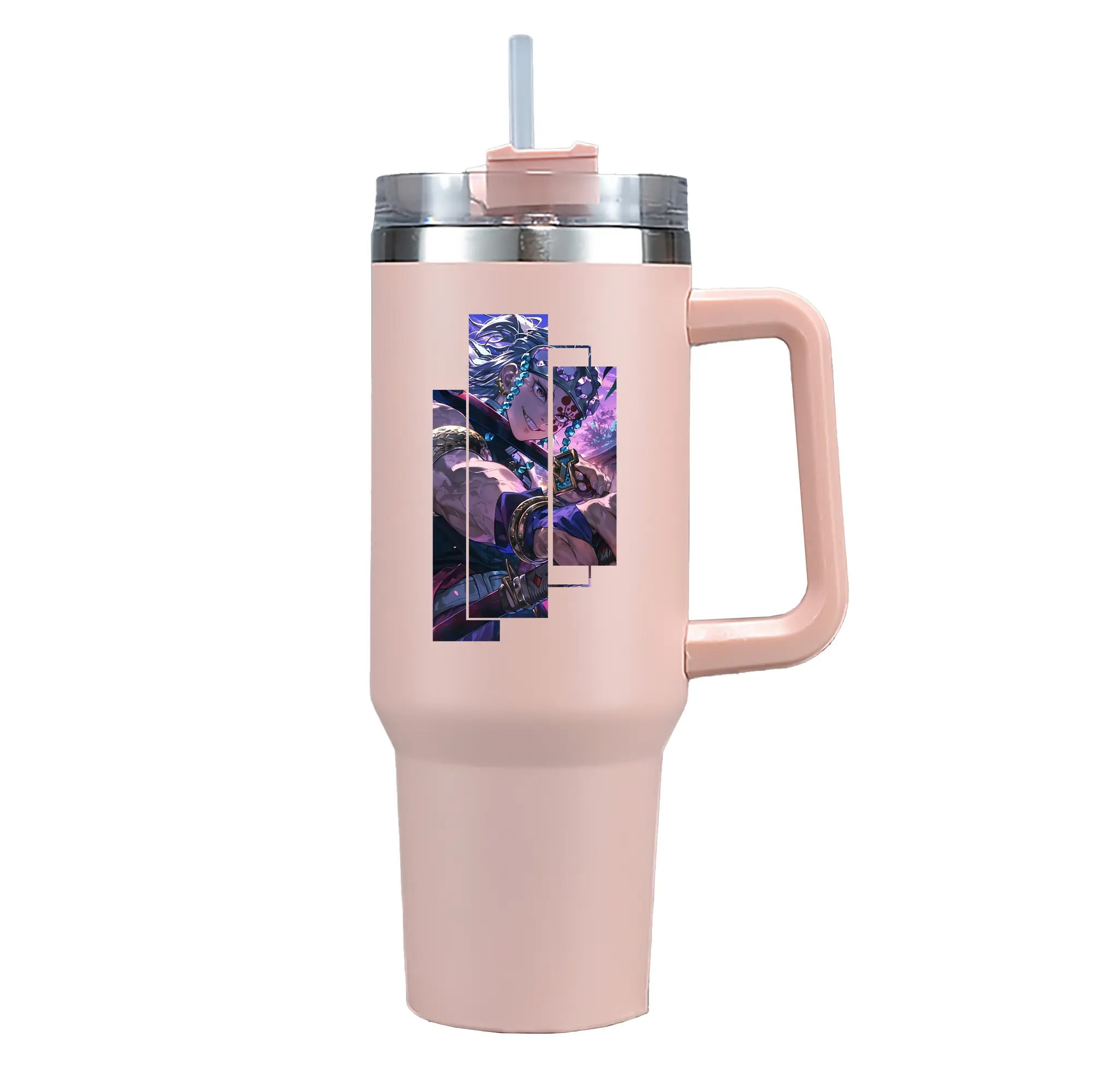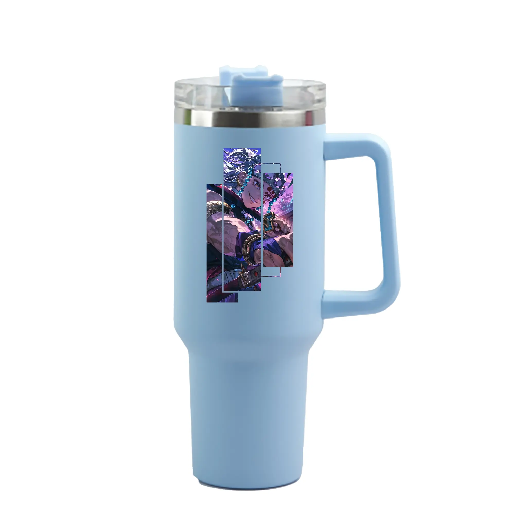 鬼滅の刃 グッズ,宇髄 天元 - 1200mL 車用タンブラー ・ クリスタルステッカー ・ 304ステンレス 内側 ・ 201ステンレス 外側 ・ 保温 保冷 ・ ハンドル&ストロー付き ・ 通勤 ドライブ アウトドア用