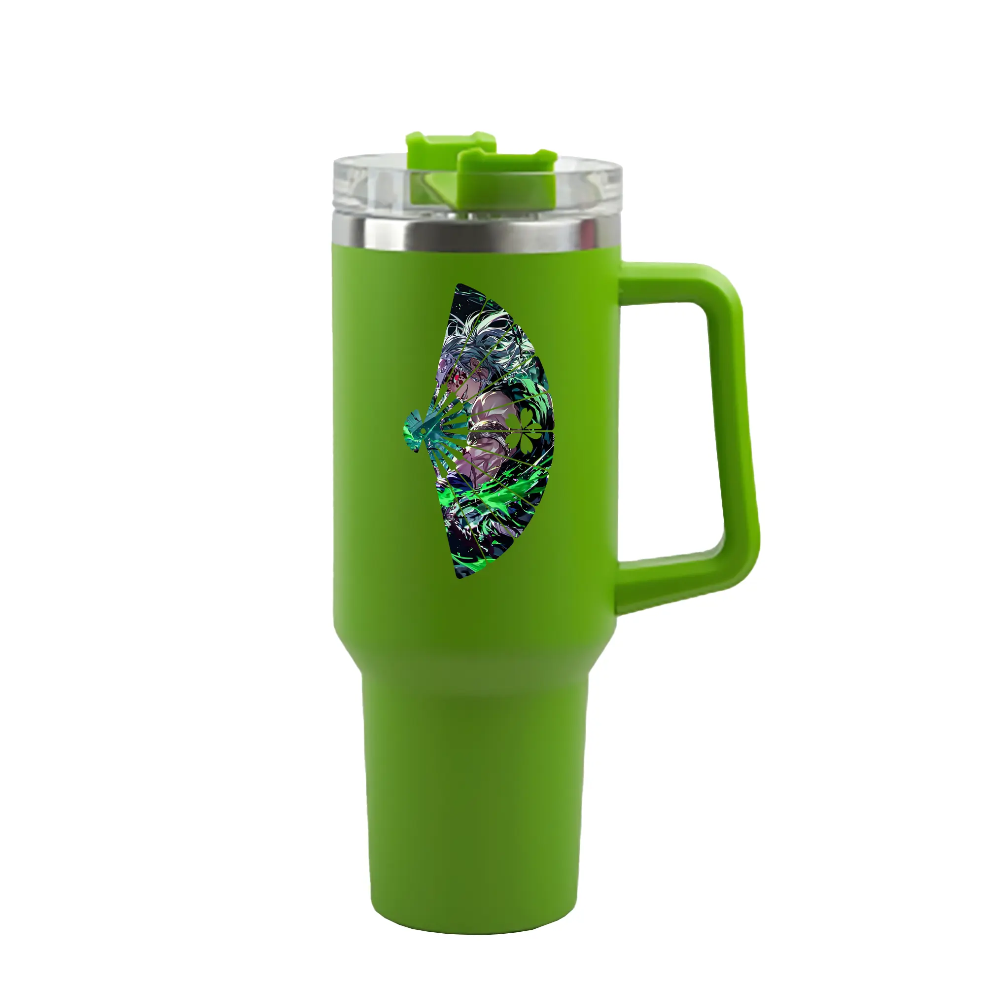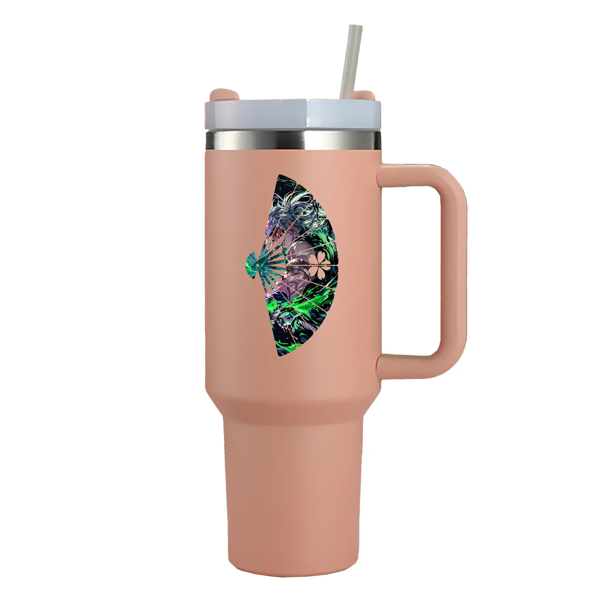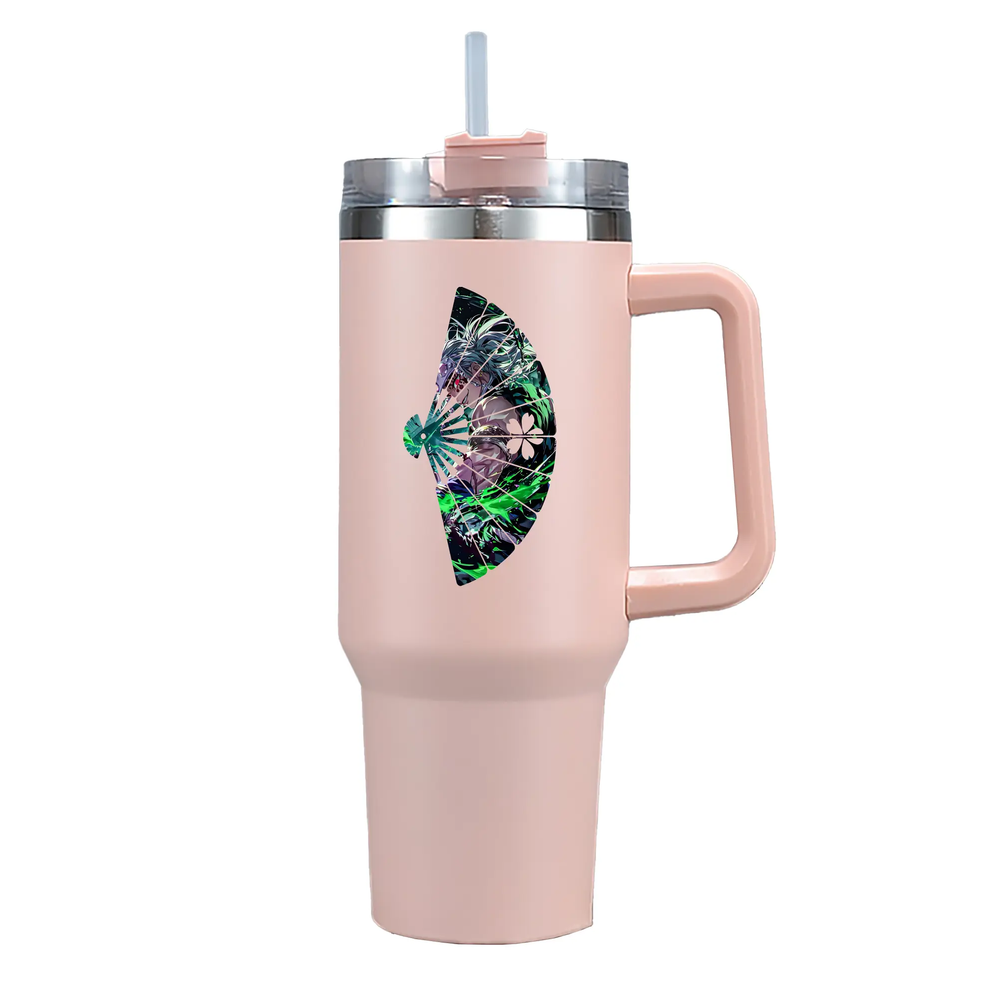 鬼滅の刃 グッズ,宇髄 天元 - 1200mL 車用タンブラー ・ クリスタルステッカー ・ 304ステンレス 内側 ・ 201ステンレス 外側 ・ 保温 保冷 ・ ハンドル&ストロー付き ・ 通勤 ドライブ アウトドア用