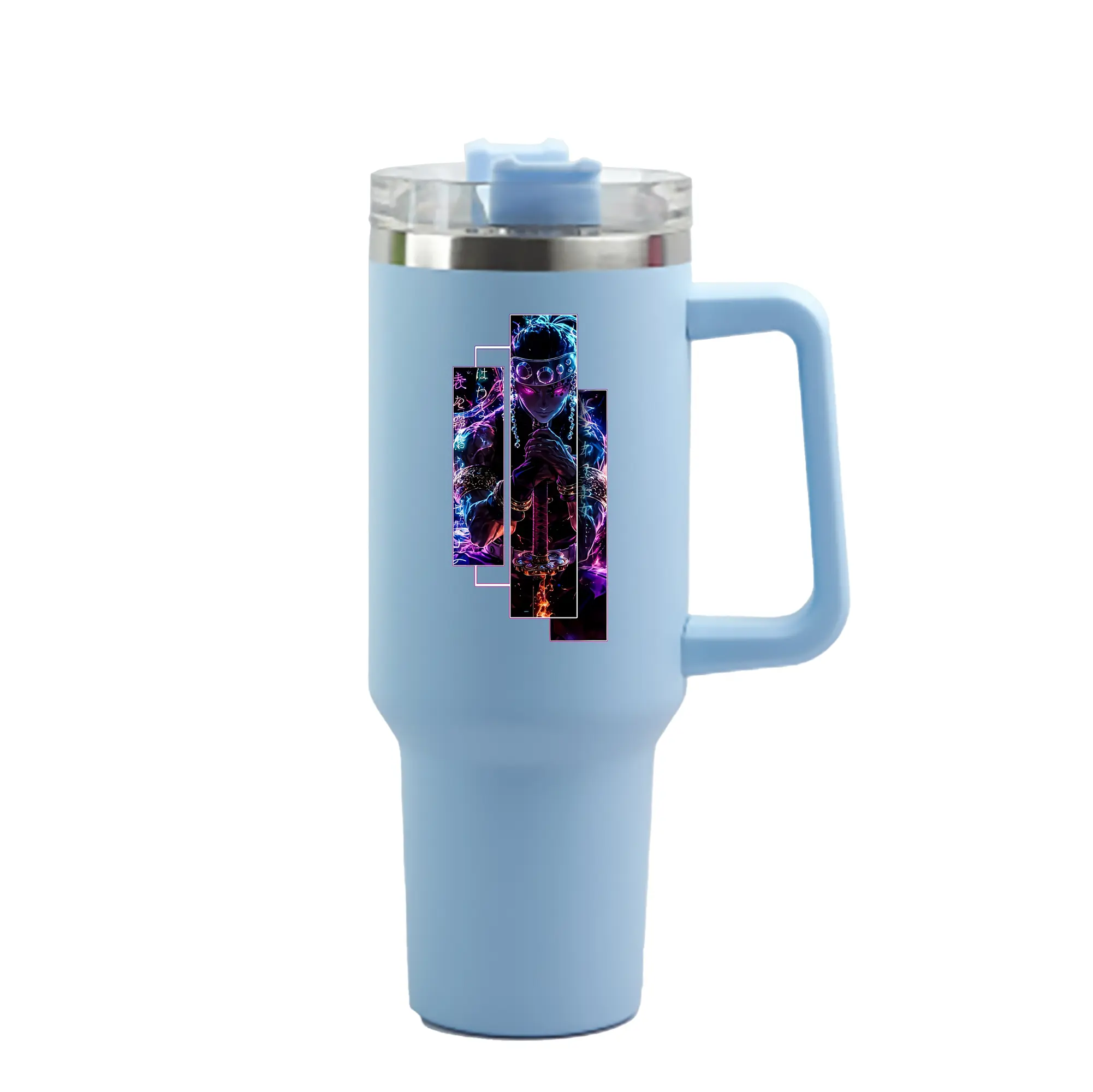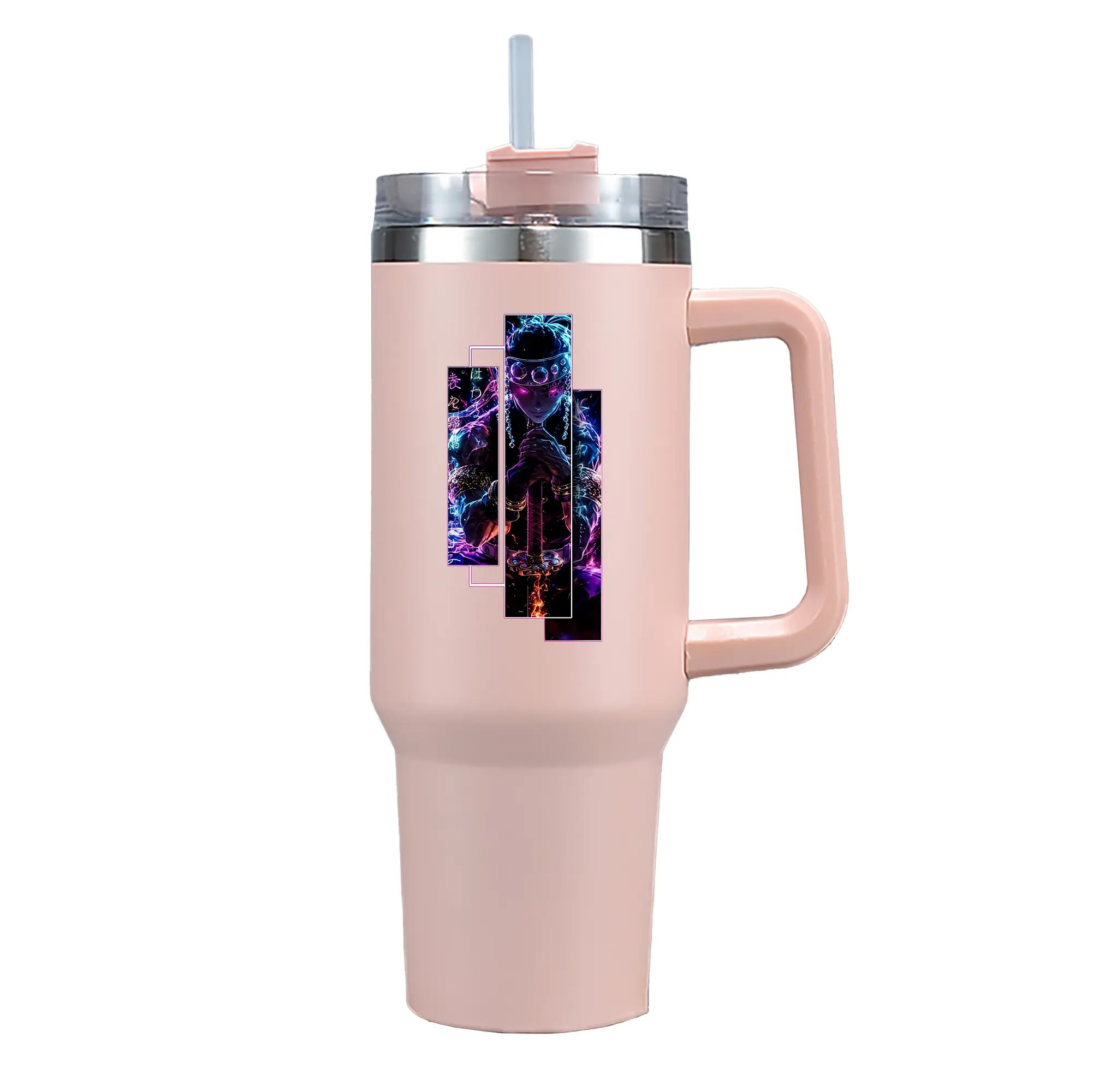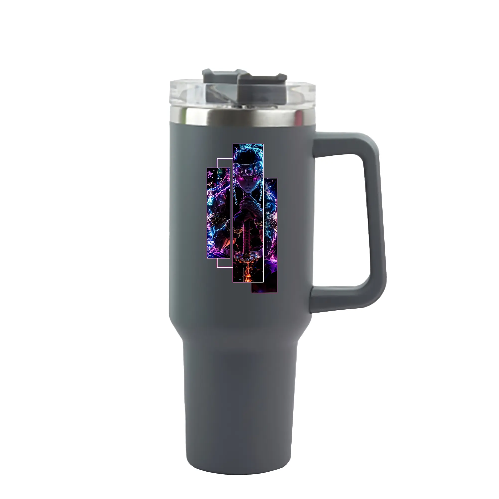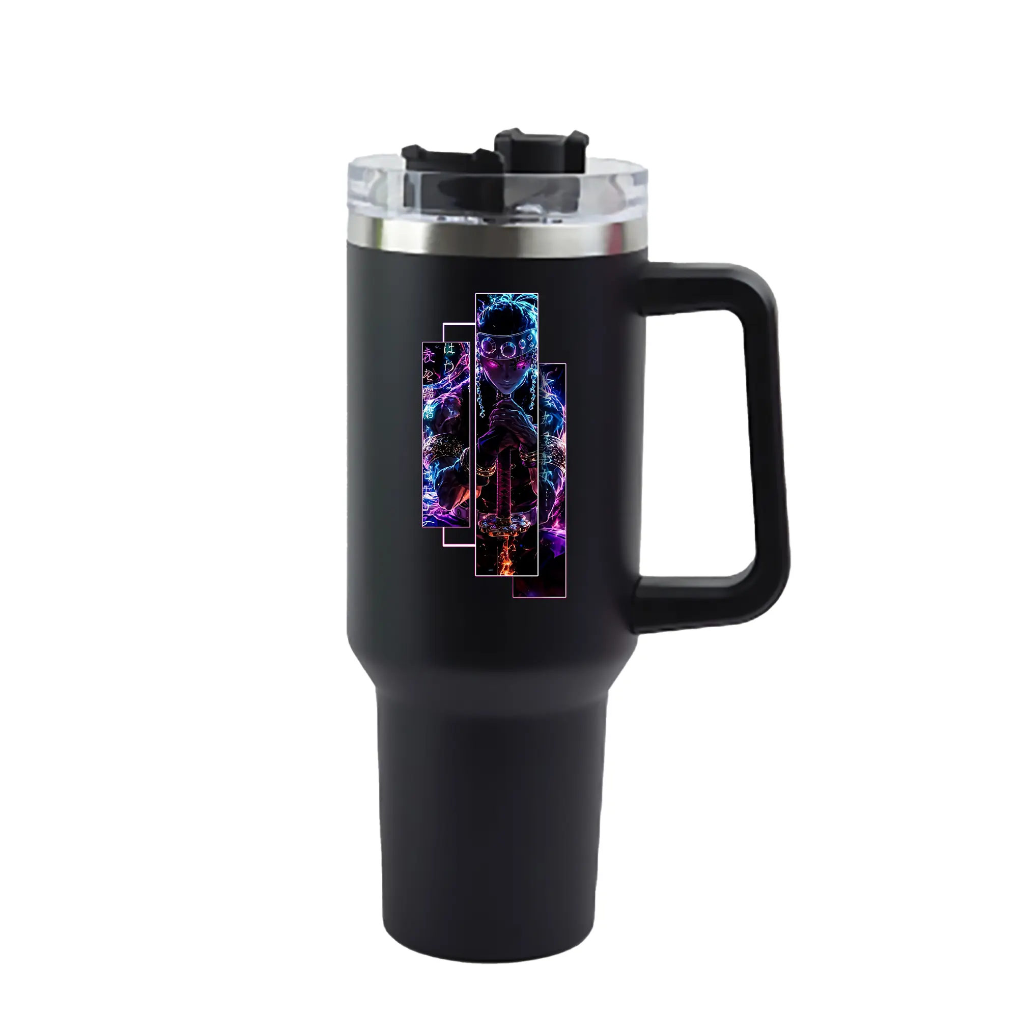 鬼滅の刃 グッズ,宇髄 天元 - 1200mL 車用タンブラー ・ クリスタルステッカー ・ 304ステンレス 内側 ・ 201ステンレス 外側 ・ 保温 保冷 ・ ハンドル&ストロー付き ・ 通勤 ドライブ アウトドア用