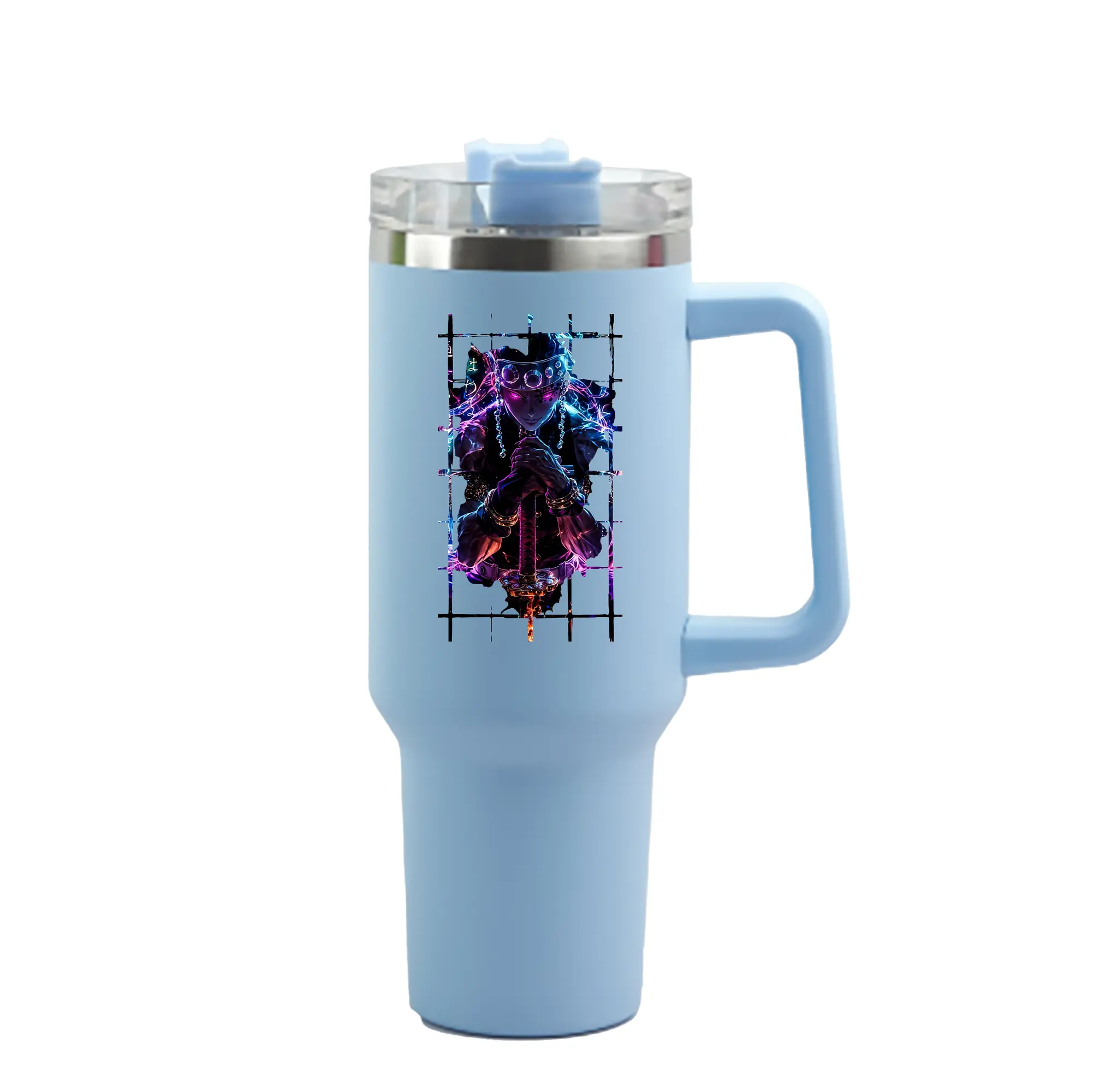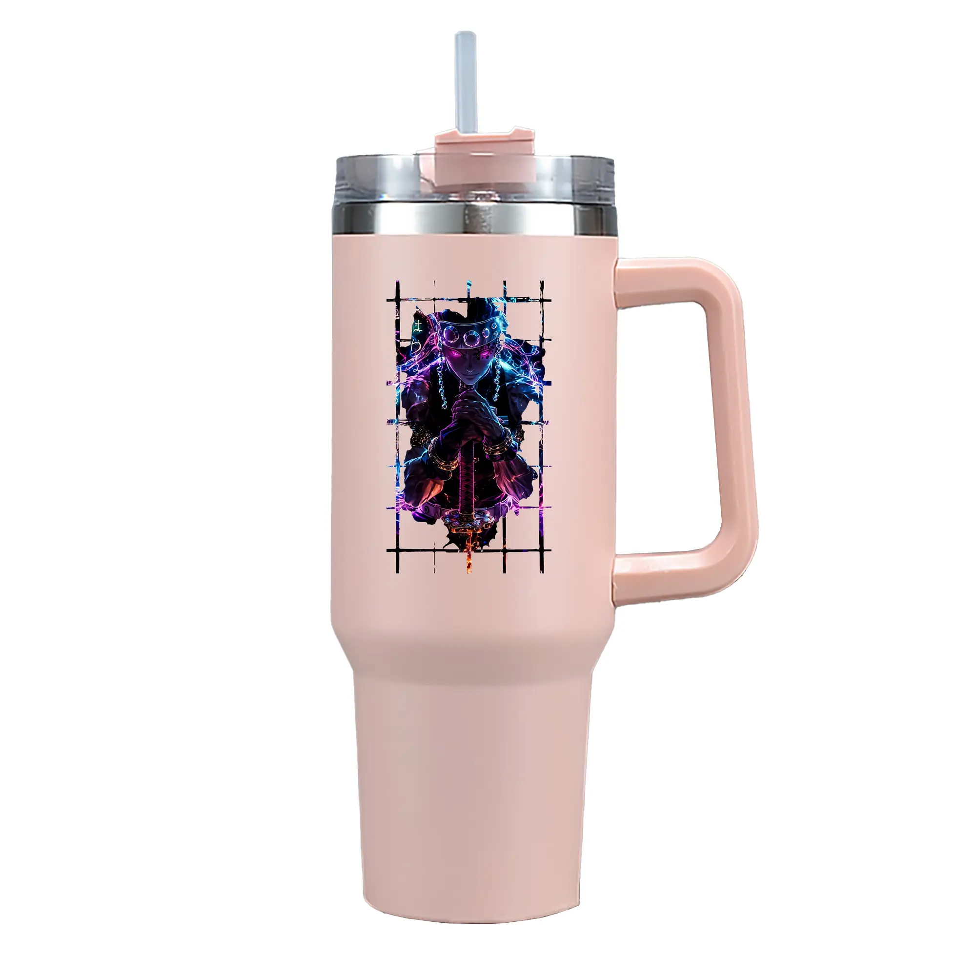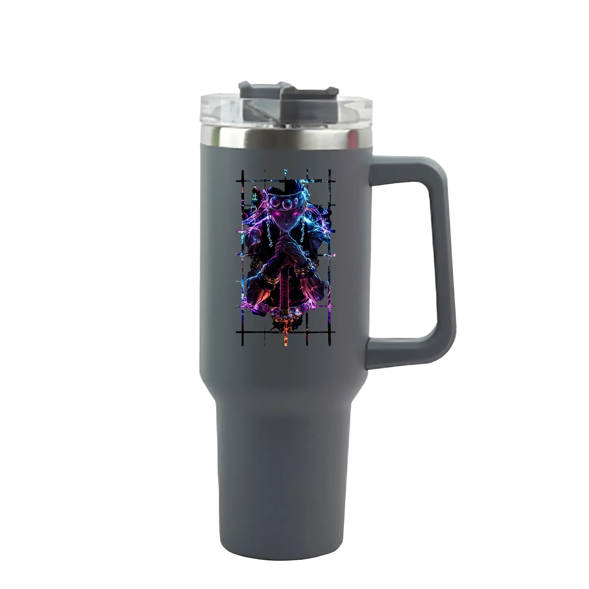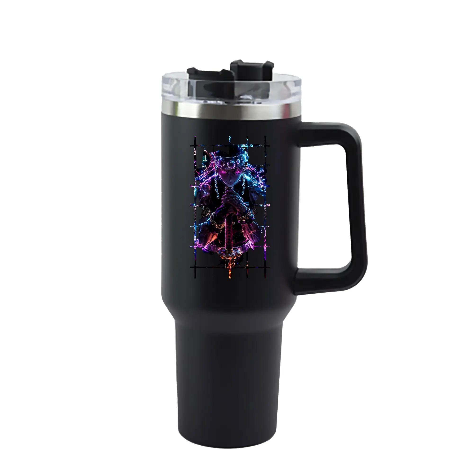 鬼滅の刃 グッズ,宇髄 天元 - 1200mL 車用タンブラー ・ クリスタルステッカー ・ 304ステンレス 内側 ・ 201ステンレス 外側 ・ 保温 保冷 ・ ハンドル&ストロー付き ・ 通勤 ドライブ アウトドア用