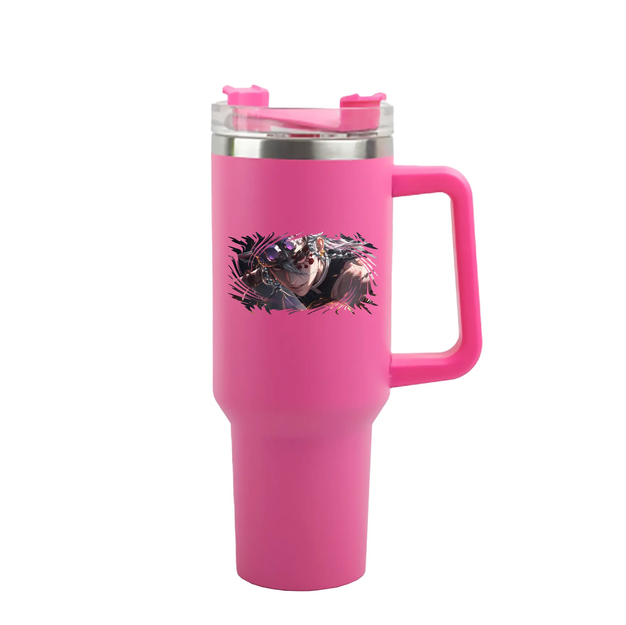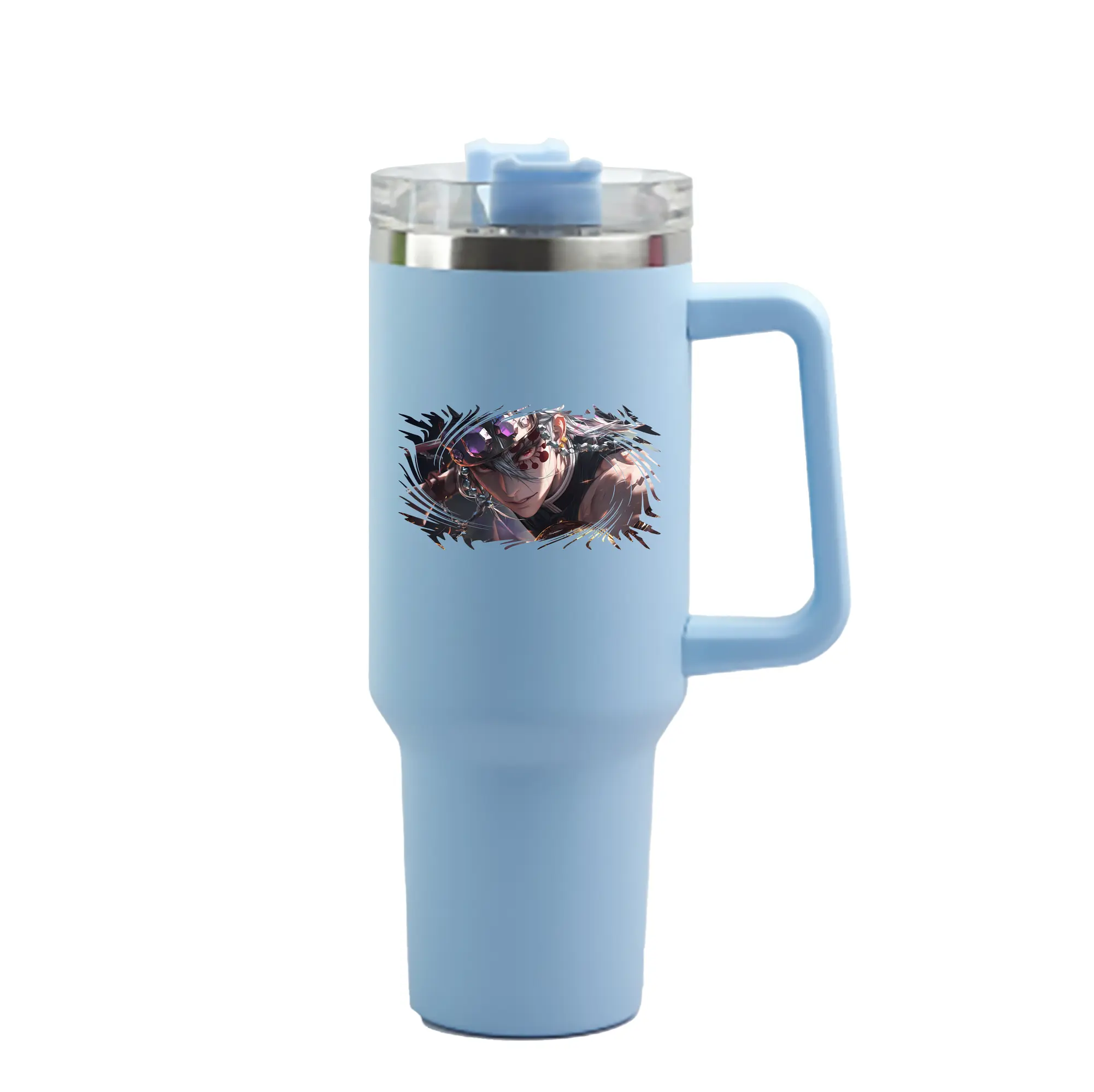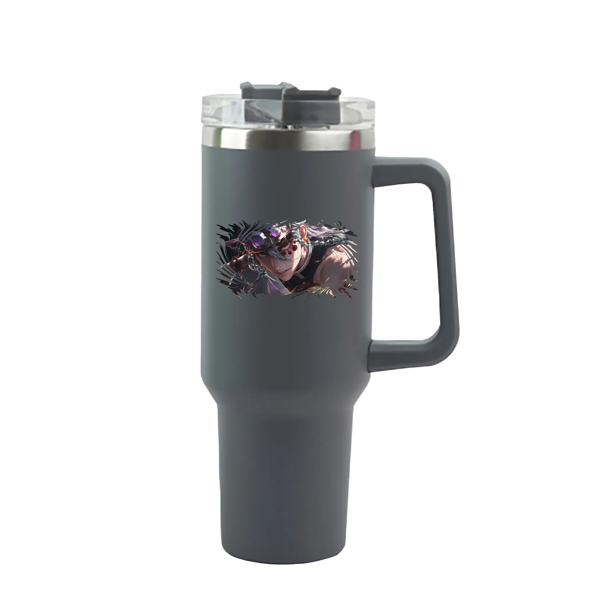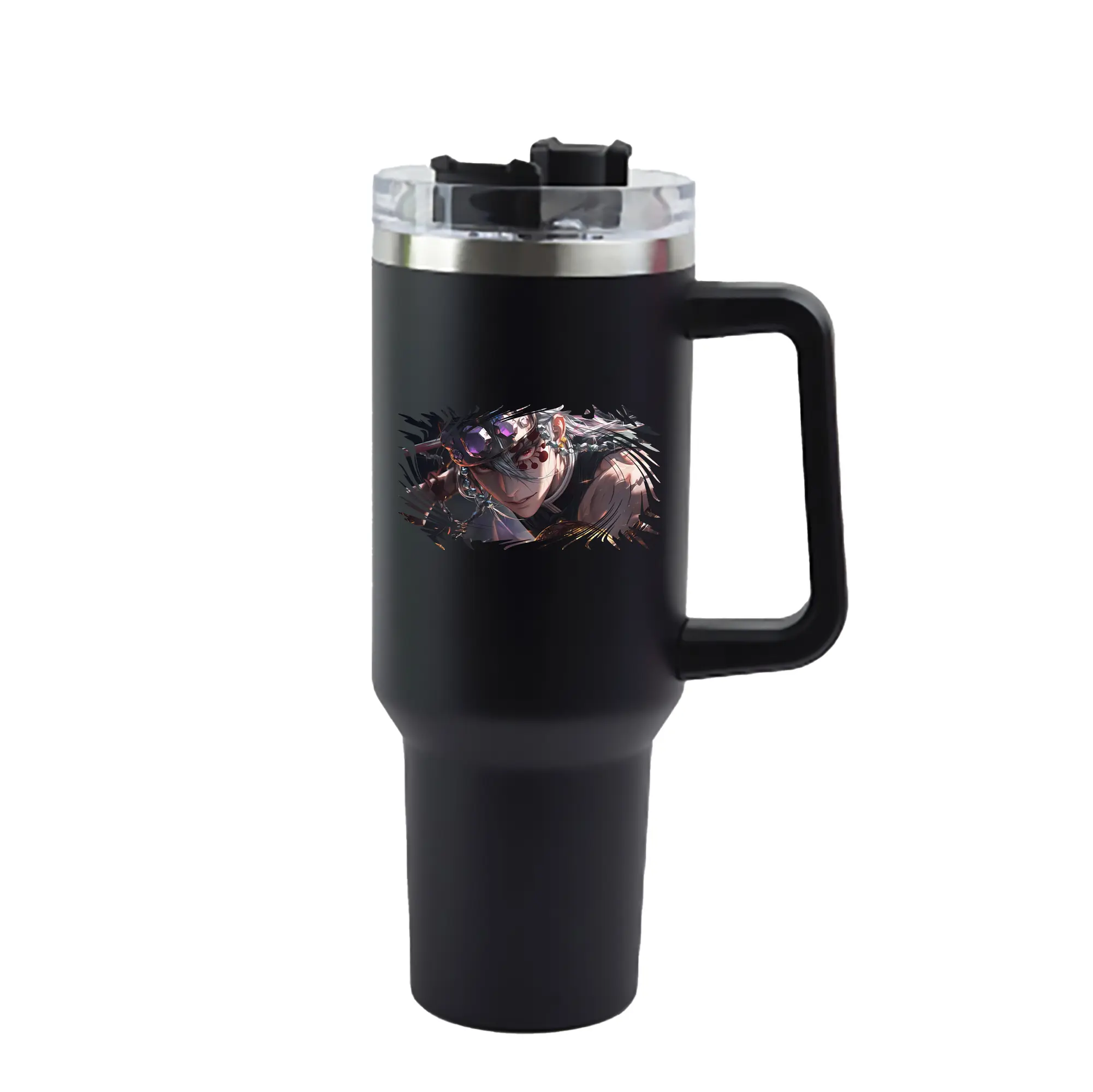 鬼滅の刃 グッズ,宇髄 天元 - 1200mL 車用タンブラー ・ クリスタルステッカー ・ 304ステンレス 内側 ・ 201ステンレス 外側 ・ 保温 保冷 ・ ハンドル&ストロー付き ・ 通勤 ドライブ アウトドア用