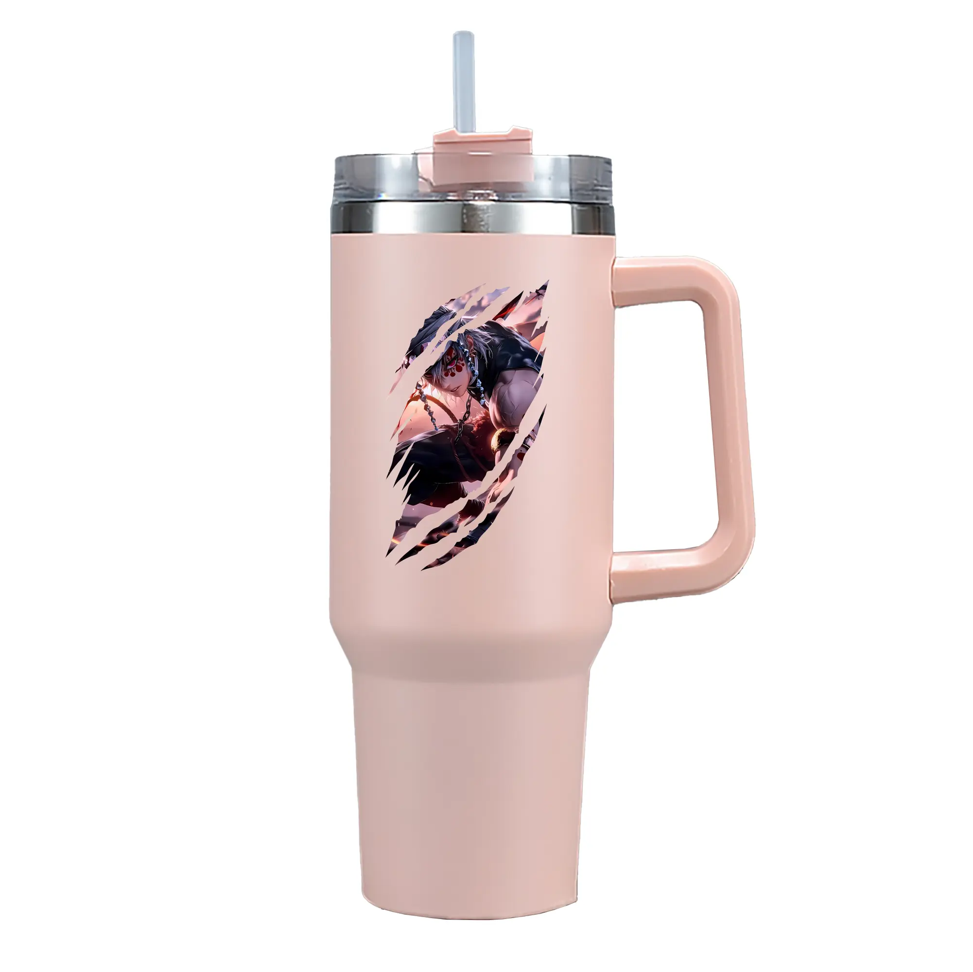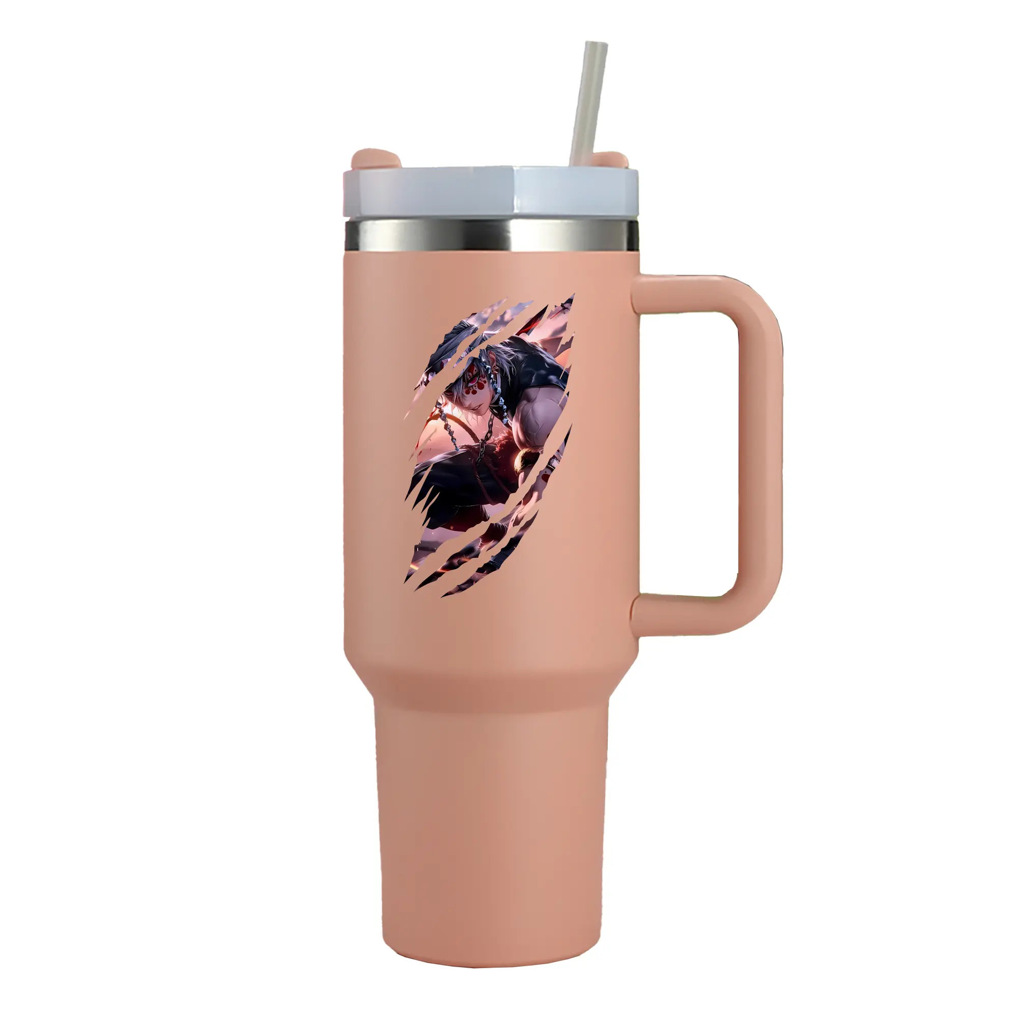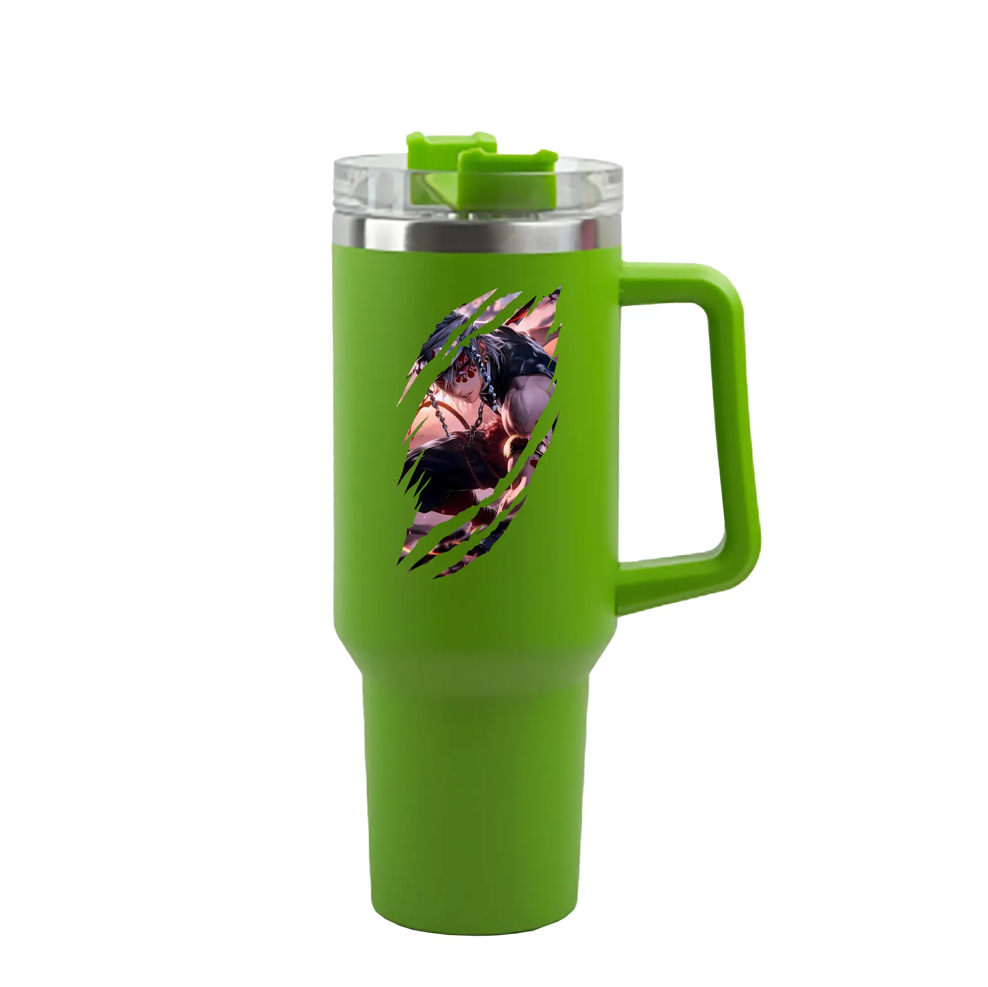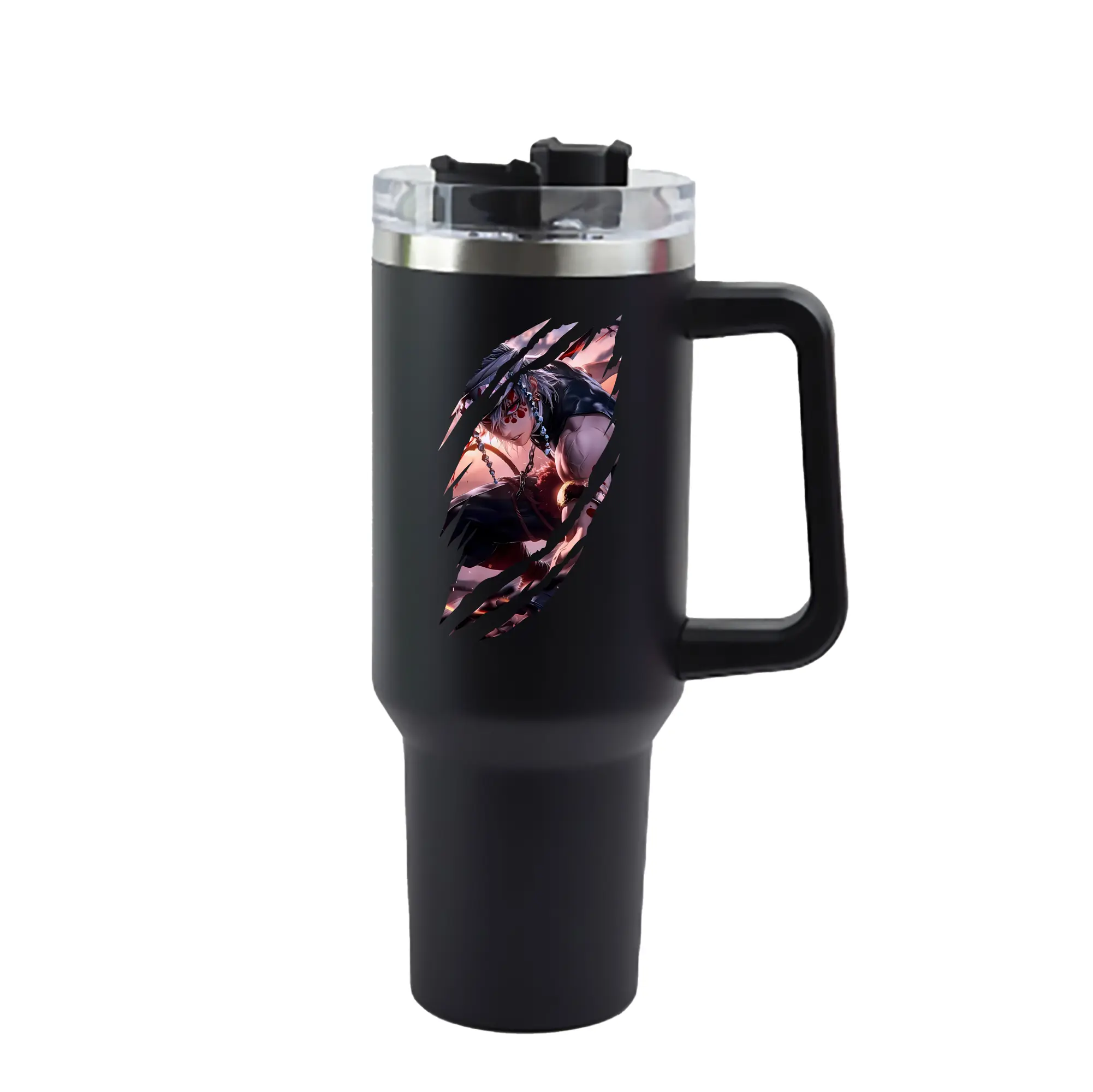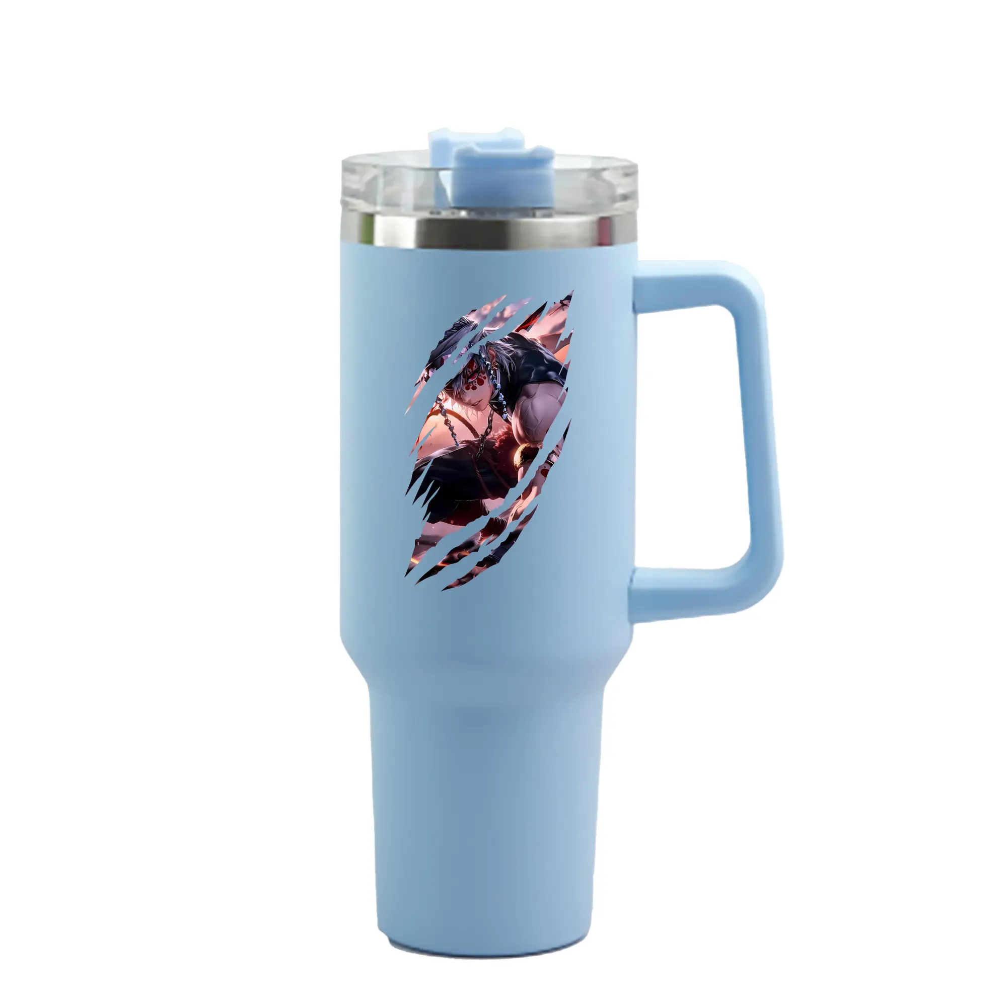 鬼滅の刃 グッズ,宇髄 天元 - 1200mL 車用タンブラー ・ クリスタルステッカー ・ 304ステンレス 内側 ・ 201ステンレス 外側 ・ 保温 保冷 ・ ハンドル&ストロー付き ・ 通勤 ドライブ アウトドア用