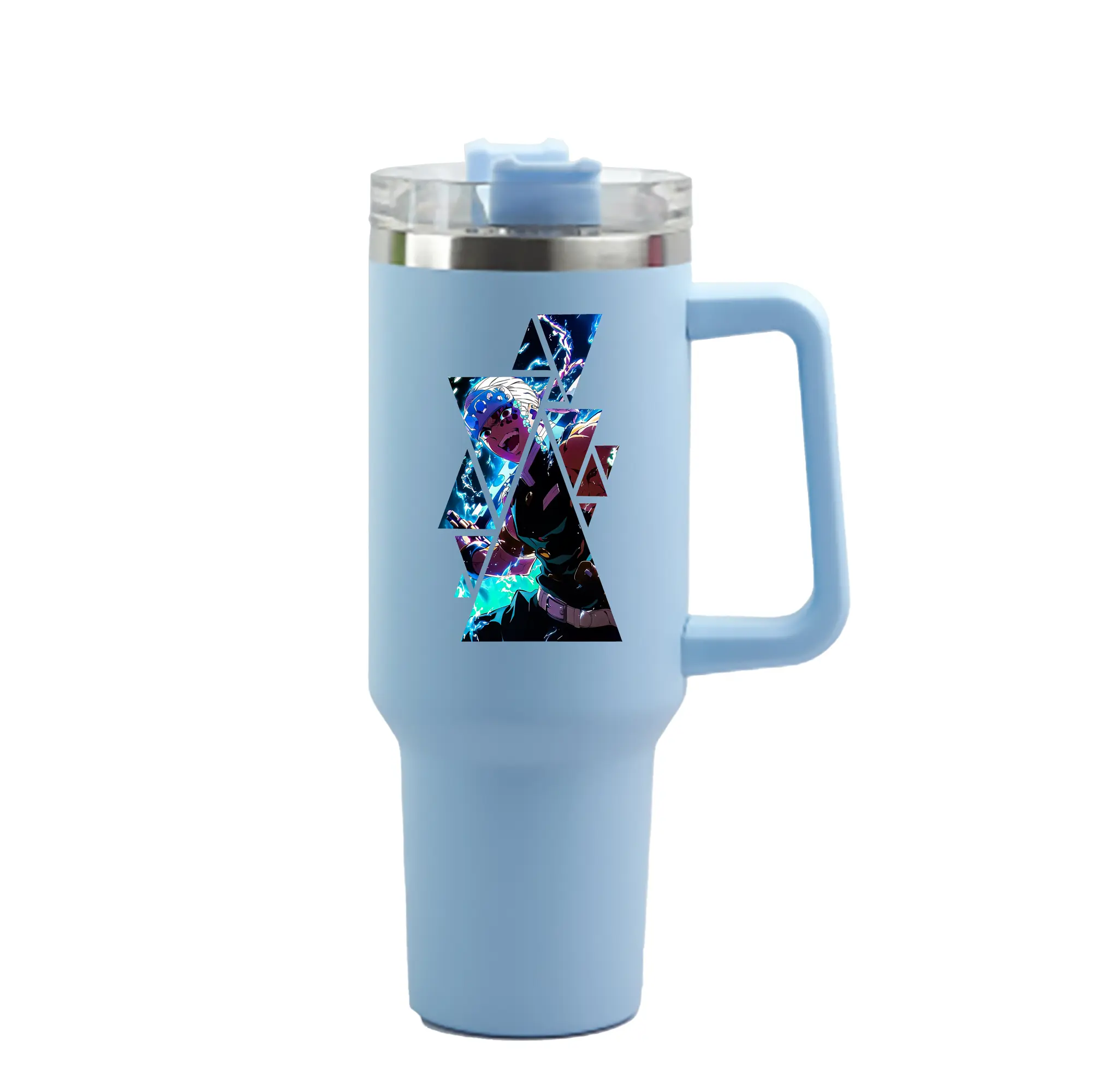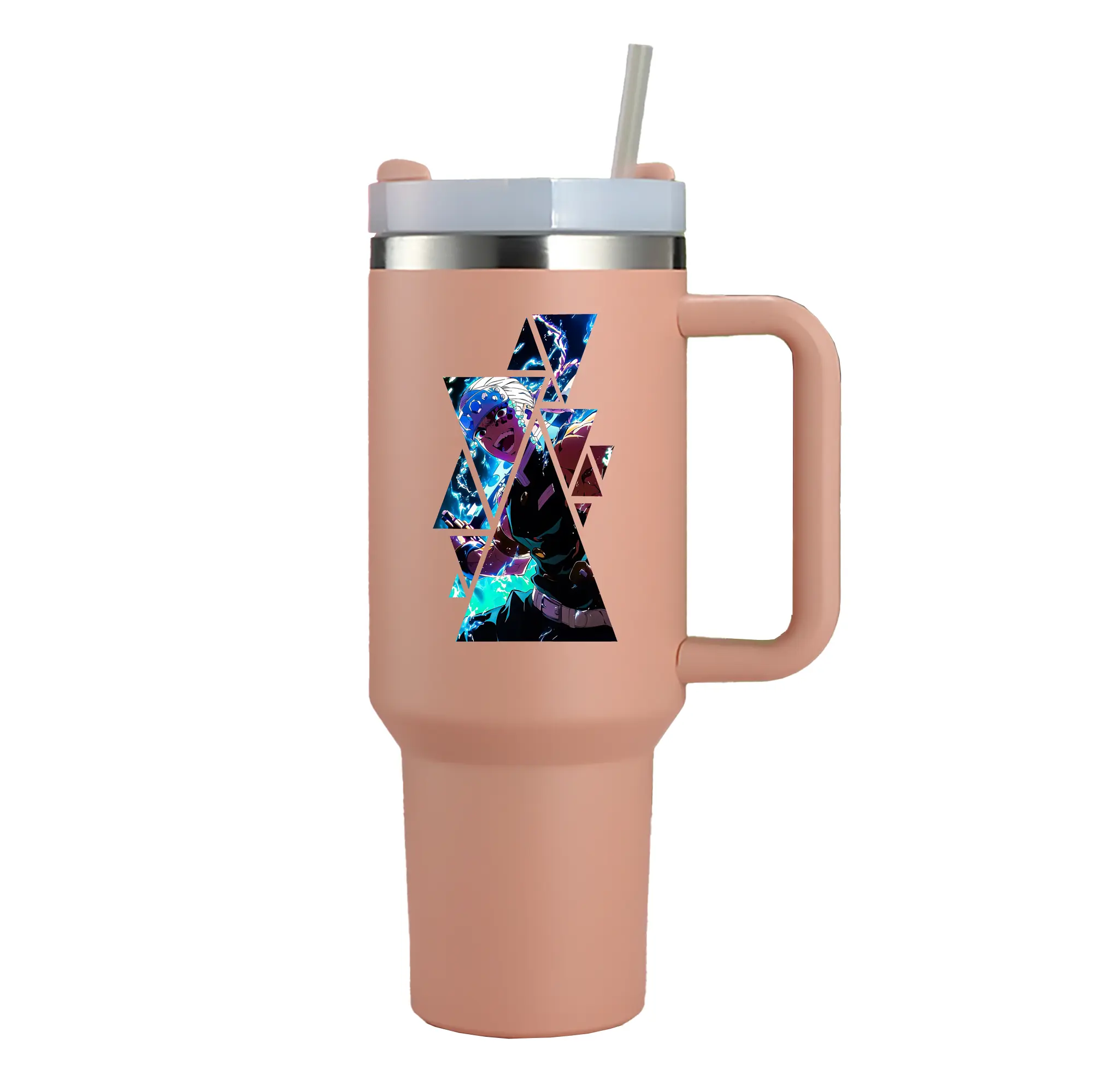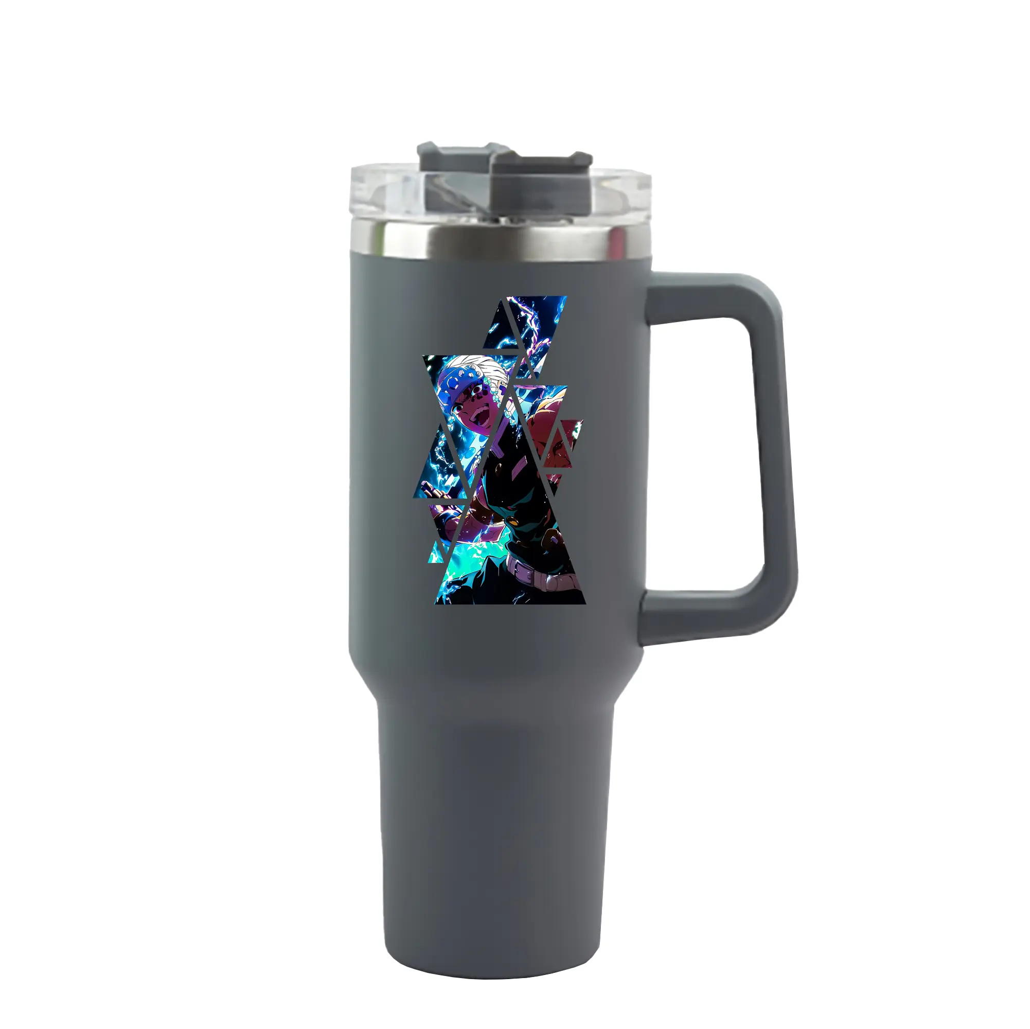 鬼滅の刃 グッズ,宇髄 天元 - 1200mL 車用タンブラー ・ クリスタルステッカー ・ 304ステンレス 内側 ・ 201ステンレス 外側 ・ 保温 保冷 ・ ハンドル&ストロー付き ・ 通勤 ドライブ アウトドア用