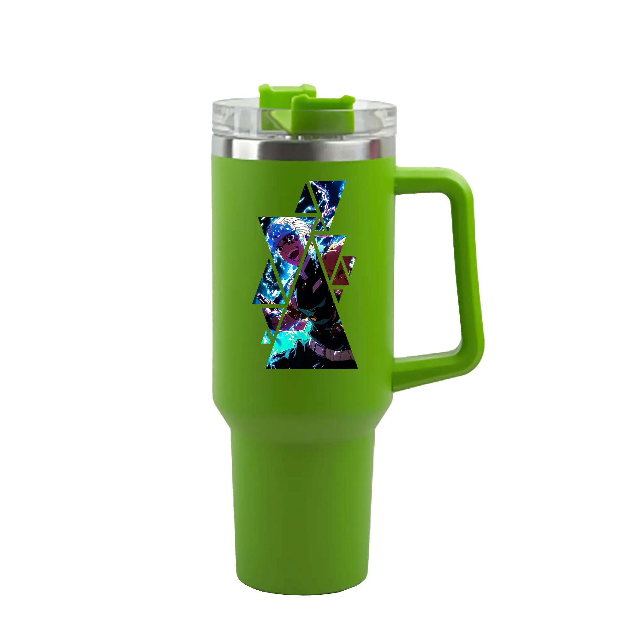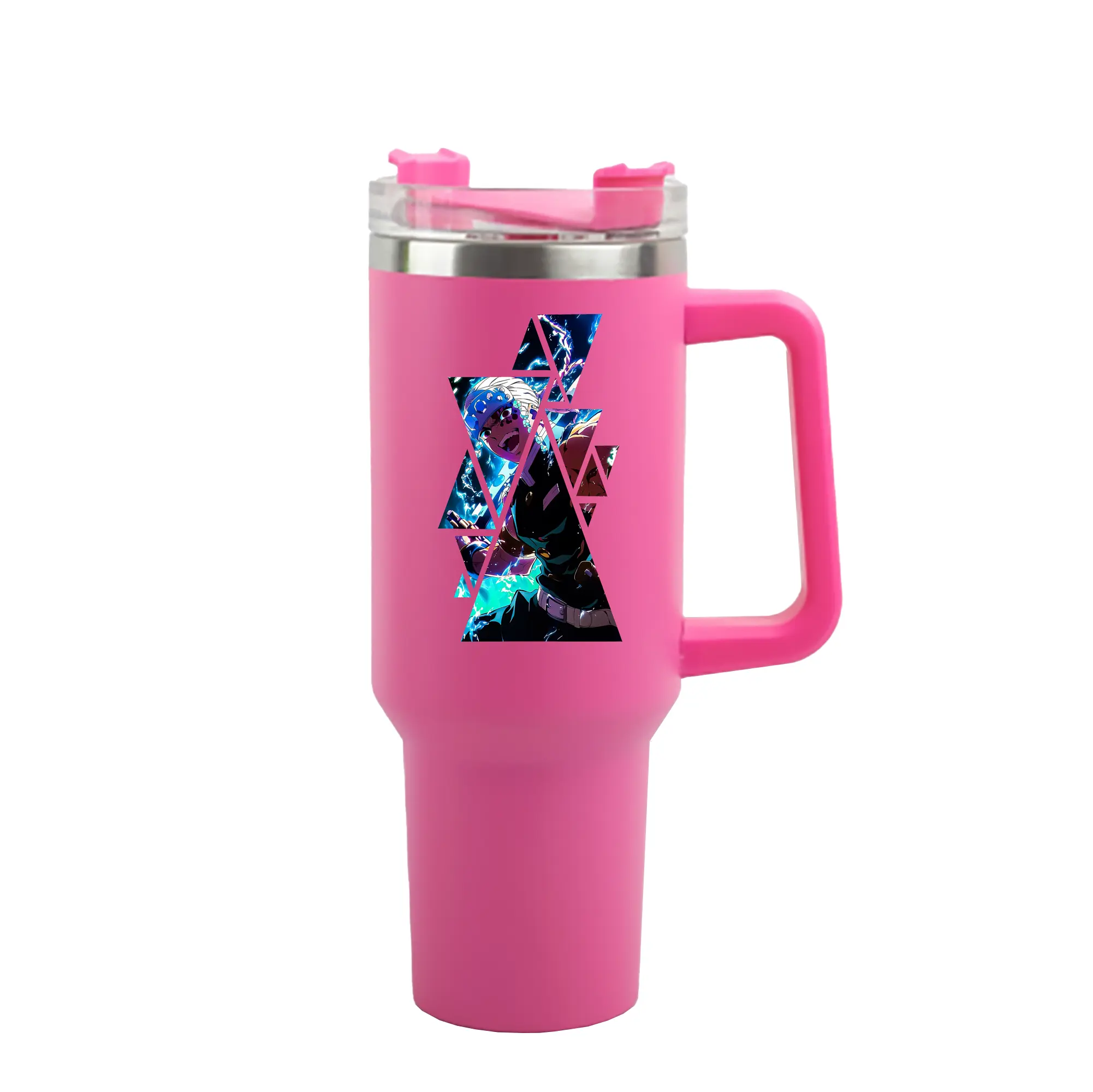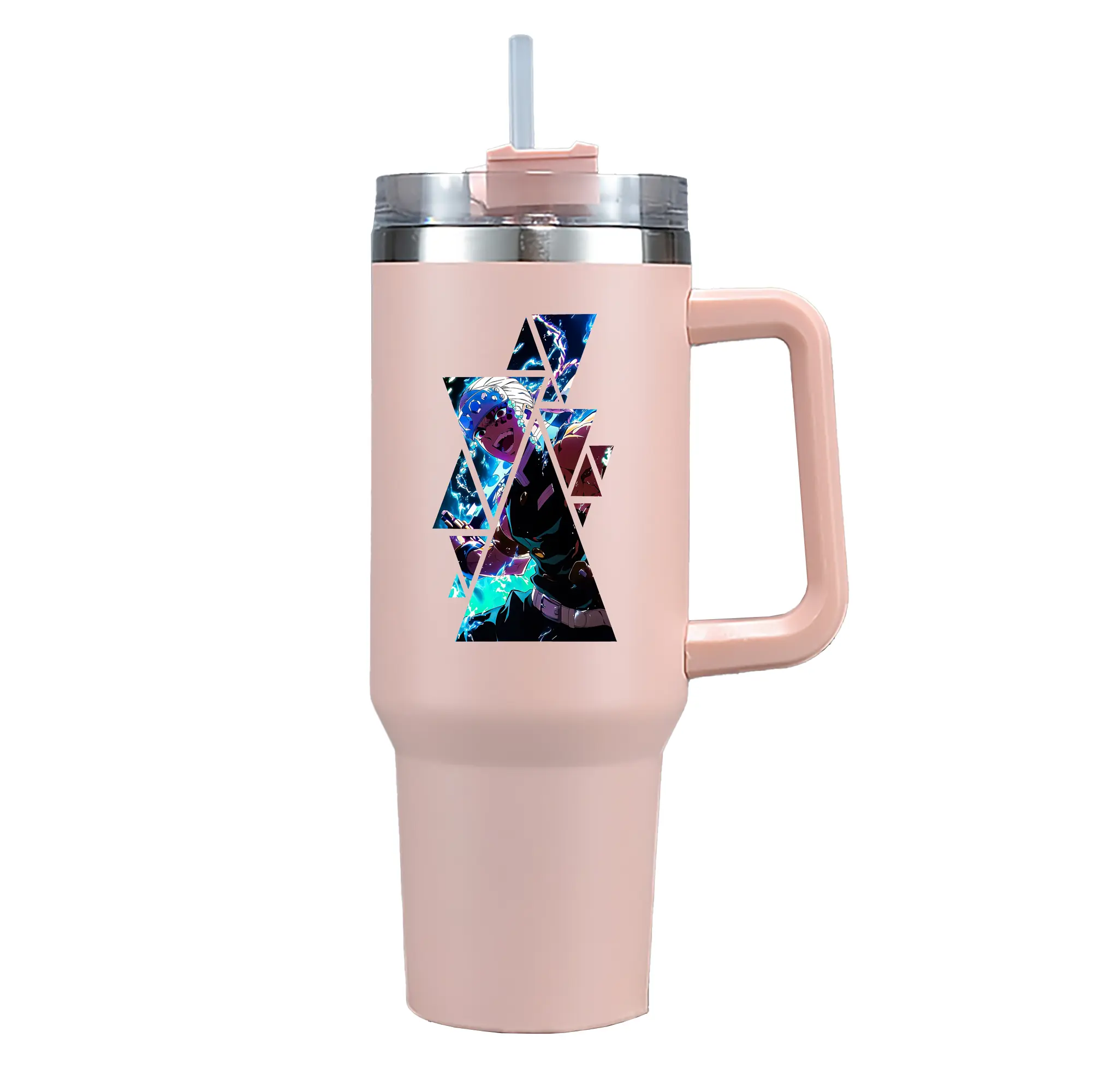 鬼滅の刃 グッズ,宇髄 天元 - 1200mL 車用タンブラー ・ クリスタルステッカー ・ 304ステンレス 内側 ・ 201ステンレス 外側 ・ 保温 保冷 ・ ハンドル&ストロー付き ・ 通勤 ドライブ アウトドア用