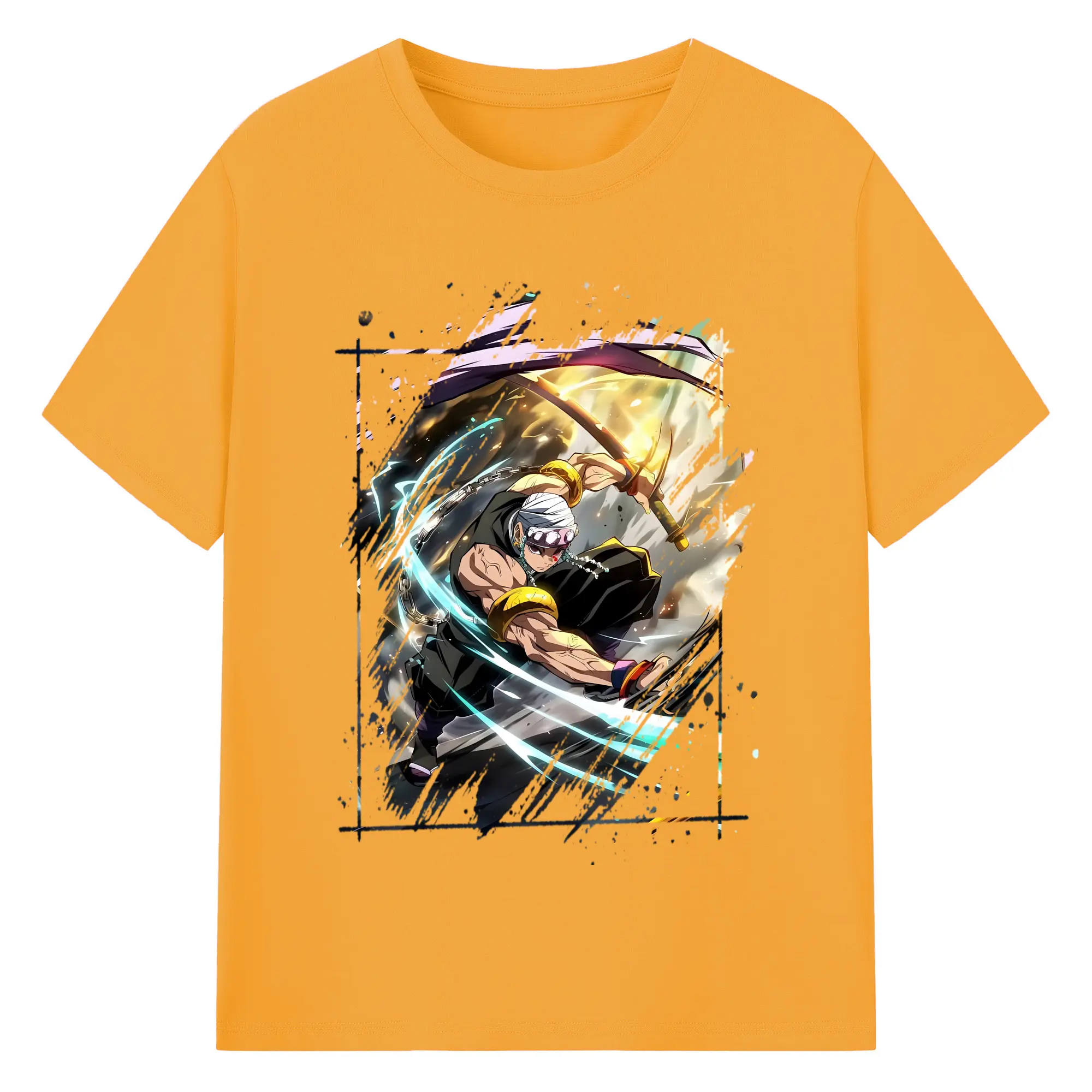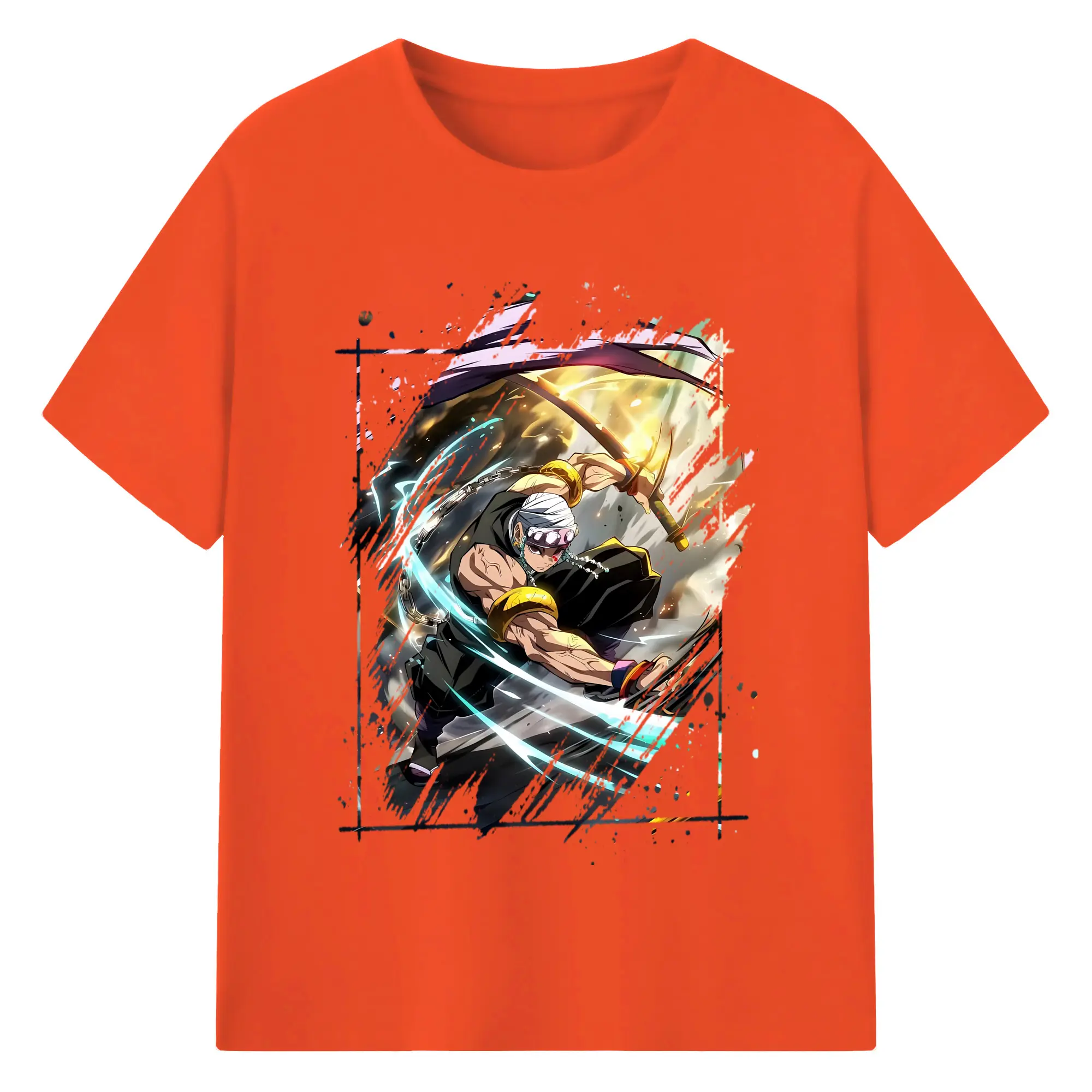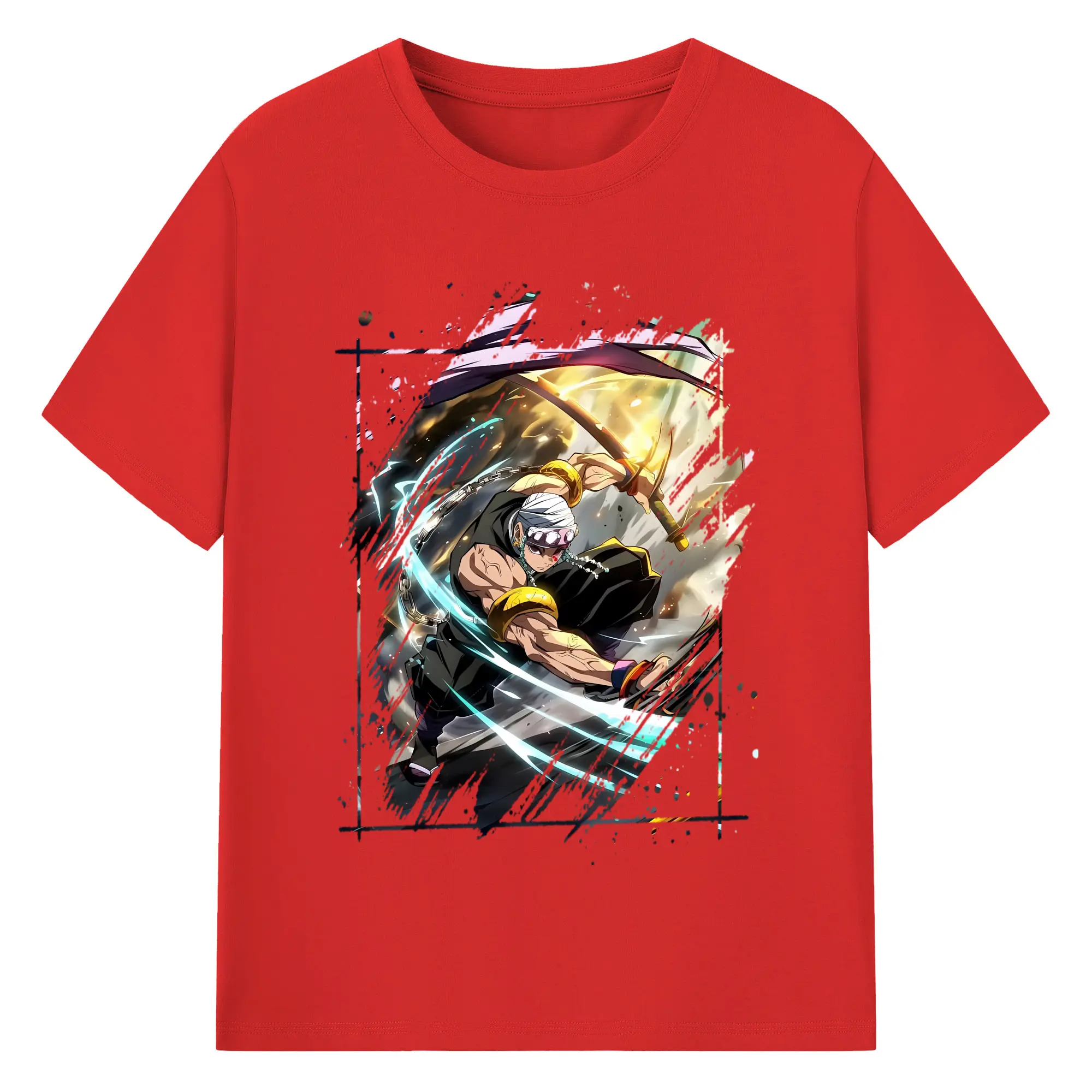 鬼滅の刃 グッズ,宇髄 天元 - 綿100% 半袖Tシャツ ・ バックプリント ・ 快適 通気性 ・ 日常使い 散歩 スポーツ用