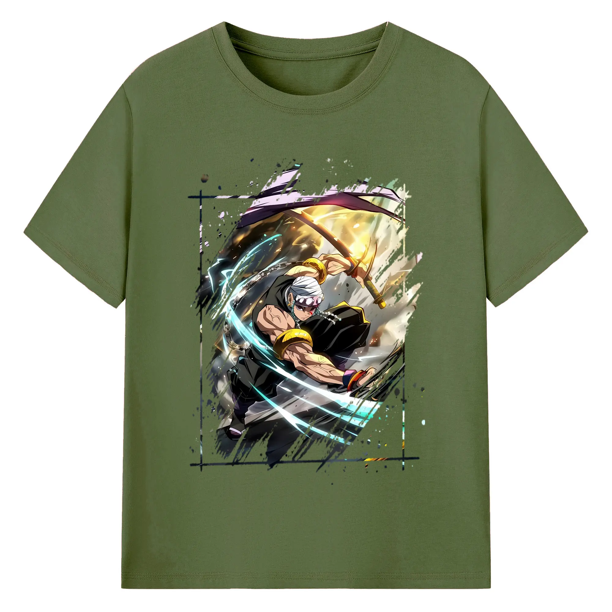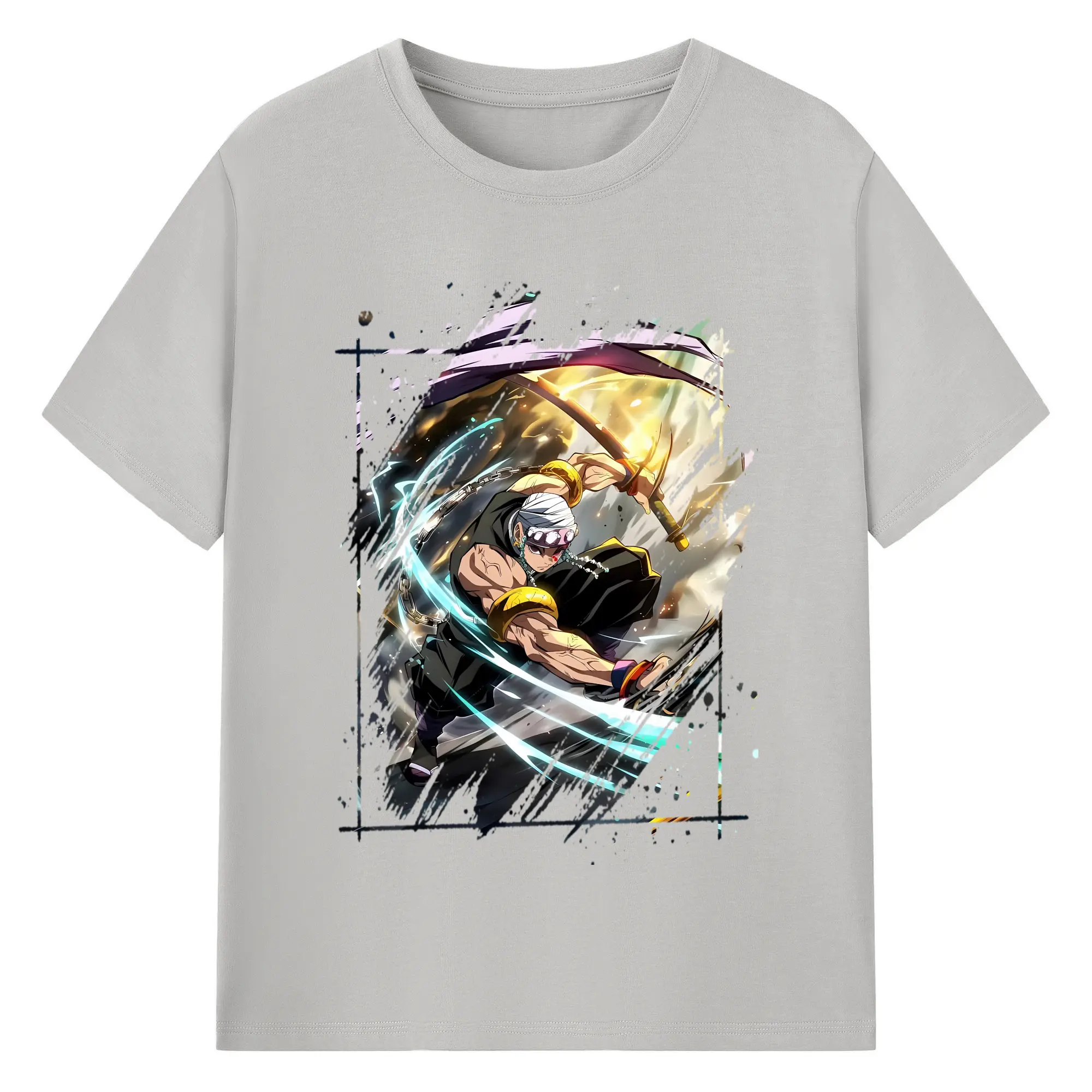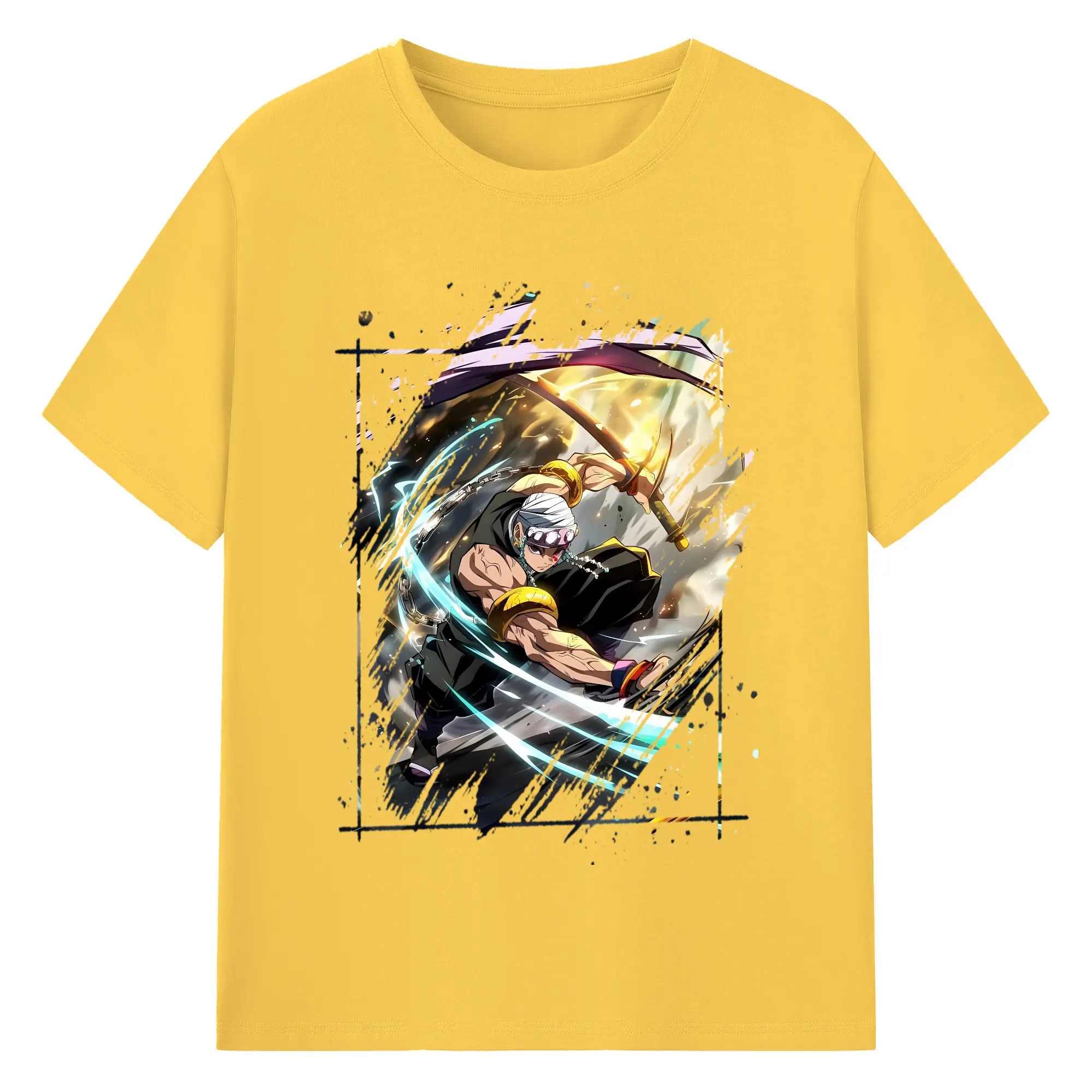 鬼滅の刃 グッズ,宇髄 天元 - 綿100% 半袖Tシャツ ・ バックプリント ・ 快適 通気性 ・ 日常使い 散歩 スポーツ用