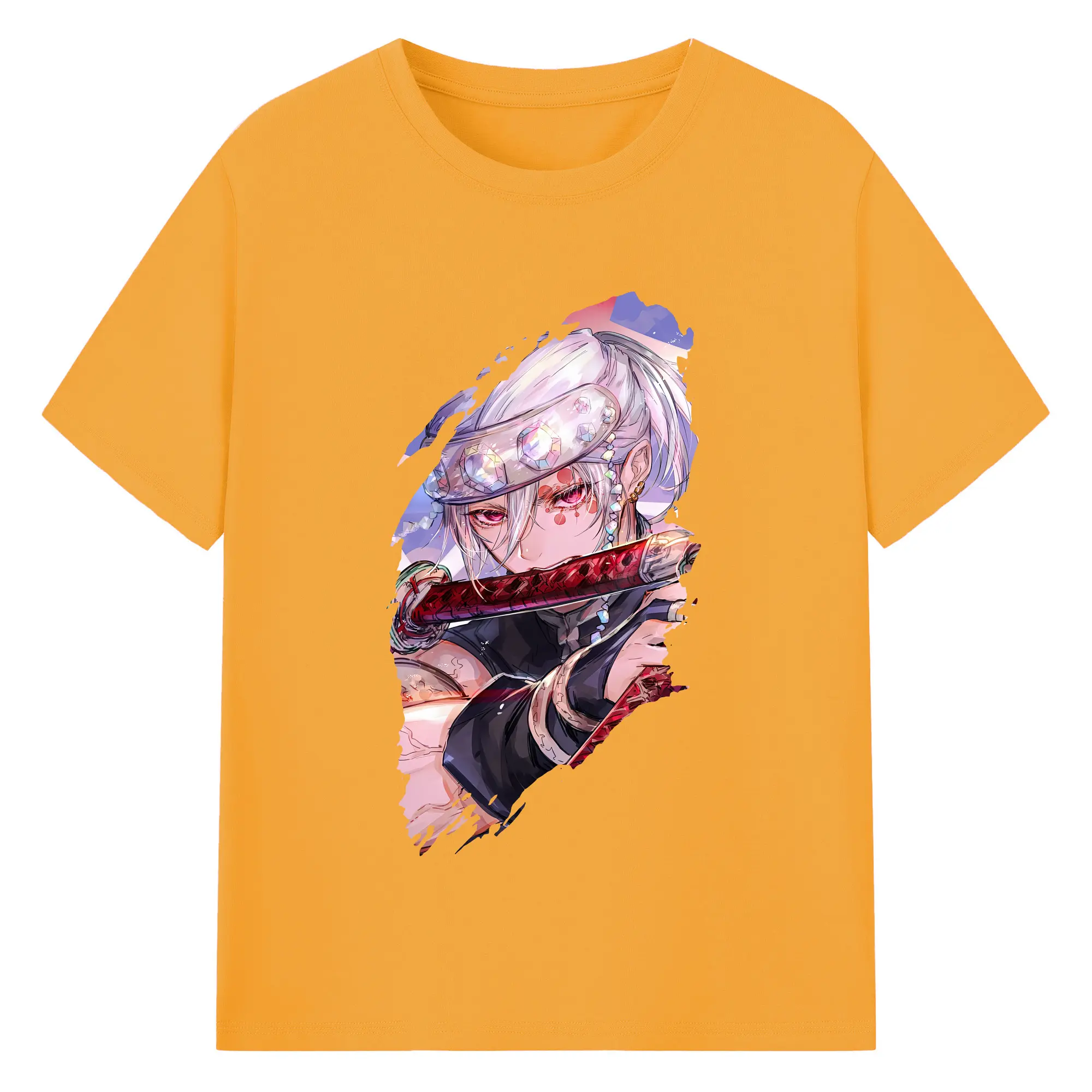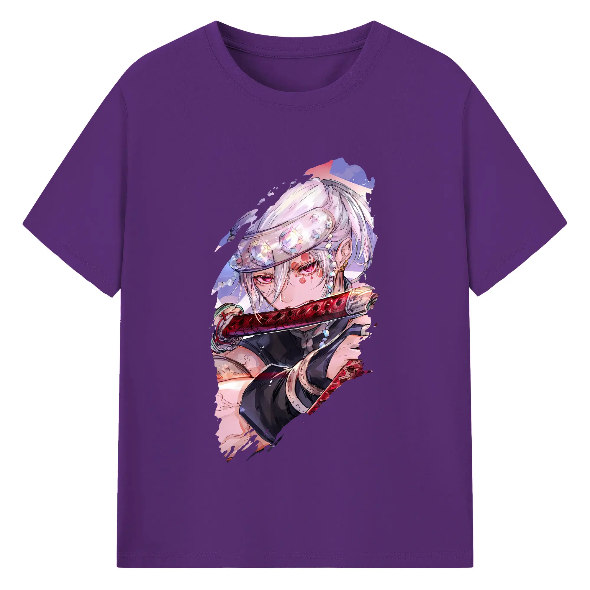 鬼滅の刃 グッズ,宇髄 天元 - 綿100% 半袖Tシャツ ・ バックプリント ・ 快適 通気性 ・ 日常使い 散歩 スポーツ用