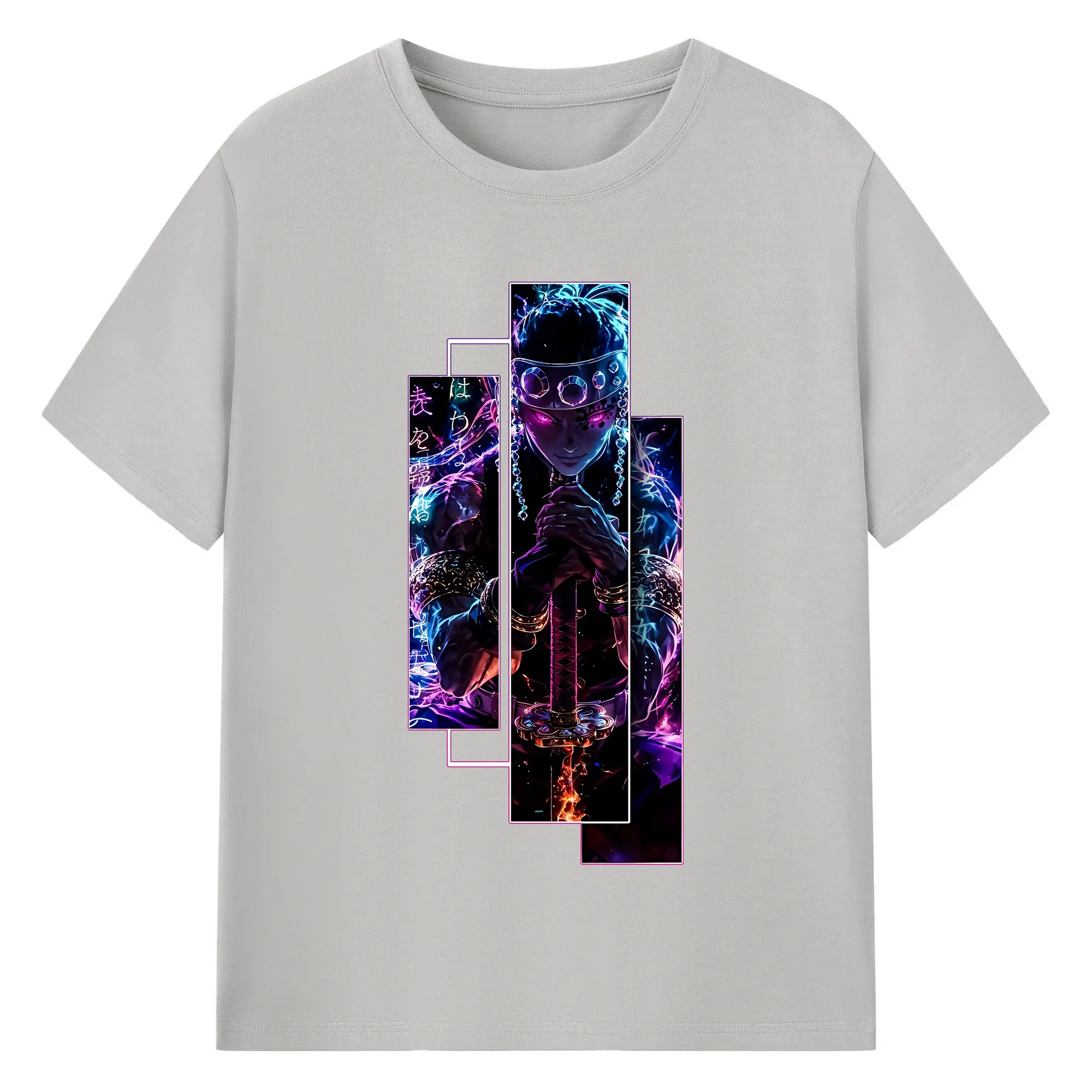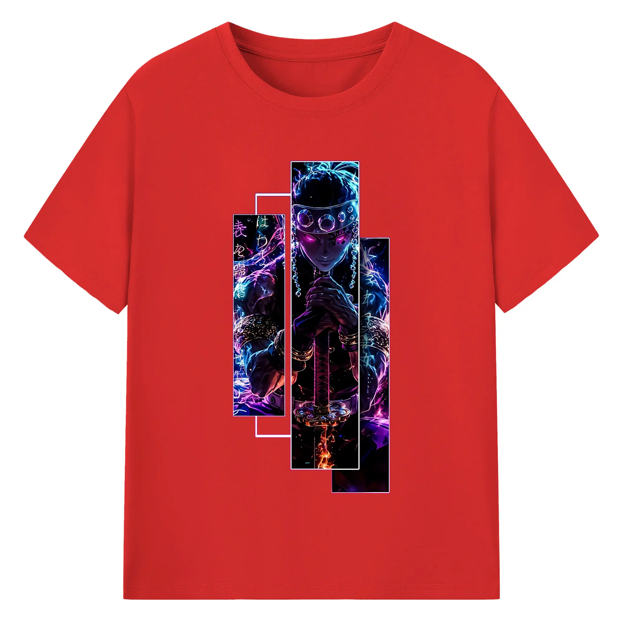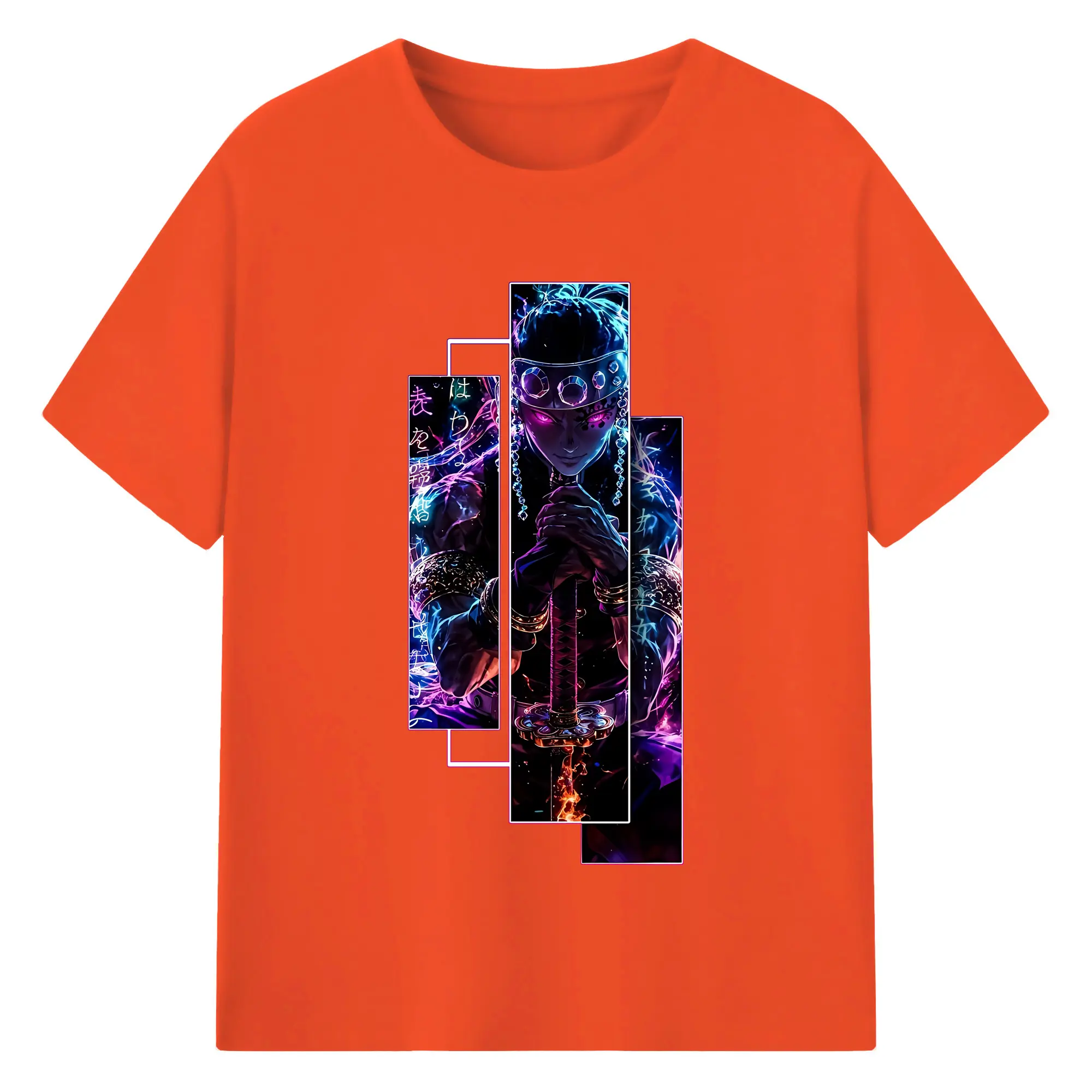 鬼滅の刃 グッズ,宇髄 天元 - 綿100% 半袖Tシャツ ・ バックプリント ・ 快適 通気性 ・ 日常使い 散歩 スポーツ用