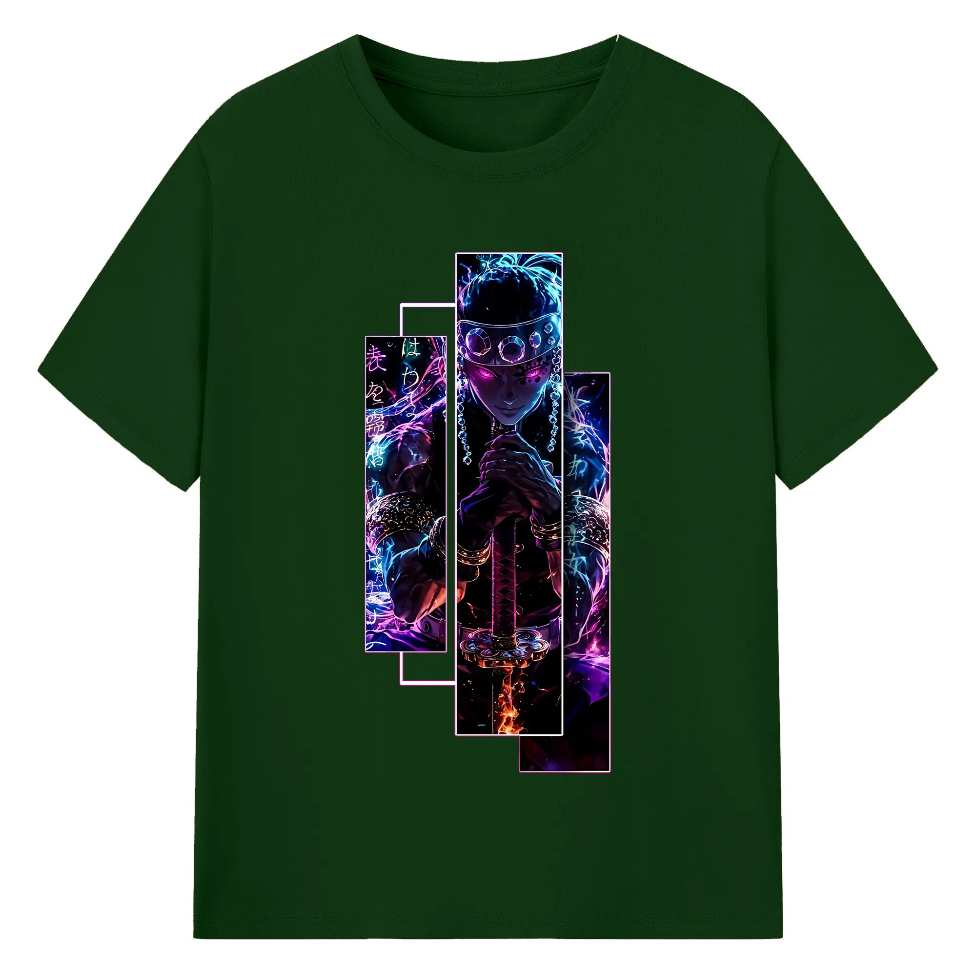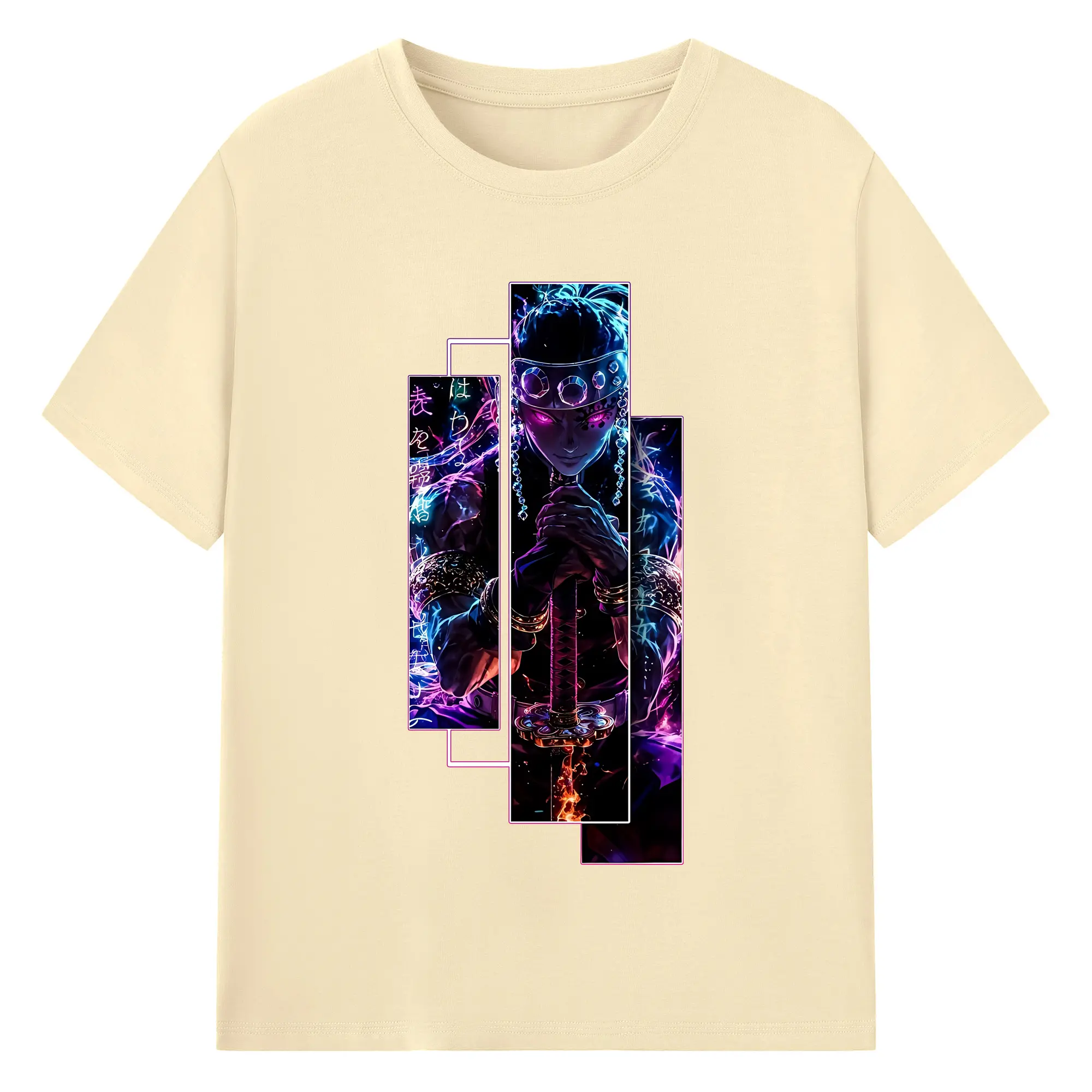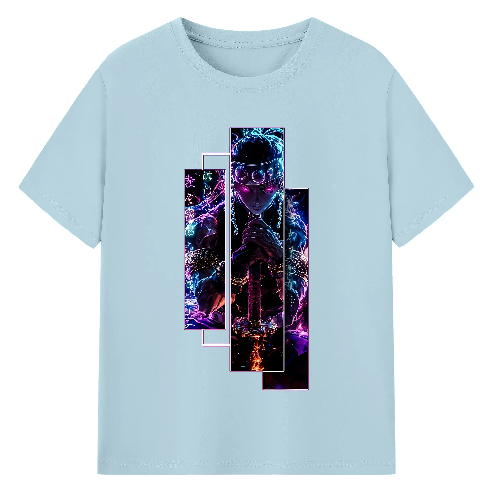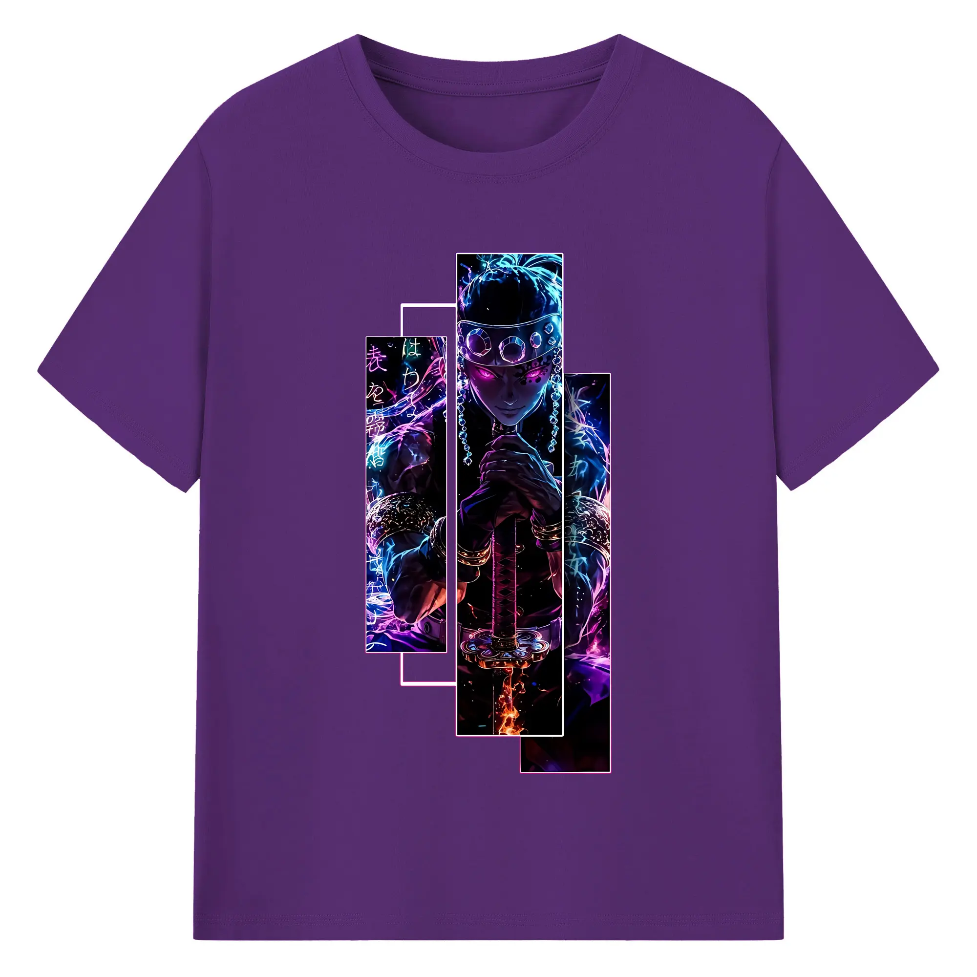 鬼滅の刃 グッズ,宇髄 天元 - 綿100% 半袖Tシャツ ・ バックプリント ・ 快適 通気性 ・ 日常使い 散歩 スポーツ用