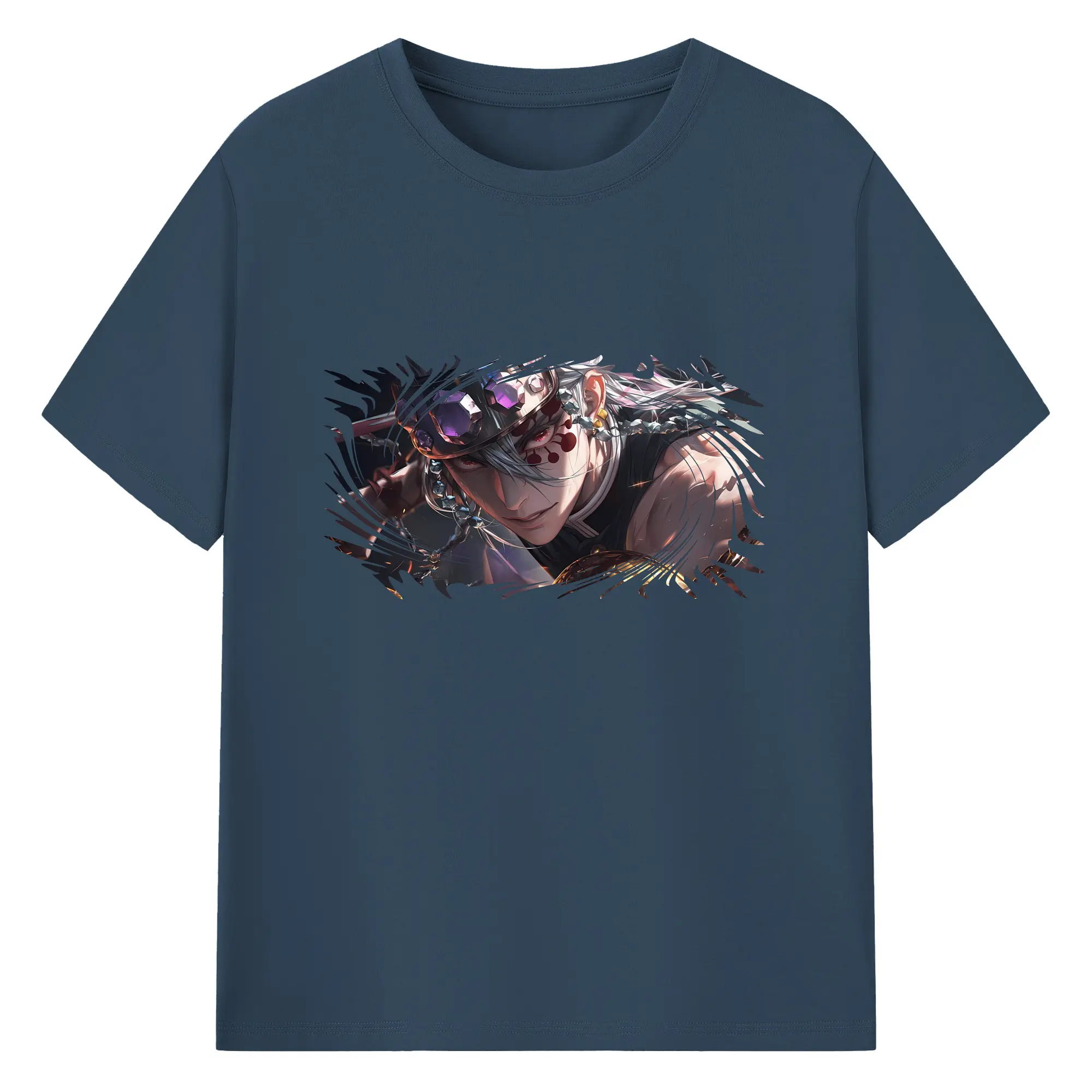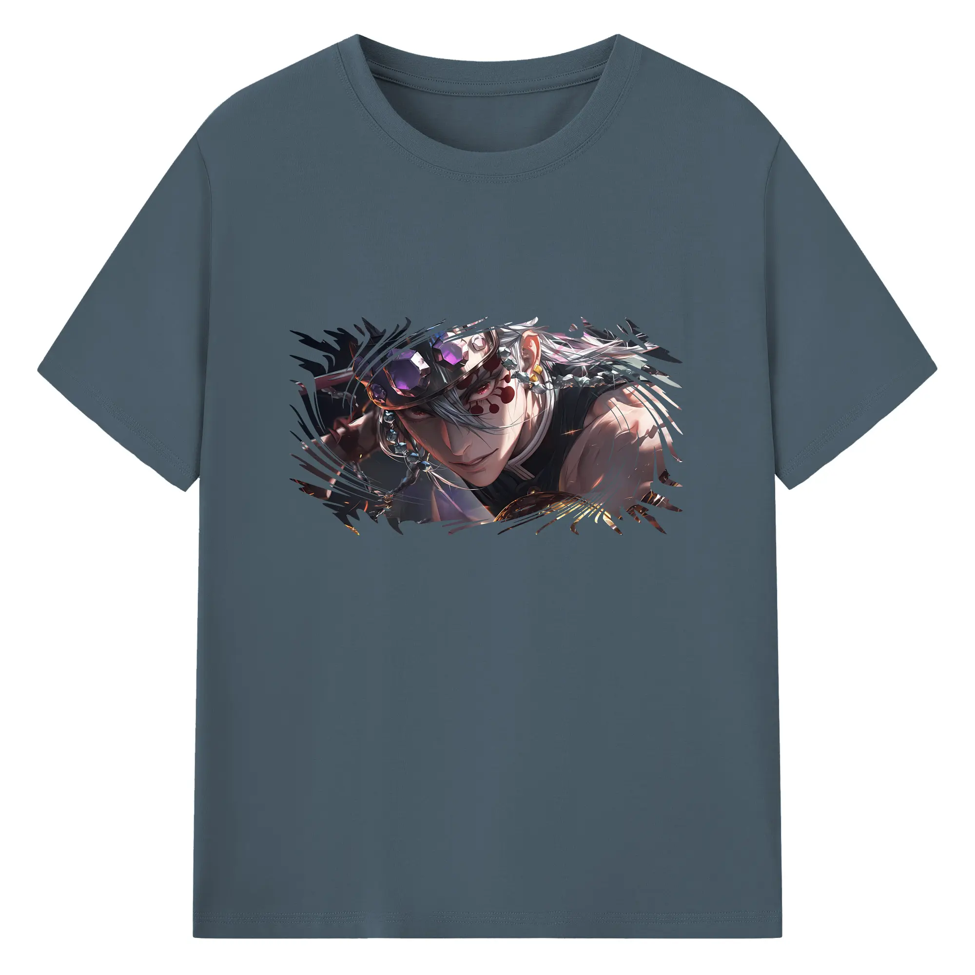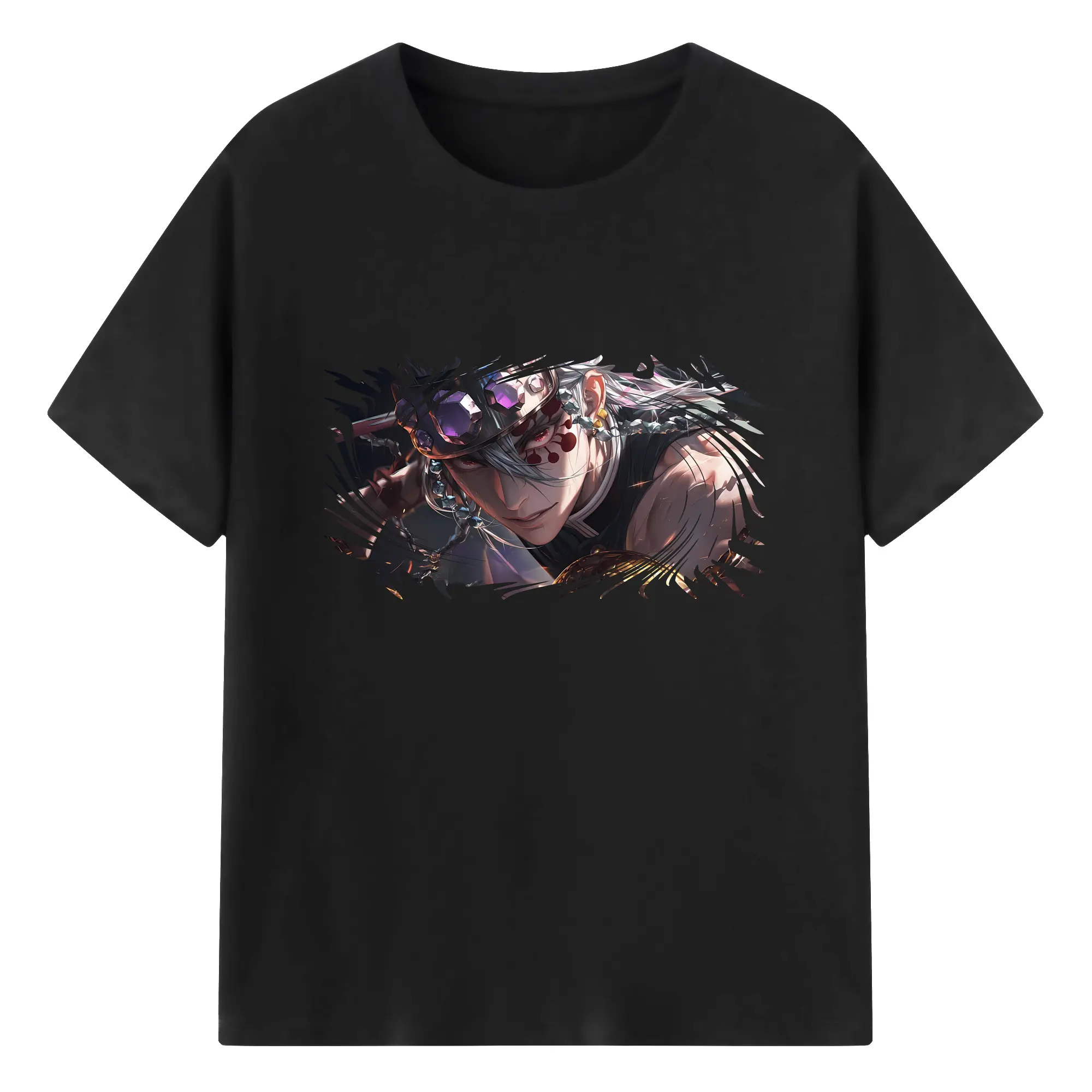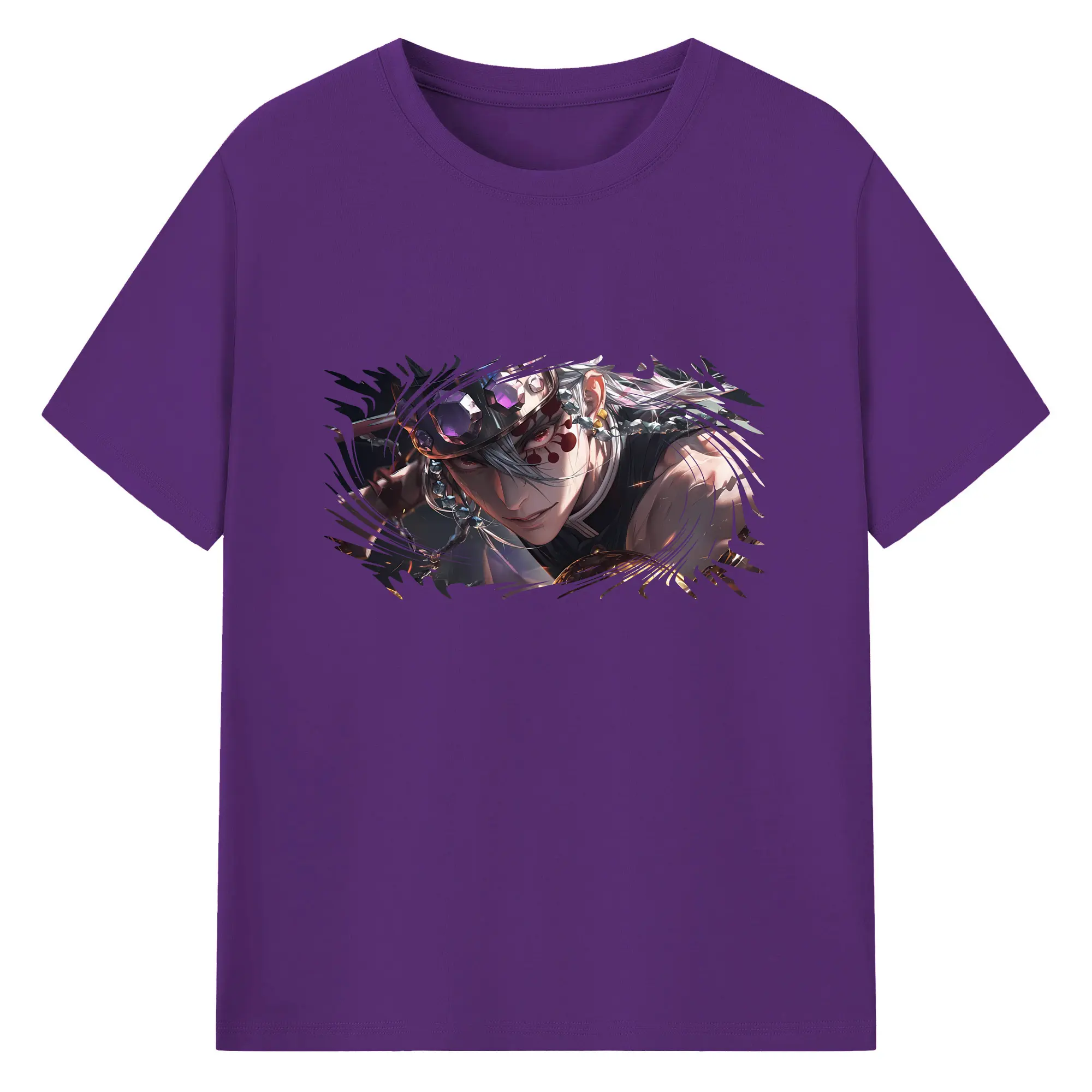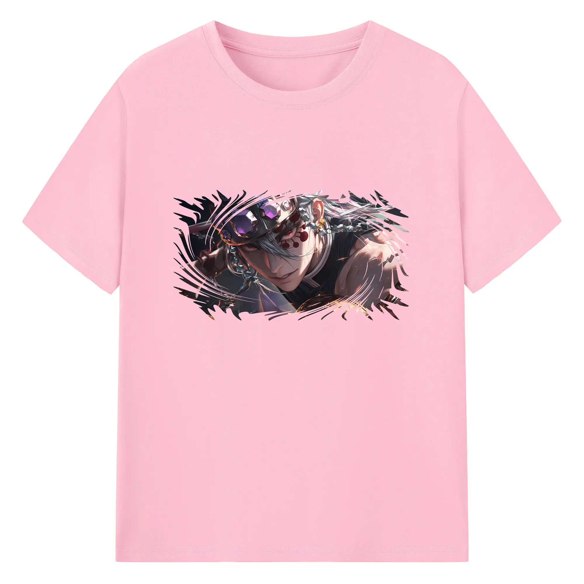 鬼滅の刃 グッズ,宇髄 天元 - 綿100% 半袖Tシャツ ・ バックプリント ・ 快適 通気性 ・ 日常使い 散歩 スポーツ用
